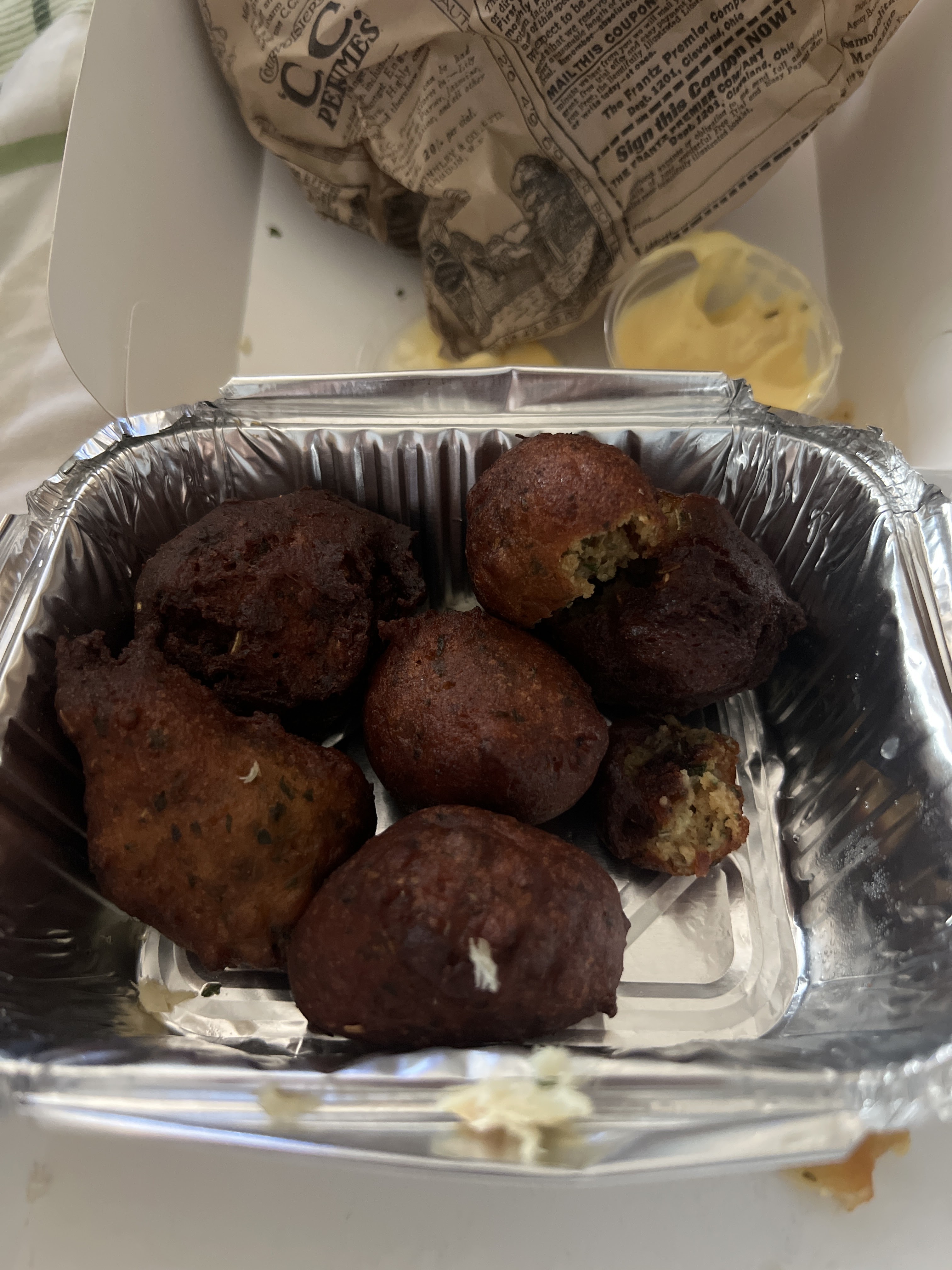 Je viens de récupérer ma commande en rentrant je m’aperçois que bizarrement un des boquit commander et bien au fond du sac. Et bien bingo car le boquit et aussi dur que la pierre ! J’appelle le restaurant pas de réponse. Merci à vous de servir des accras rempli d’huile et des boquit plus dure que le sol !