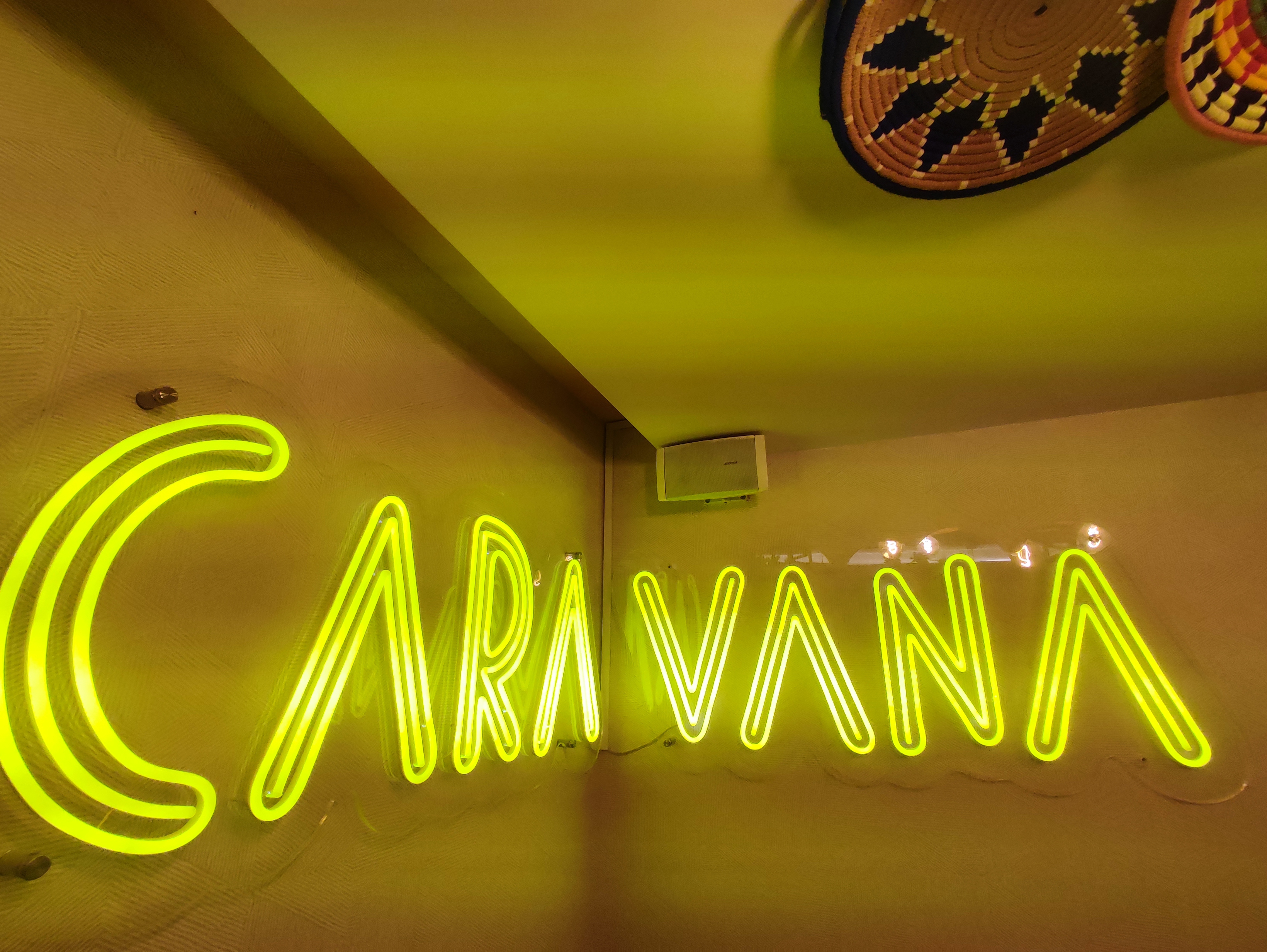 Pas convaincu dans l'ensemble par mon expérience chez Caravana. La cuisine est assez simple et quelconque. L'assortiment gourmand d'entrées était plutôt réussi, le burger Brasilia était généreux mais manquait de saveur et les frites de patates douces étaient bonnes. Le Mojito Framboise n'était pas un Mojito mais une un cocktail soft sans rhum et sans saveur. Malheureusement, il n'y avait plus de tiramisu pistache framboise donc je me suis contenté d'un fondant au chocolat industriel sans grand intérêt. La décoration de la salle est le point fort de cet établissement, c'est coloré et original. Le personnel est très sympathique mais manque de professionnalisme, certains membres sont trop familiers et gagneraient à mieux s'exprimer. Le système de commande n'est pas une franche réussite : notre commande de desserts n'a pas été prise en compte car certains desserts sélectionnés n'étaient plus disponibles.