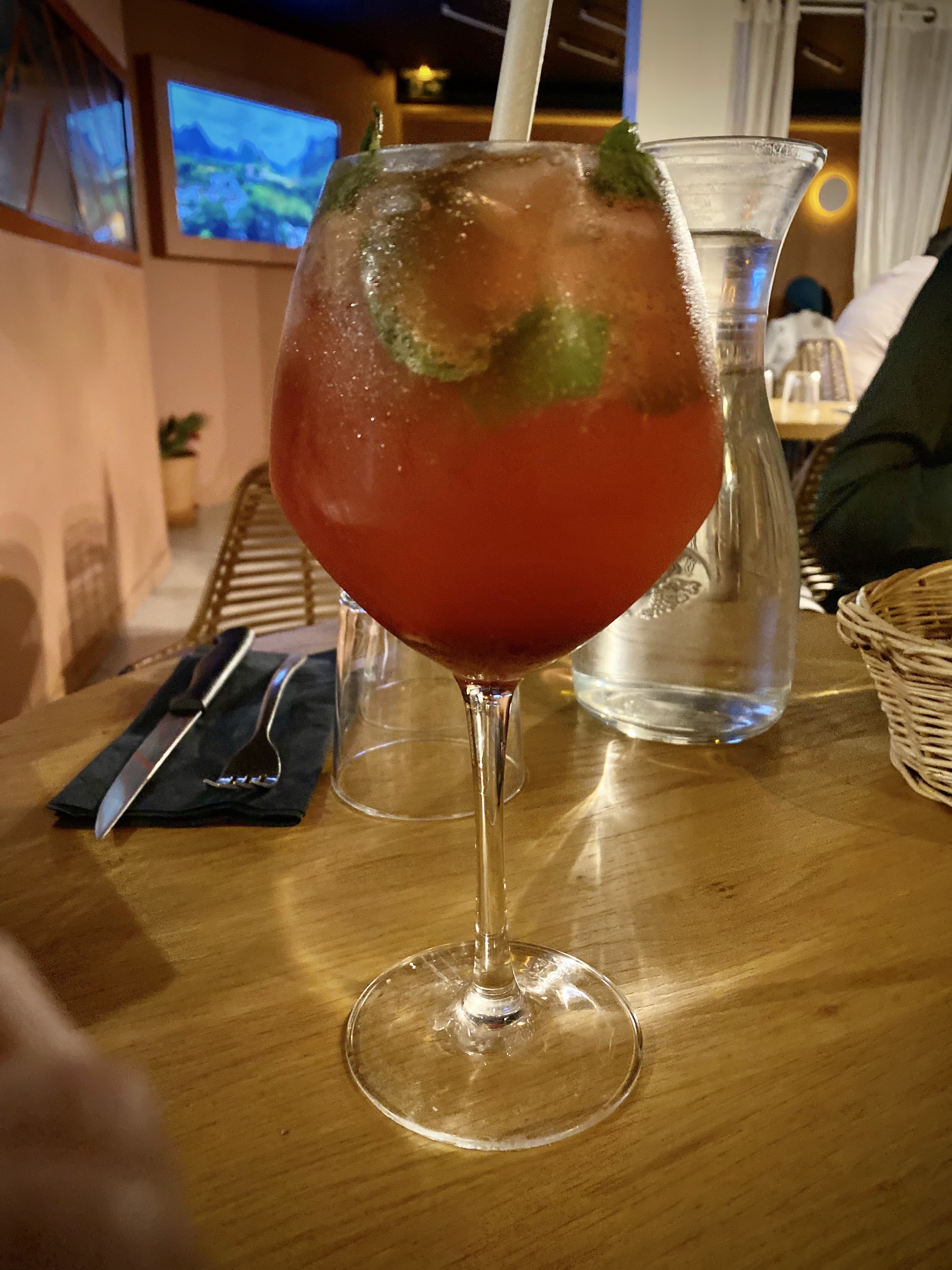Franchement rien à redire, le cocktail était à tomber. L’entrée un vrai régal & le plat copieux… dommage je n’avais plus de place pour goûter le dessert mais ça sera pour une prochaine. Ce que j’ai adoré c’est le poulet, il était bien mariné. Merci à toute l’équipe malgré le monde, ils étaient tous sympa. Si vous y allez pensez à leur laisser un pourboire, nous c’est fait.