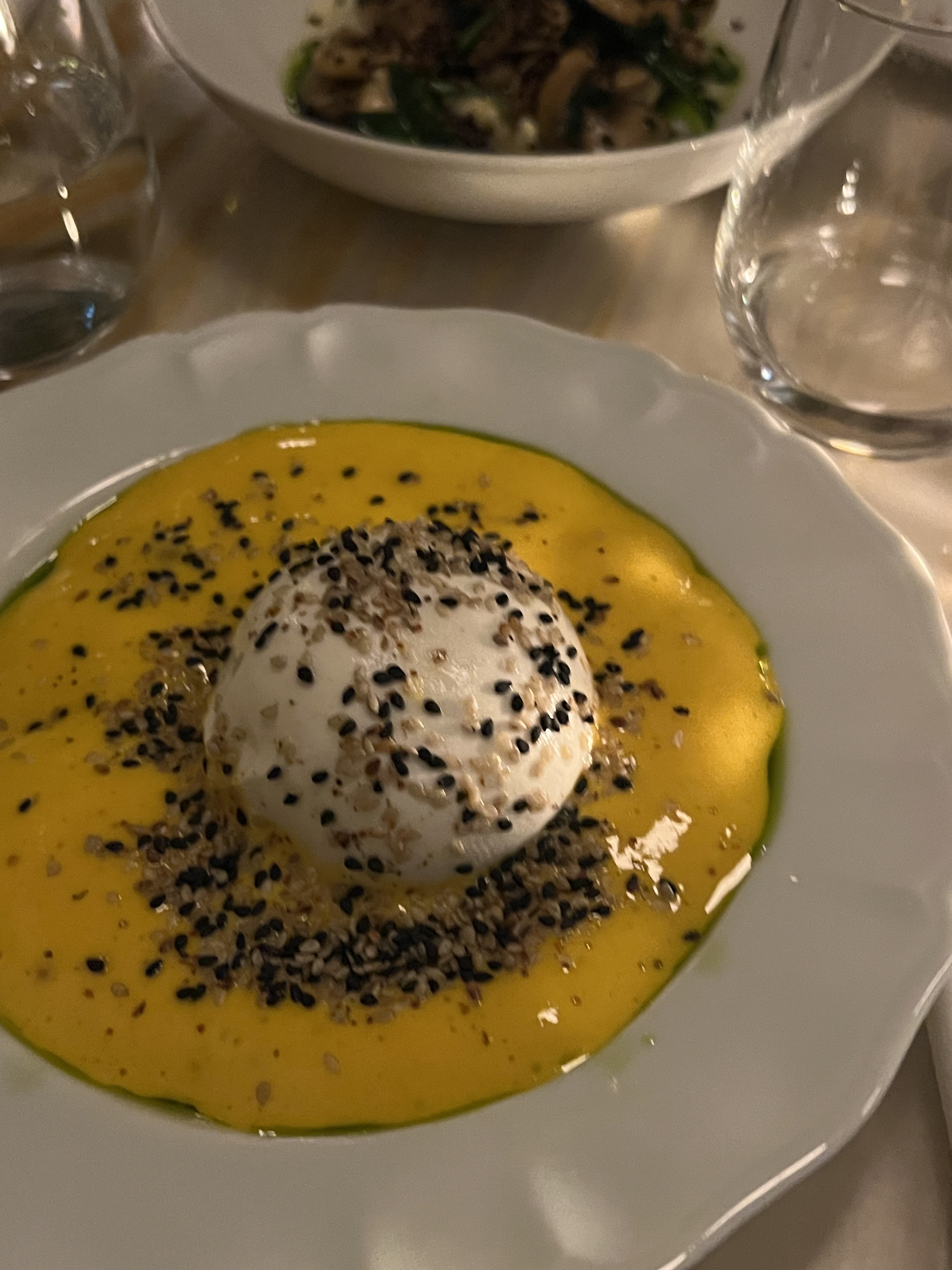 Une très belle expérience! Nous avons essayé à l’improviste comme il est assez difficile d’avoir une table même en semaine. (Chanceuses) Les caccio e pepe étaient très bonnes et très bien servies. (Très très fortes en poivre) Mais si je devais revenir ça serait pour le dessert … la glace mascarpone / huile d’olive … le bonheur 🥹 Impression de manger une burrata en dessert n’était magique. Ambiance feutrée très agréable j’ai adoré. (Un poil excessive niveau prix serait le seul bémol.)