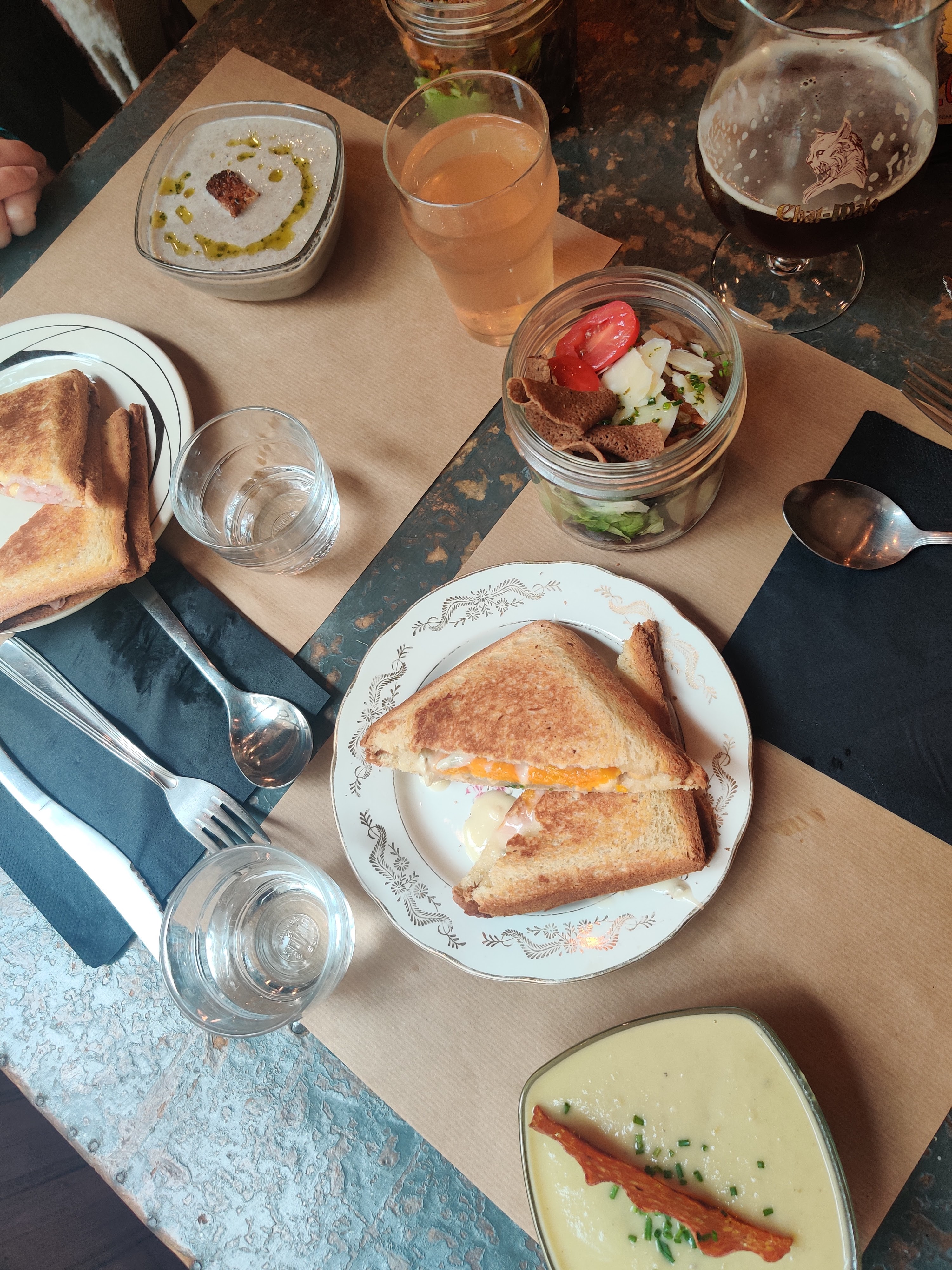 Tout simplement parfait! Le déjeuner, le service, le cadre, l’ambiance, tout y est! En plus à un prix tout à fait abordable (12,5€ les deux croques monsieur, 12,5€ la formule soupe, salade et un croque monsieur) Je recommande à 100%, pensez à réserver. Végétariens bienvenus !