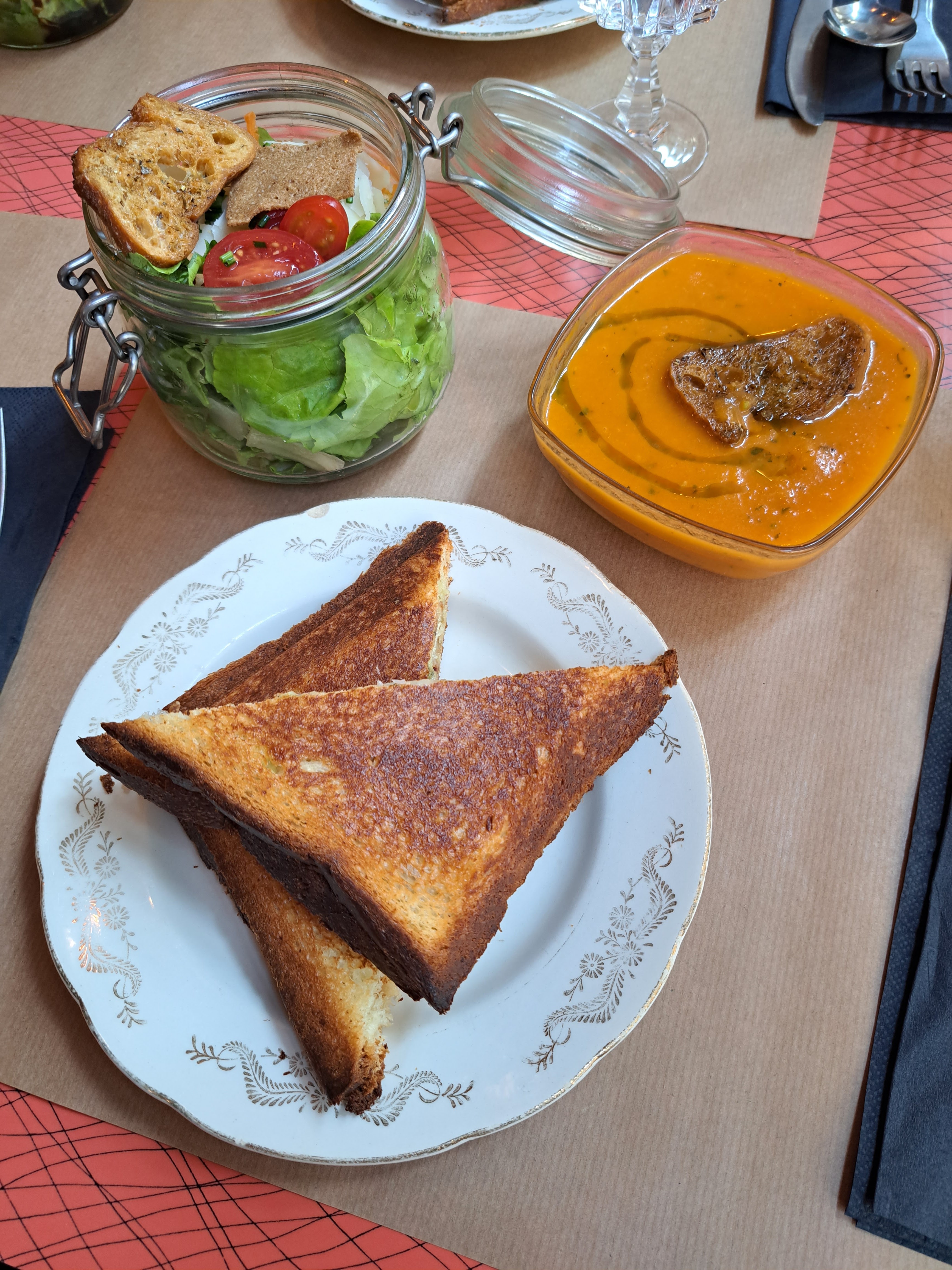 Moment très sympa, accueil chaleureux, ambiance détendue, une formule à 12e parfaite pour la famille en vadrouille. Des croques, salades et soupes originaux, je recommande ce resto qui change de la galette. Bravo à l'équipe si souriante et conviviale