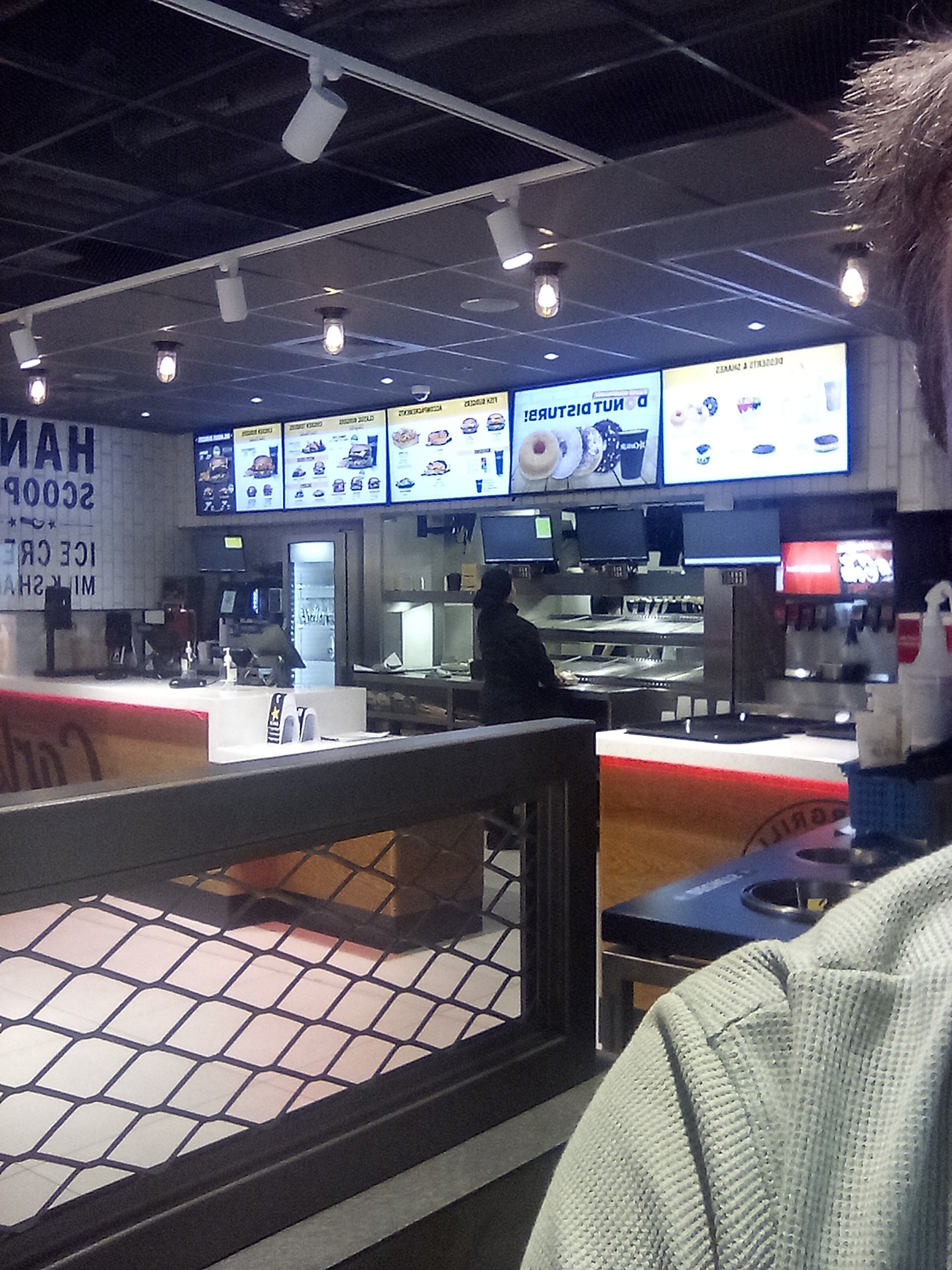 Pas la 1ère fois que je viens, travaillant sur la plate-forme les prix sont ultra chers, je trouves que les Burger devraient être plus fournis, c'est très vide, le poulet est ultra sec,j'a l'impression de manger que du pain,niveau frites ça passe, le choix des boissons aussi. J'ai assistée et pas trop apprécié comment la manager parlait à ses employés, pourtant faisant de leurs possible. Je recommande malgré tout, car est mieux que ses concurrents.