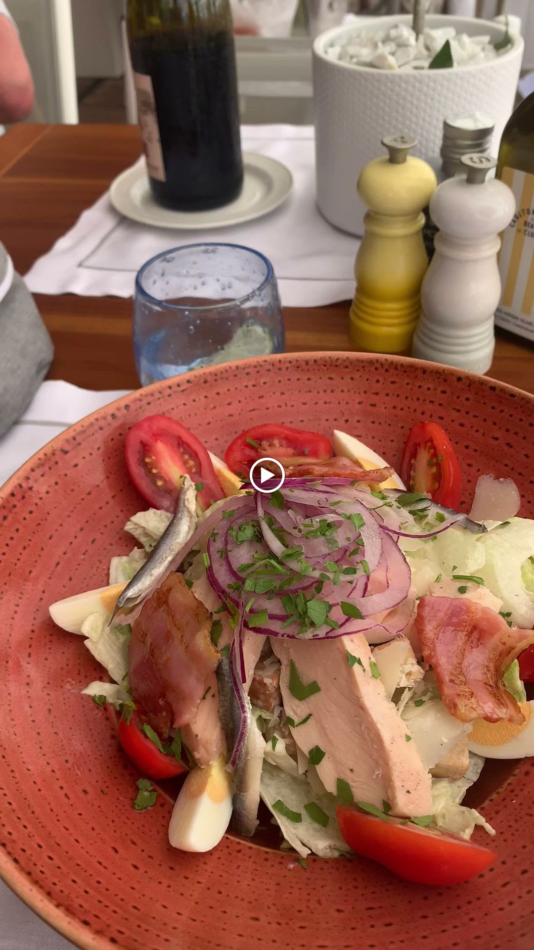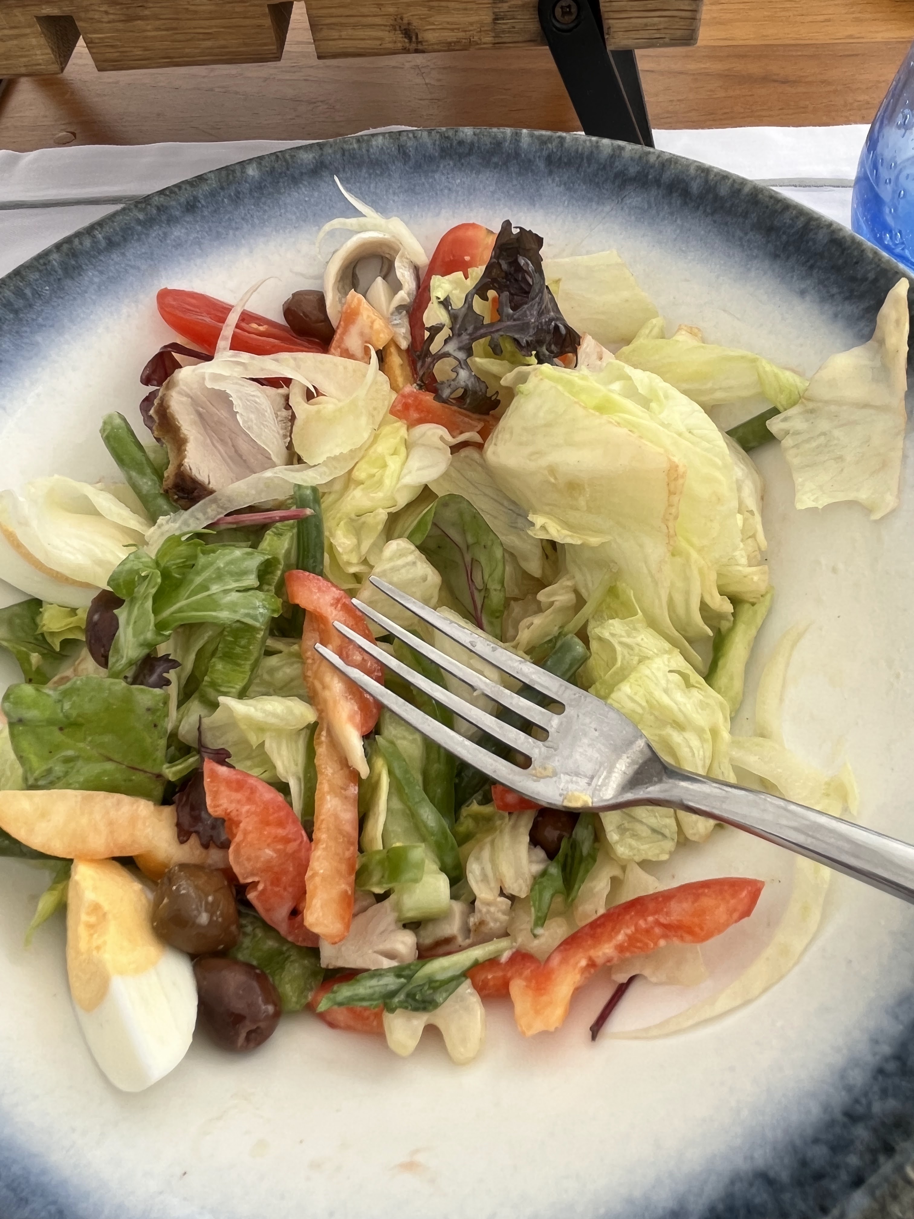 Dommage que cet endroit ait du potentiel mais ne réponde pas aux attentes. La nourriture est fade et trop chère, je dîne actuellement ici et j'ai eu la pire salade niçoise de tous les temps. Je pensais que ce serait une commande sûre mais il n'y a pas de thon, la salade ressemble à une salade en sachet avec de la laitue pourrie et ce n'est pas agréable du tout pour 32 euros. Le vin est bon mais clairement trop cher et ce n'est pas grave étant donné l'emplacement en bord de mer. Vous payez pour la vue et l'ambiance, pas pour la nourriture. Dommage et vraiment déçu de penser que la Niçoise serait une commande sûre pour une bonne qualité. Le service est un service français typique et sans chichi.