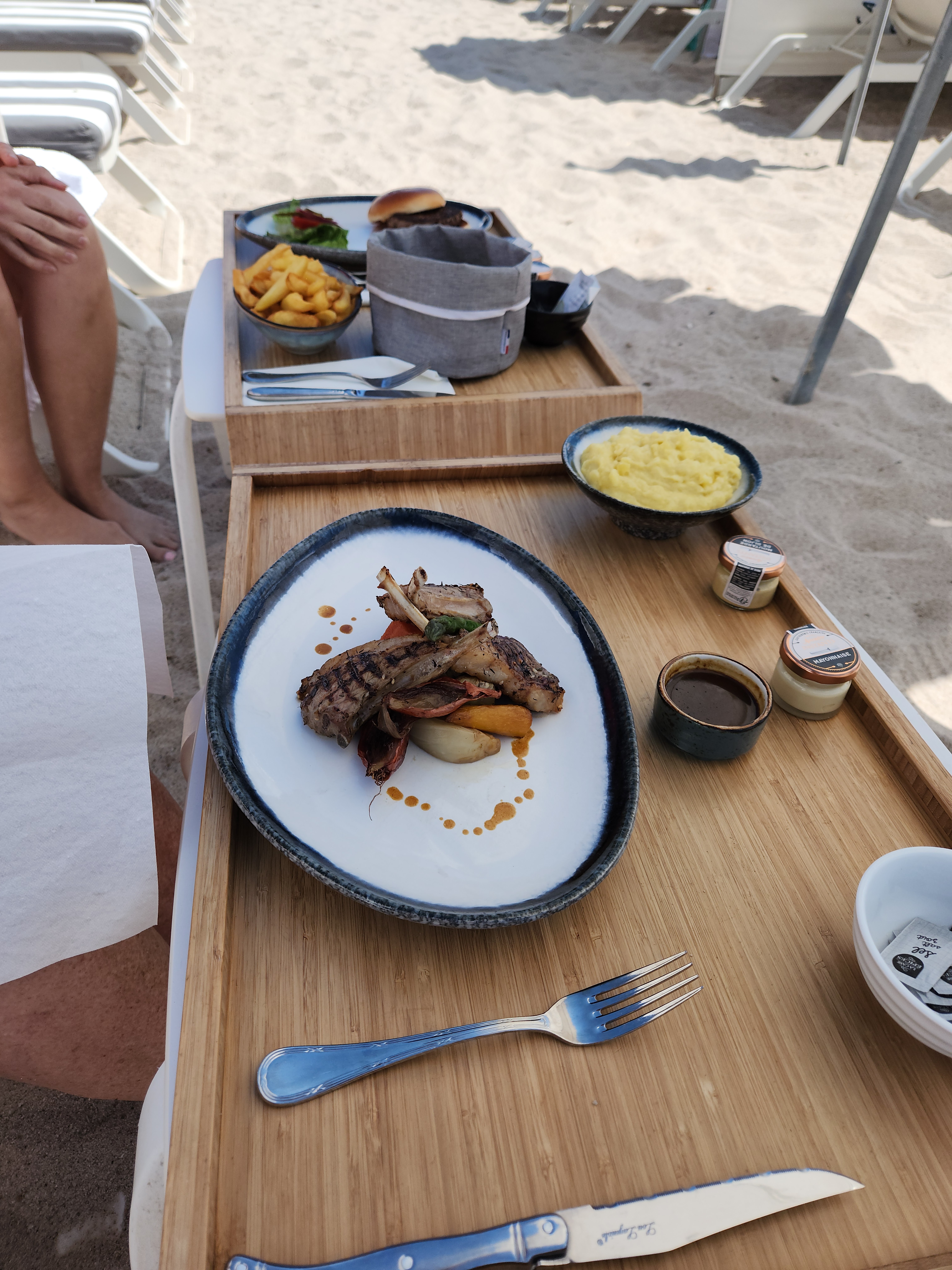 L'accueil n'était pas terrible pour le nom du plage digne de ce nom. Nous avons voulez tester cette plage privée, On nous a placé dans une table de 2 alors que j'avais réservé pour 3, j'ai du demander au serveur de rajouter les couverts car il avait transmis les cartes mais n'avait pas remarqué ce détail. Nous avon commandé une bouteille de champagne, on nous a servi le champagne à rabort dans nos coupes. On ne sert pas une coupe de champagne à rabort. Par contre le calamar et très bon , le dessert maison, parfait.