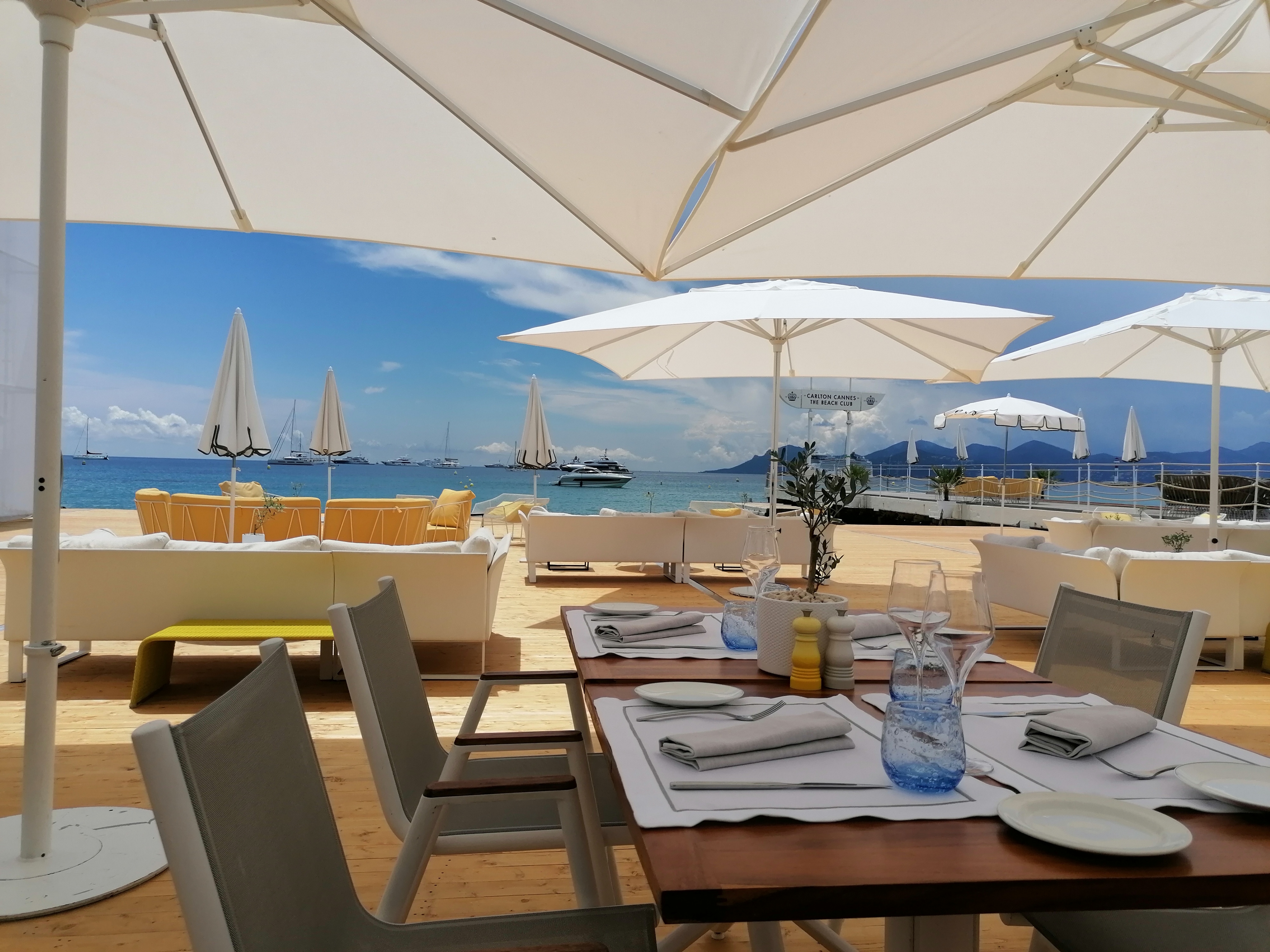 Club de plage de luxe à Cannes. Exactement ce à quoi vous vous attendez. Service attentionné. Ok la nourriture. Mais ce n'est pas pour ça que tu y vas...