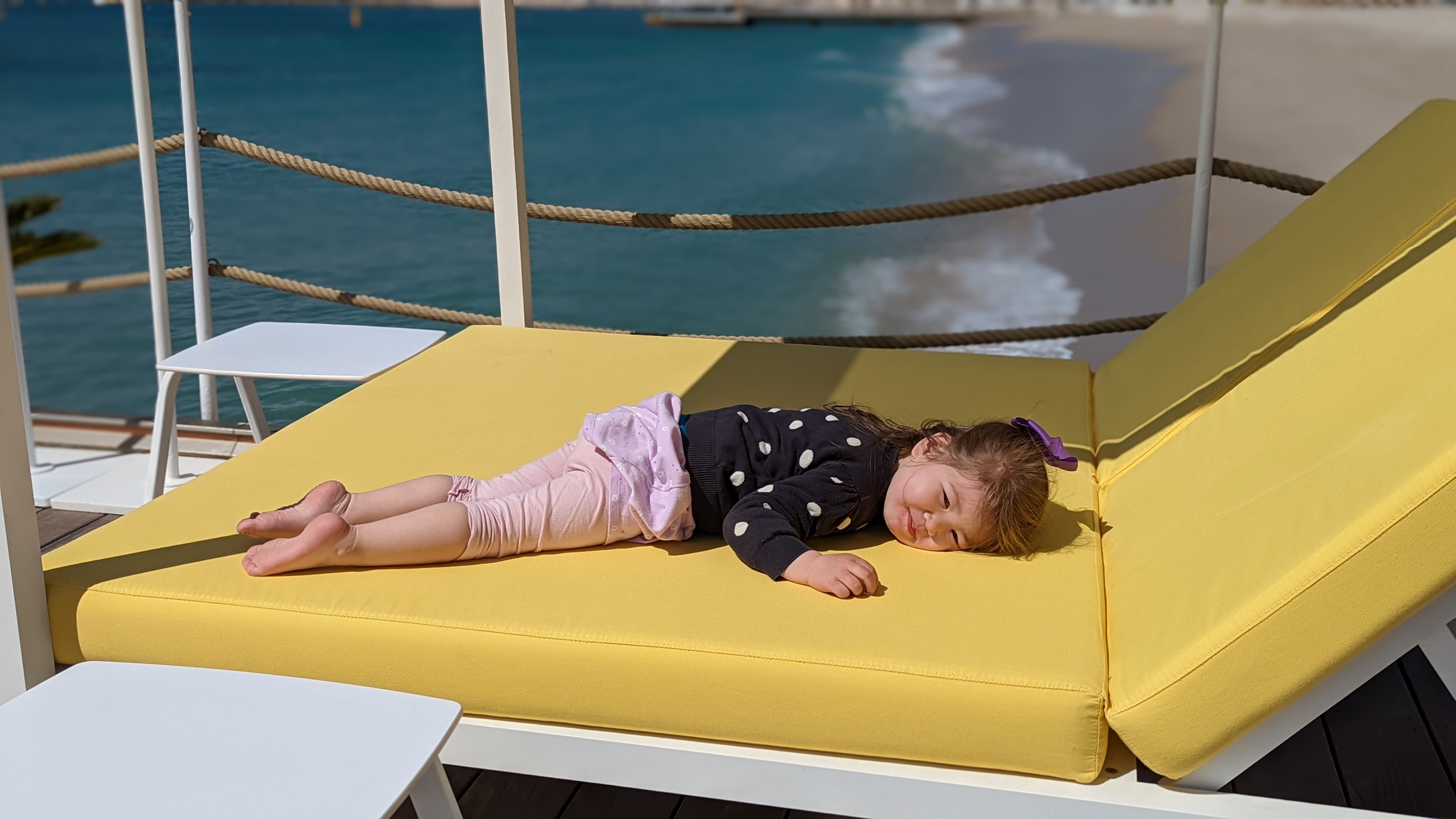 Nous avons passé les meilleurs moments au Carlton Beach Club. Le service était superbe, comme un service 7 étoiles. Nous avons demandé si nous pouvions simplement avoir de la glace et ce n'était pas un problème. Un ascenseur est disponible pour descendre notre poussette et de nombreux sièges sont disponibles à la mi-avril. Nous avons occupé un canapé entier et c'était tellement confortable de déguster la glace à la fraise et au citron. Le cappuccino était bon et raffiné. La glace avait des crêpes françaises sur le dessus, ce qui était incroyable. Nous avons exploré un peu la plage et les enfants ont adoré. Articles souvenirs disponibles à la vente à un prix 7 étoiles 😊 salle de bain également très très sympa. J'ai hâte de voir l'hôtel Carlton rénové !