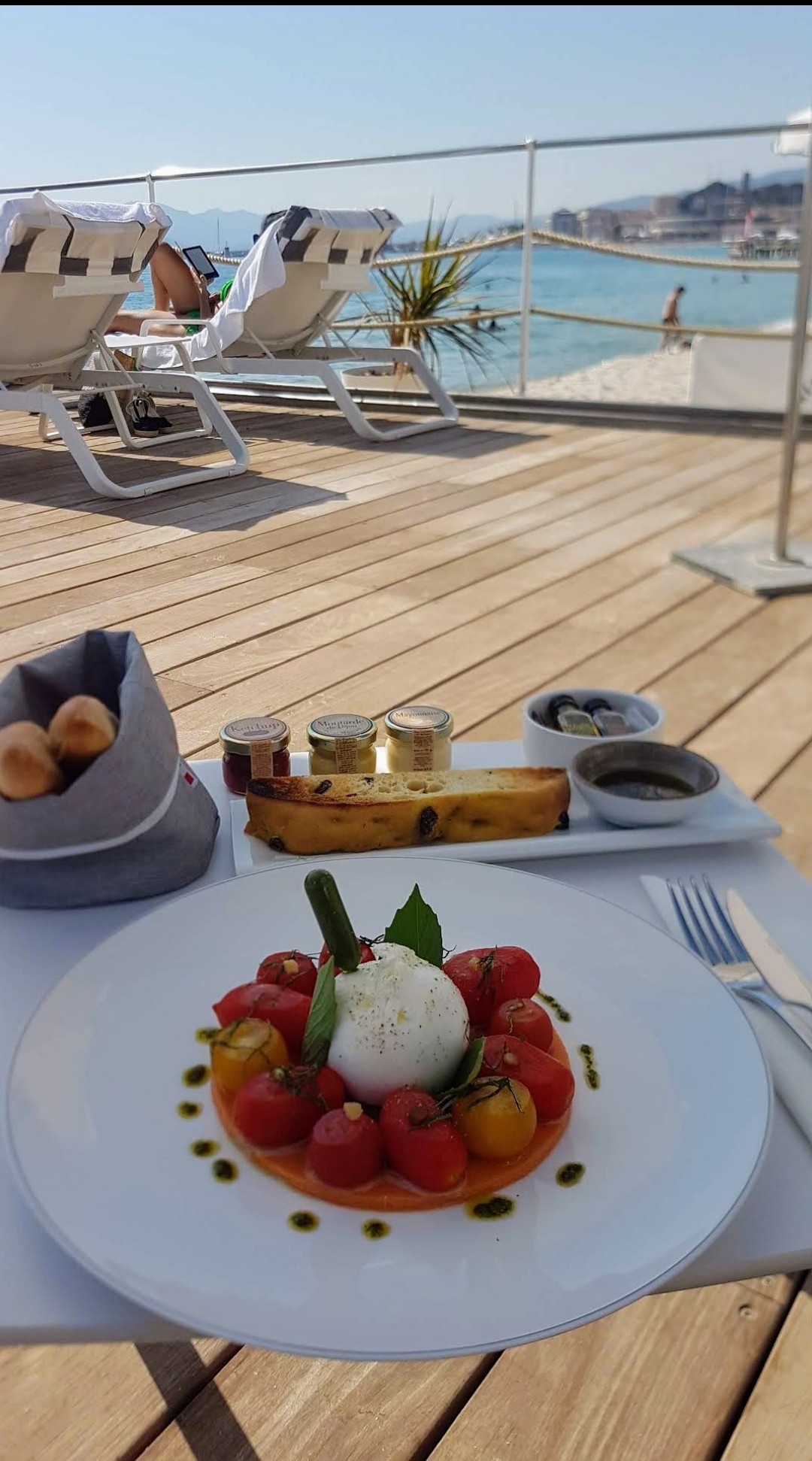 Un endroit incroyable pour se détendre et profiter de la journée. La nourriture est délicieuse et le service est de premier ordre. Chaises longues très confortables sur la mer Méditerranée.