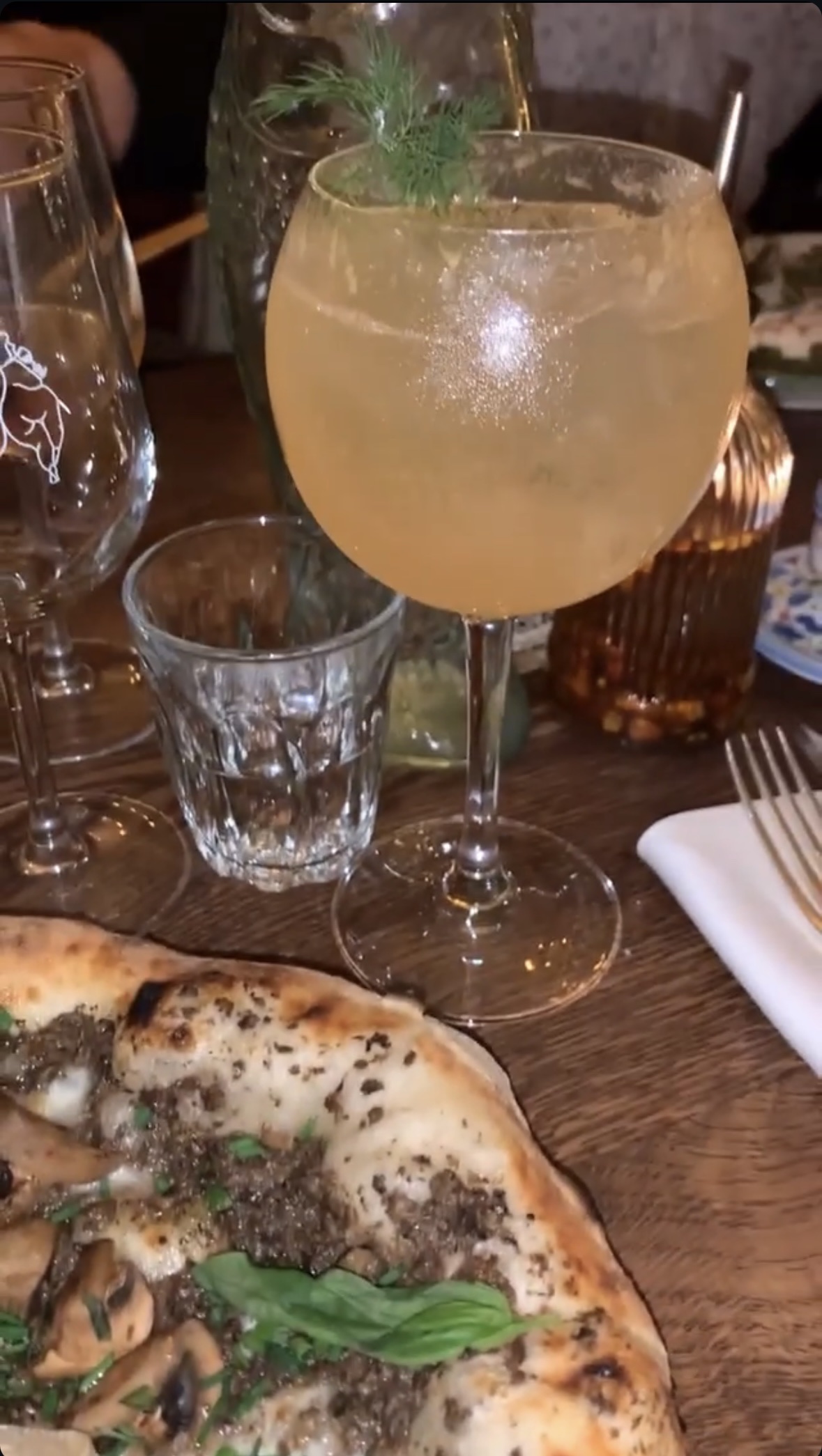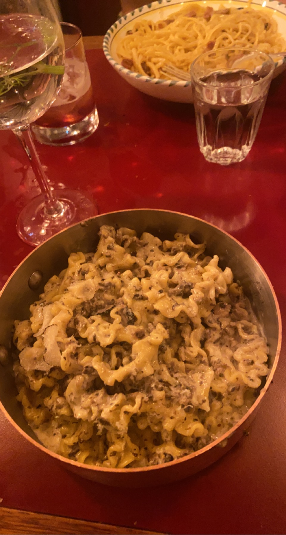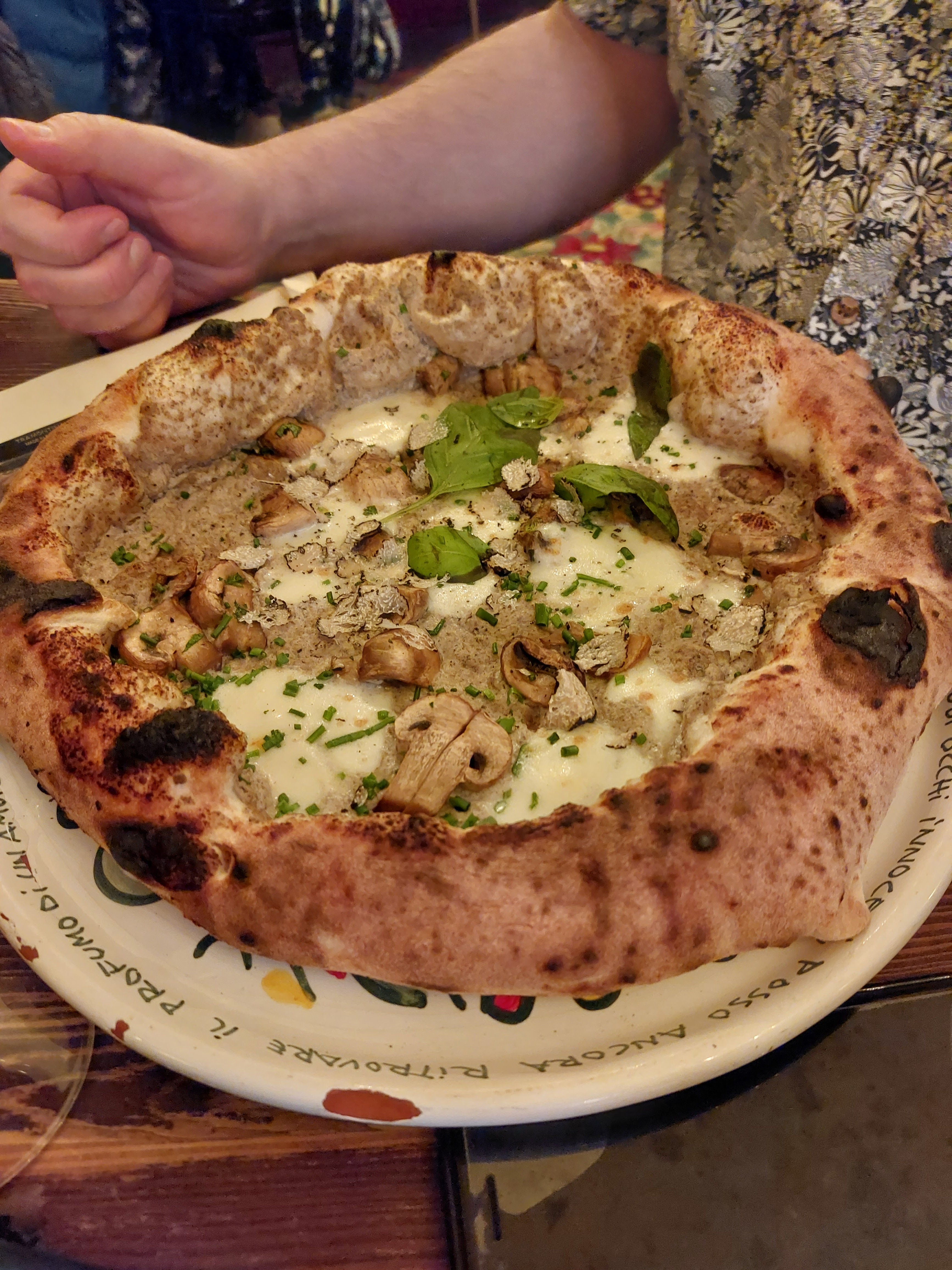 Bien si vous voulez faire des photos fantaisistes. Mais c'est tout. L'intérieur est magnifique et la nourriture est excellente. Nous avions réservé à 21h30, mais avons néanmoins dû attendre dehors jusqu'à 22h10 jusqu'à ce que notre table soit libre. Notre eau était vraiment hostile. La pizza était correcte. Malheureusement, la pâte était assez moelleuse. Les pâtes aux truffes n'étaient pas vraiment chaudes et elles sont devenues froides au bout de quelques minutes. Nous avons dû attendre 30 minutes pour notre facture. Même s'ils avaient déjà allumé la lumière et la table derrière nous, les serveurs nettoyaient les couverts. C'était extrêmement bruyant et au lieu de nous apporter la facture, ils ont simplement continué à nettoyer. Il y a de meilleurs endroits italiens en ville.