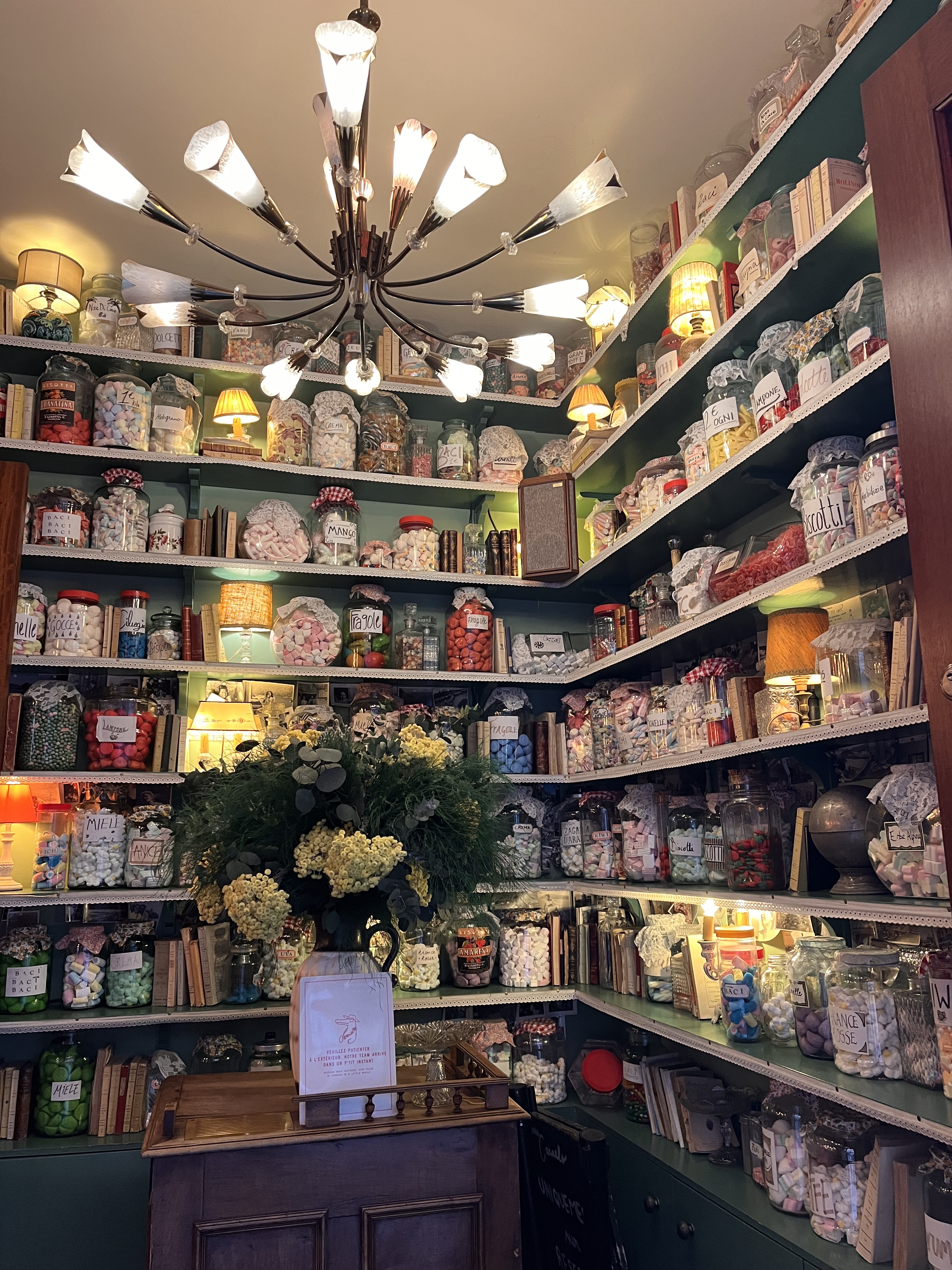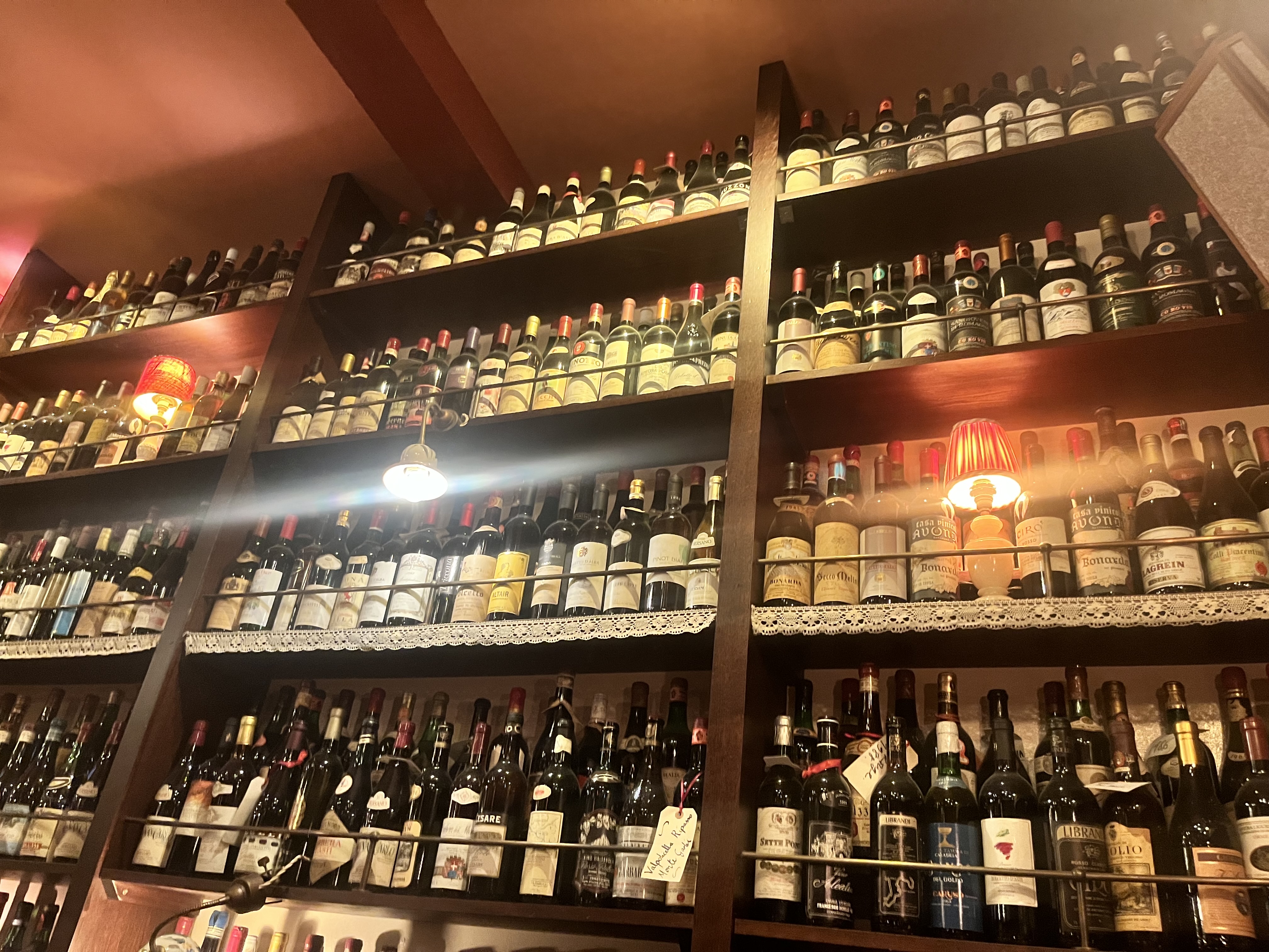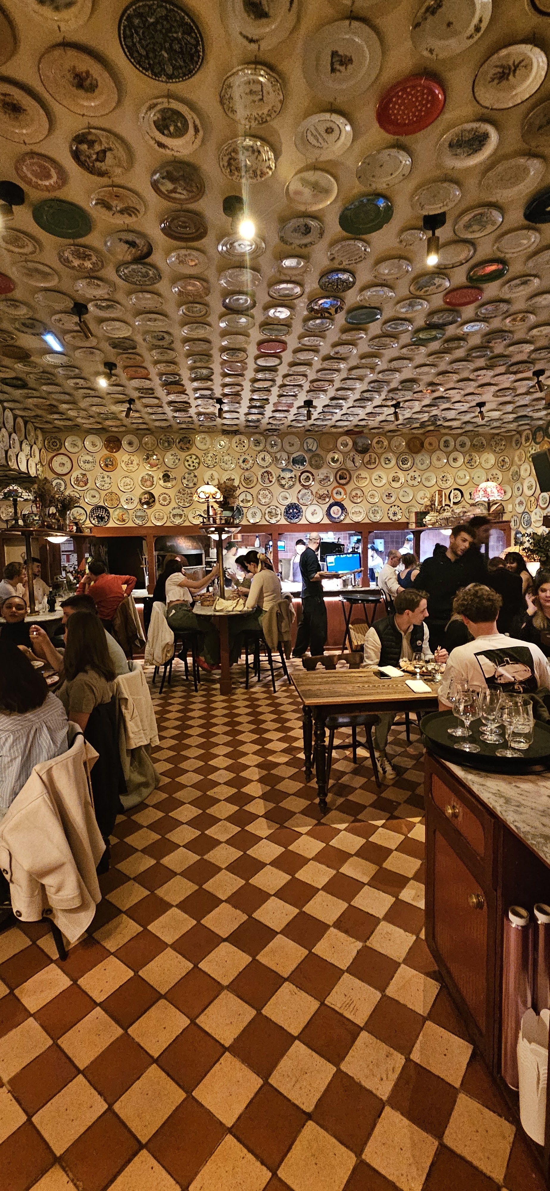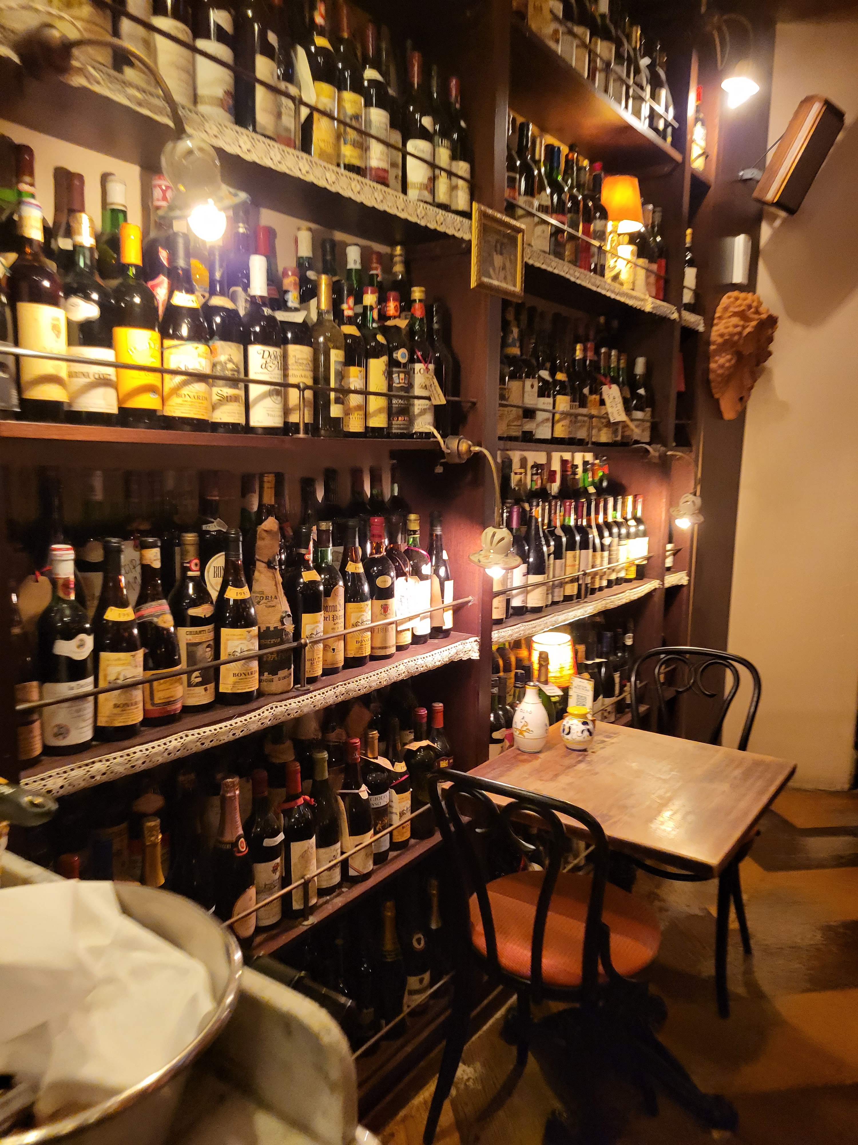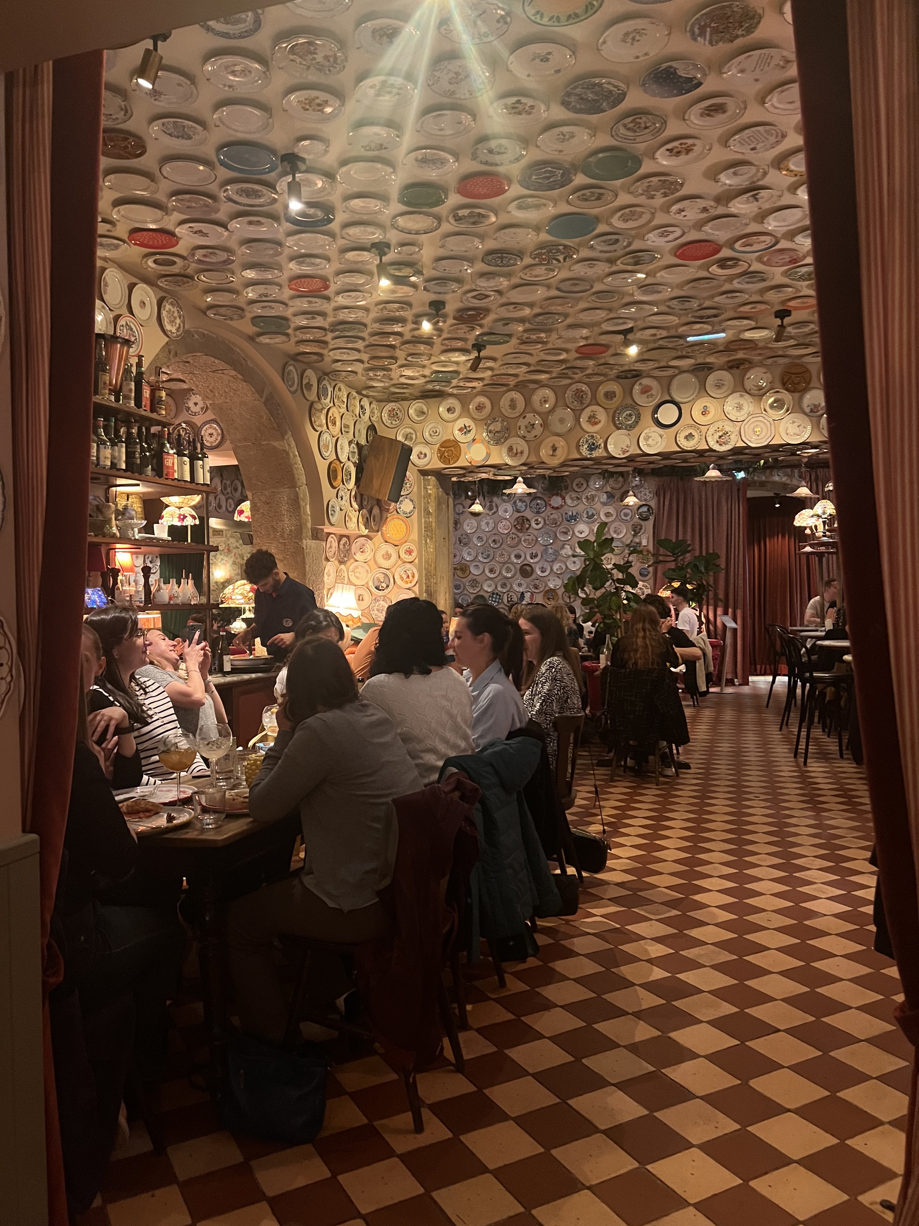 Délirant ! Il y a 6 salles avec des ambiances très différentes (bonbons, vins, assiettes au mur et au plafond, tableaux,...), on se sent détendu, tout est très animé, la musique est top, le service est fluide et fait par des italiens, et les plats sont surtout à tomber par terre (je recommande les pâtes à la truffe) ! Idéal pour des dîners romantiques (il y a une salle plus calme en bas), pour les repas entre amis, avec ses parents, ses grands-parents,... Options pour végétariens, et les enfants/bébés sont les bienvenus Et merci Imen pour ta bonne humeur et ton sourire, tu es top !