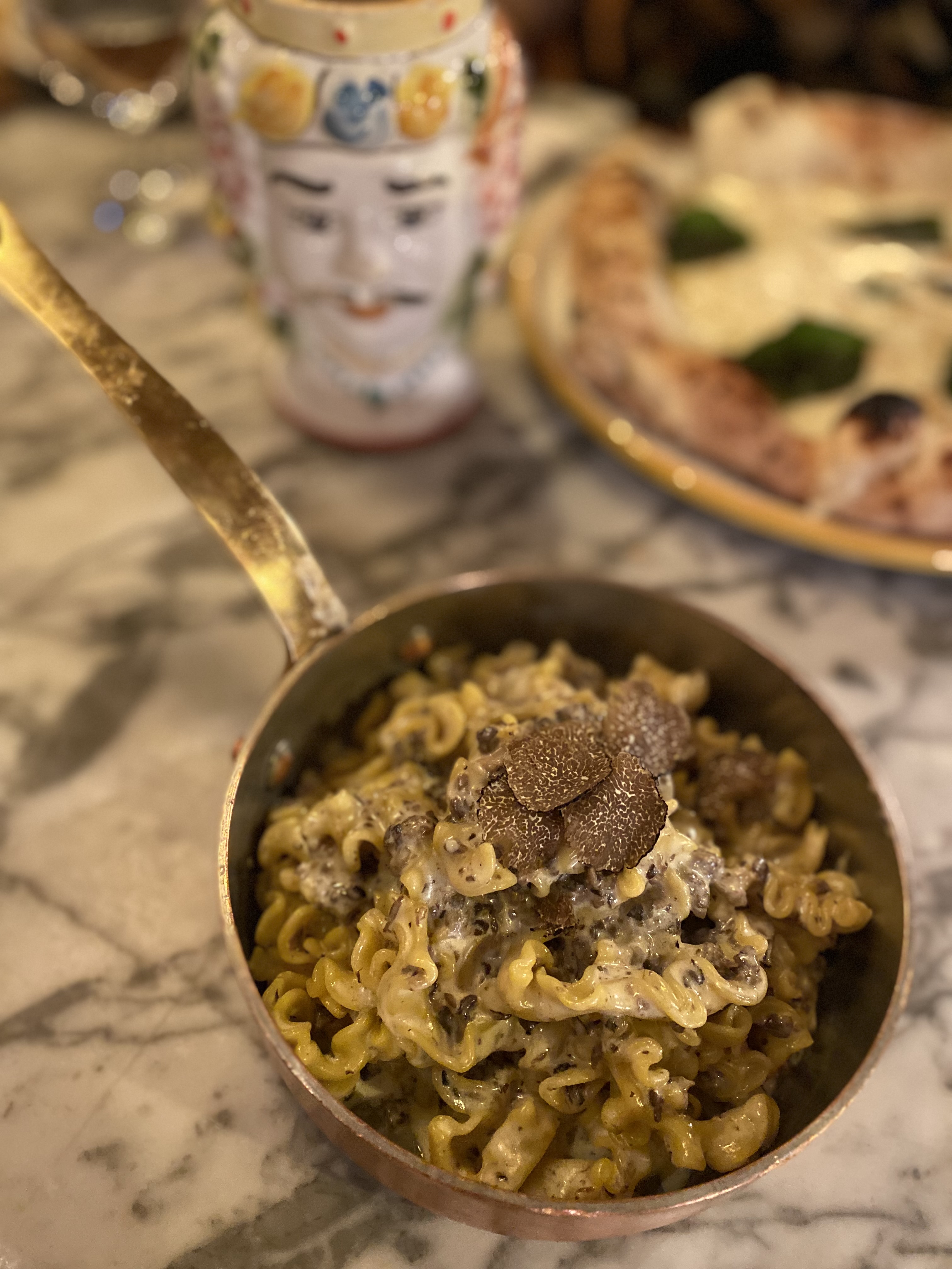 Service impeccable, décor et atmosphère très atypique et originale. La nourriture est qualitative. La spécialité de ce restaurant du groupe Big Mama est la truffe. Pâtes et pizza à la truffe qui sont très bonnes. Je vous conseille de prendre des pâtes à la truffe pour 1 personne et non pas la formule pour 2 personnes car vous aurez moins de sauce avec celle à 2 personnes. Je préfère personnellement avec plus de sauce. Tous les plats sont travaillés mais je trouve que c'est un peu cher pour ce que c'est. Je recommande de tester le restaurant, vous ne serez pas déçu mais vous ne serez pas ébloui non plus.