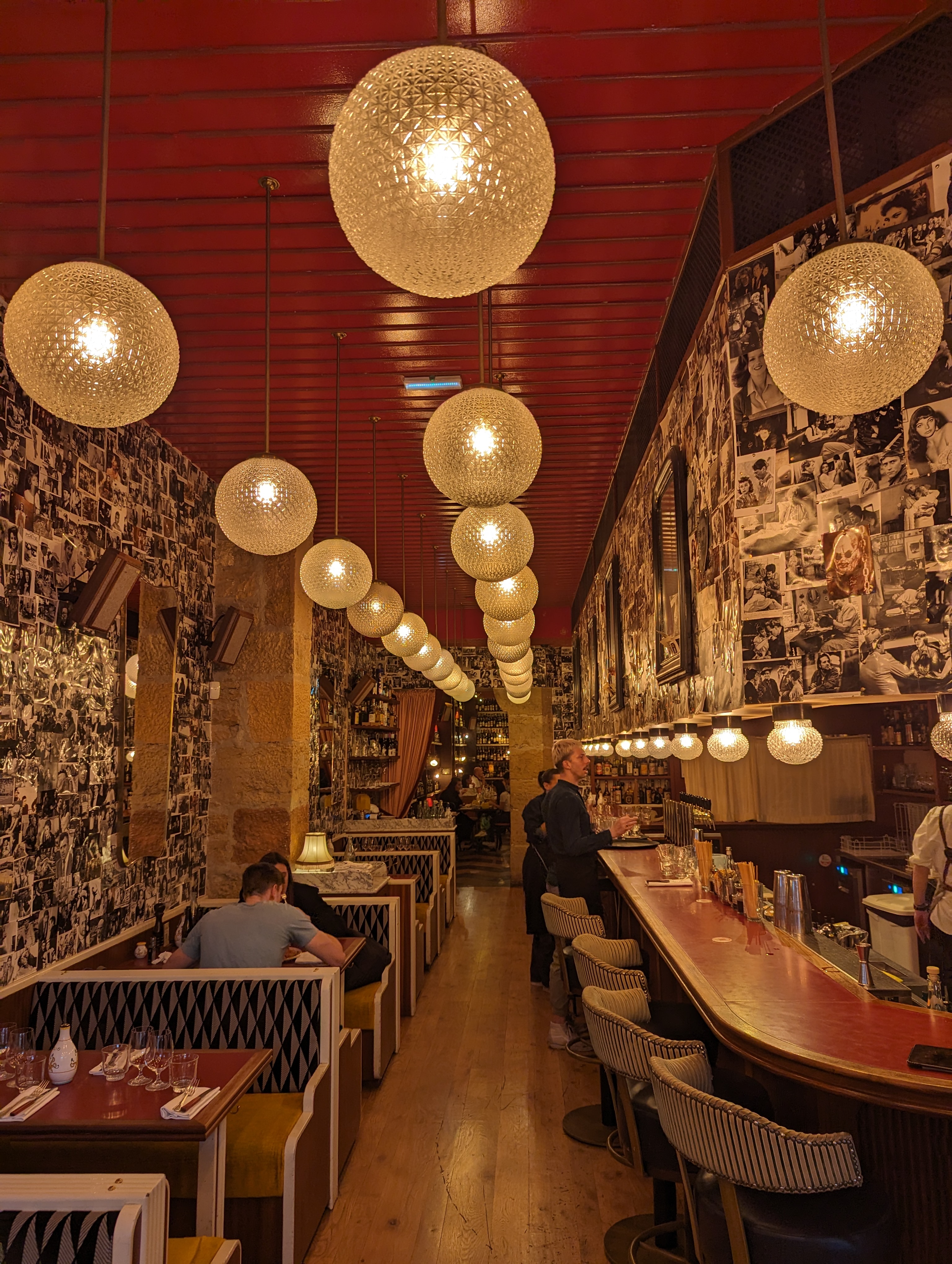 Restaurant italien où la belle décoration vous permettra de vous occuper pendant l’attente du personnel et de vos plats. Selon votre placement, vous aurez une expérience un peu différente. Le restaurant est grand. L’entrée avec le comptoir, ensuite un long couloir qui se termine sur une grande pièce principale sous laquelle se trouve une cave voutée sans intérêt. Il est fortement conseillé de réserver à l’avance sinon vous risquez d’attendre longtemps votre tour à l’entrée. La cave est sombre et sans réseau. Un réseau wifi est à disposition pour permettre d’utiliser le QR code afin de visualiser la carte et de payer l’addition (attention commission de l’application de paiement) Le service de table est jolie. La majorité du personnel est accueillant et professionnel mais parait en sous nombre. L’attente est parfois longue et ils ne viennent pas forcément vous voir donc il ne faut pas hésiter à les interpeller. Les cocktails étaient bons, les plats aussi mais je m’attendais à mieux au vu de la réputation de l’établissement.