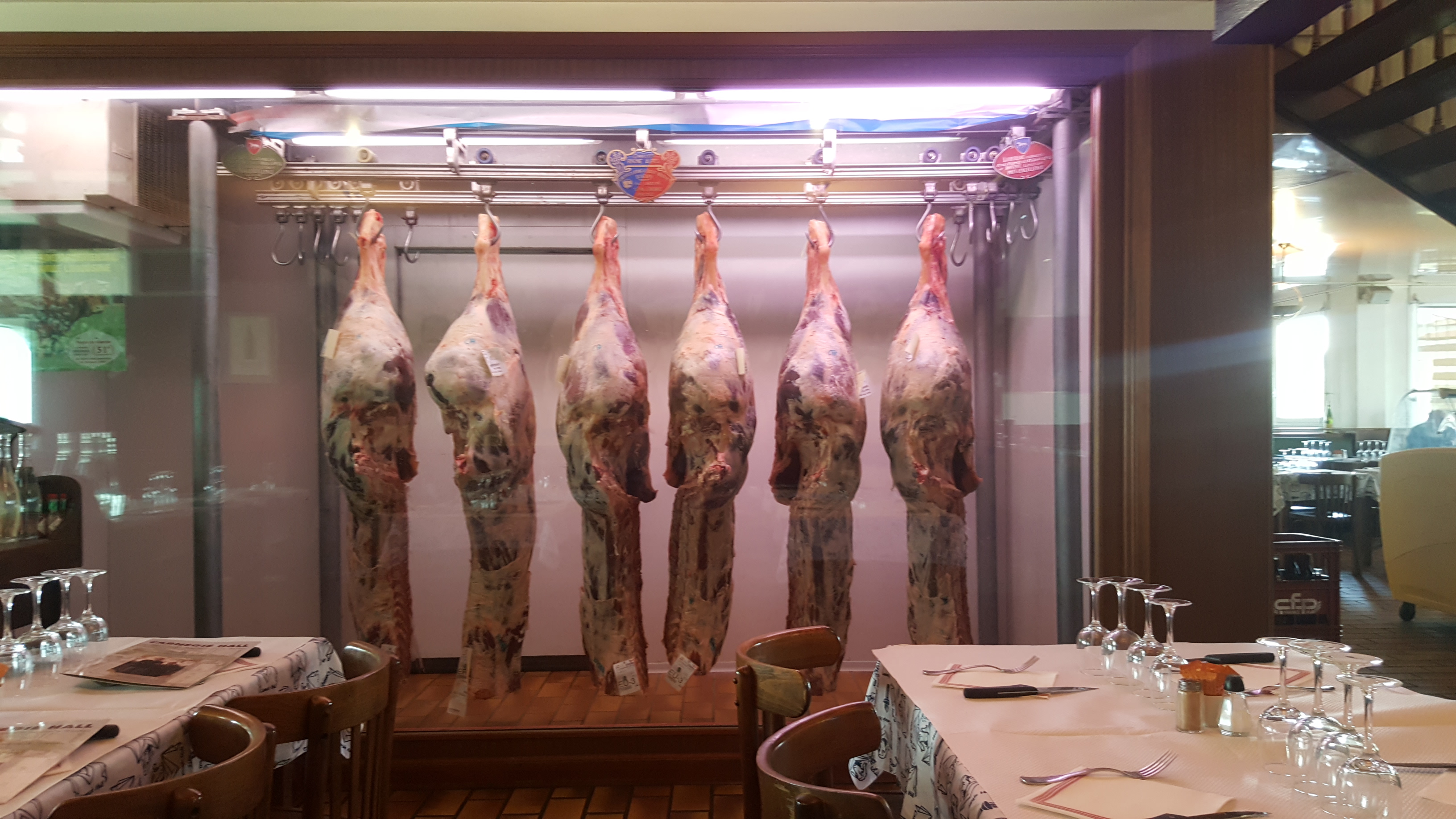 Les amoureux de la viande seront ravis ! La viande est tendre et goûteuse. Le gratin dauphinois qui l'accompagne est très bon. Le cadre est sympa avec les carcasses de viandes qui pendent dans une vitrine réfrigérée.