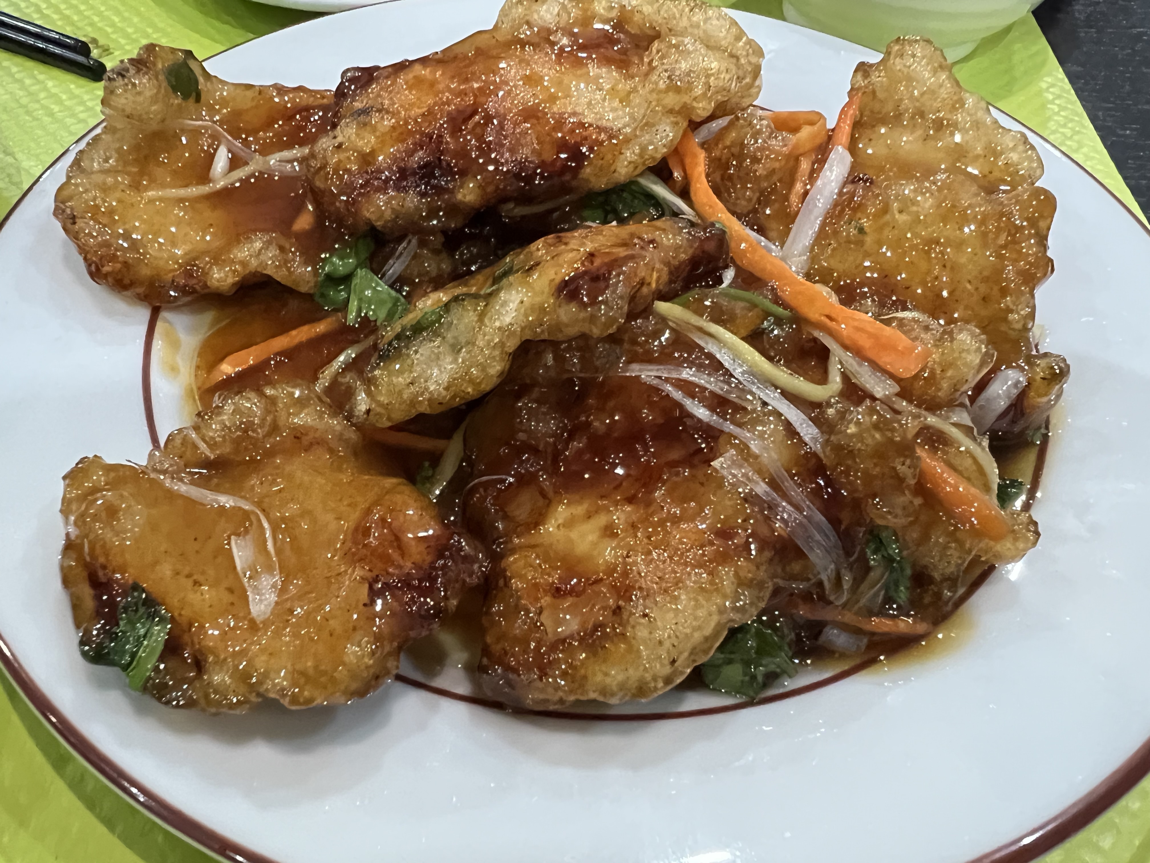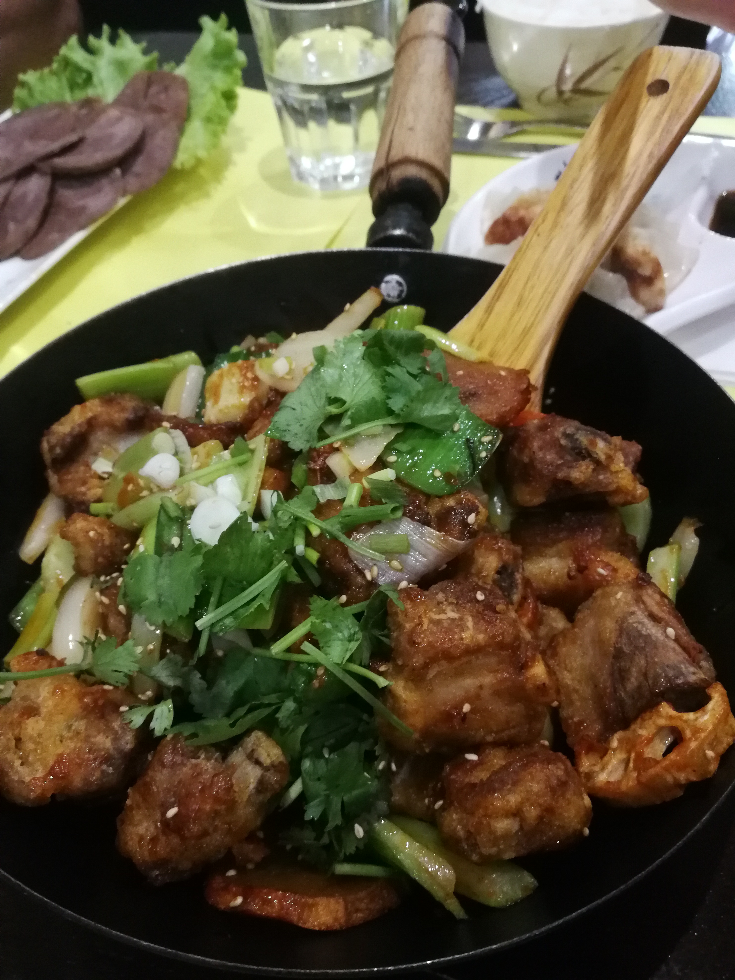 Nous étions 3 personnes et avons commandé 2 entrées et 2 plats principaux avec 3 bols de riz. Plat principal : 1. Poulet au wok 2. Marmite des poissons. . Les deux étaient vraiment bons. Mais le poisson était un peu trop gras à mon goût et mes préférences. Donc, j'ai préféré le poulet au poisson. C'était juste parfait. Cependant, au début, j'étais hésitant, une fois arrivé et goûté la nourriture. C'était vraiment heureux d'être venu. Les desserts n'étaient pas disponibles ce jour-là quand j'y suis allé. L'endroit est vite bondé, je recommande donc de réserver la table à l'avance. Il peut arriver que le serveur oublie quelque chose (de notre commande) à cause de la foule. Voir beaucoup de Chinois manger de bon cœur m'a également soulagé de savoir que j'étais au bon endroit. Merci. Je serai bientôt de retour.