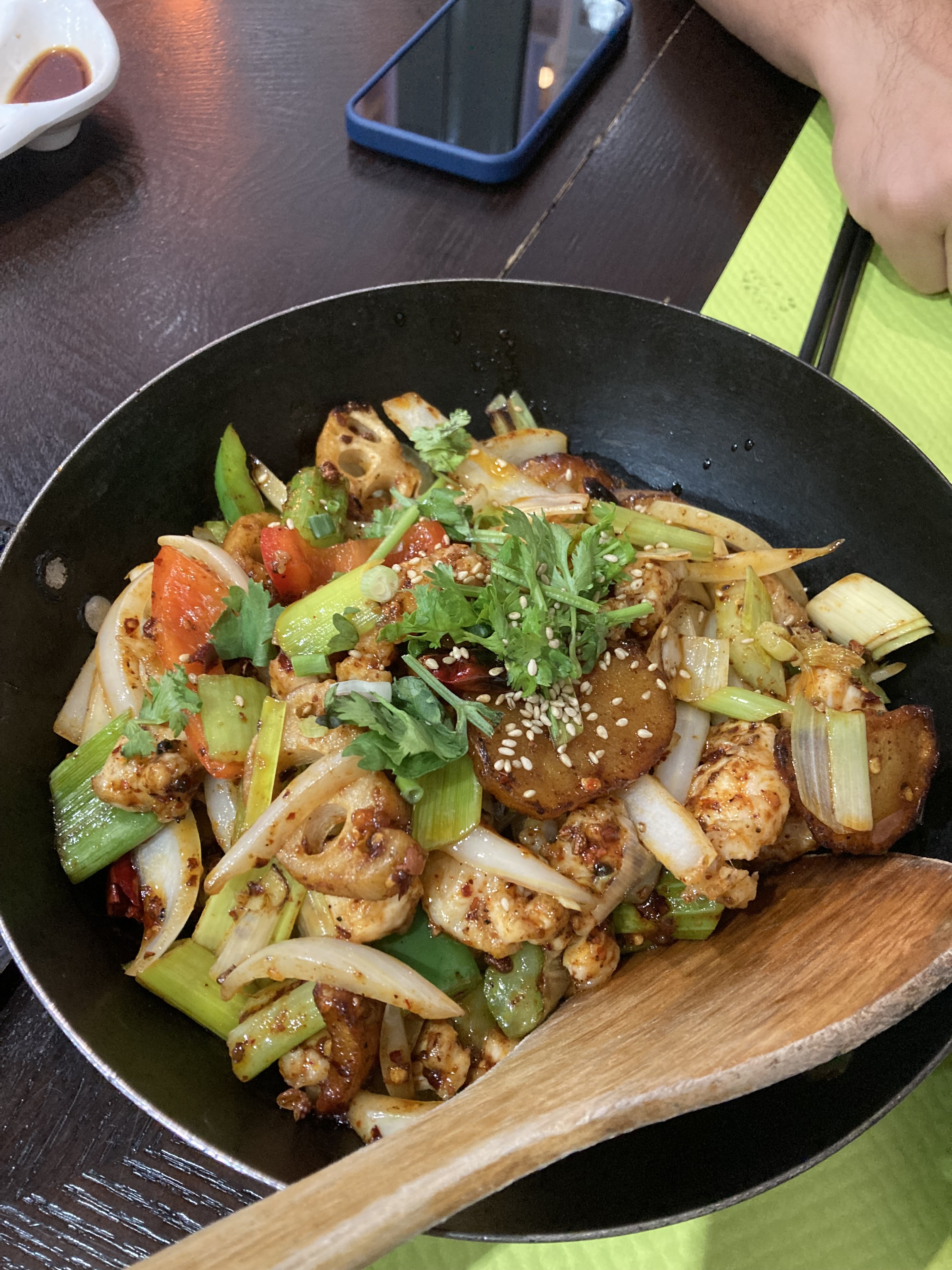 Un joli petit restaurant, l'équipe est souriante, rapide et accueillante. On y est allé à 4 et nous avons commandé deux assiettes par personnes plus une assiette de riz cantonnais (vraiment super bon, je recommande surtout si vous craignez un peu les épices, et que vos amis on commandé des plats épicés. Ça permet de casser la sensation de piquant sur la langue, ça ou du thé pendant le repas !). Attention, si vous ne connaissez pas trop les restaurants chinois, le but est de partager avec vos amis ^^. Les assiettes sont donc généreuses. On reviendra !