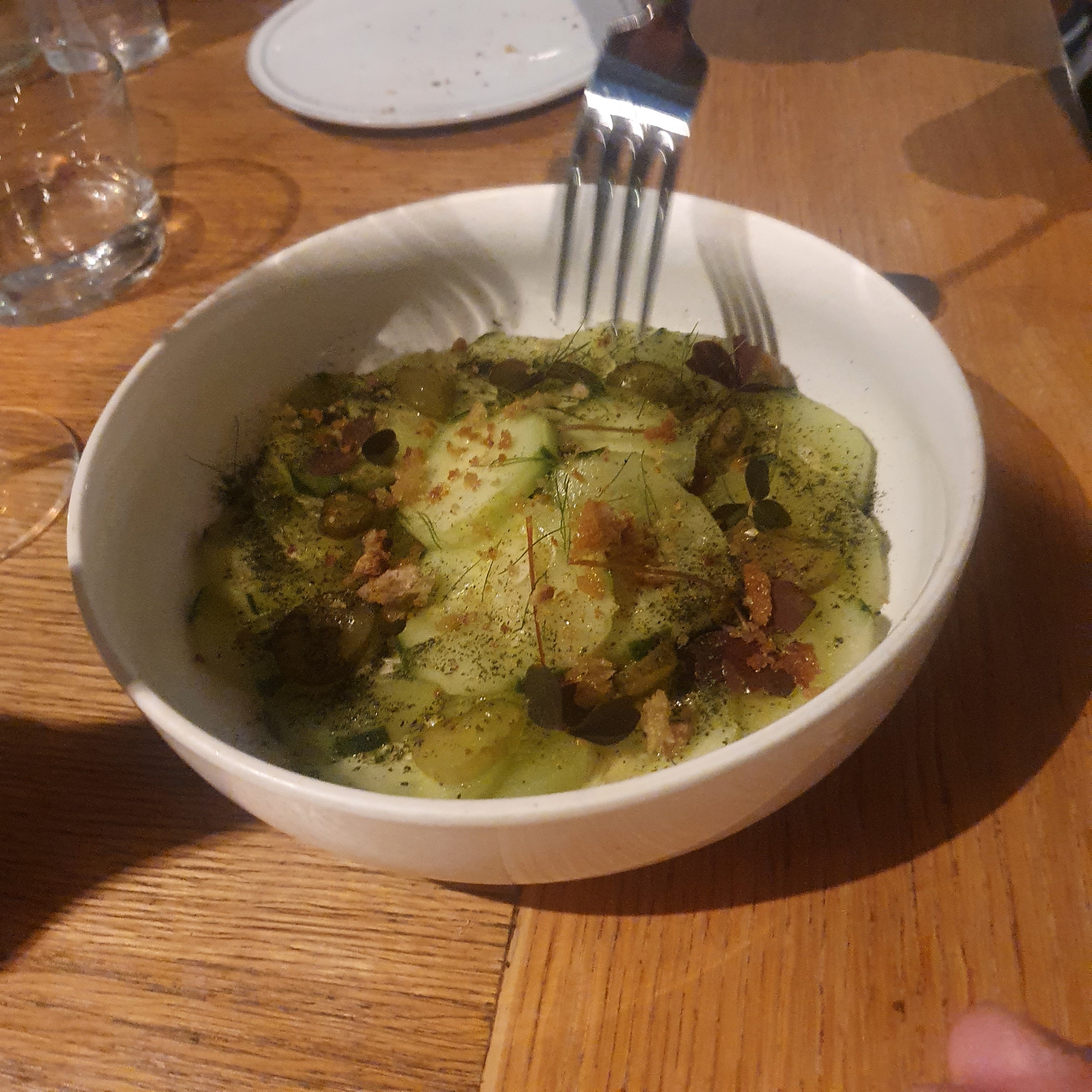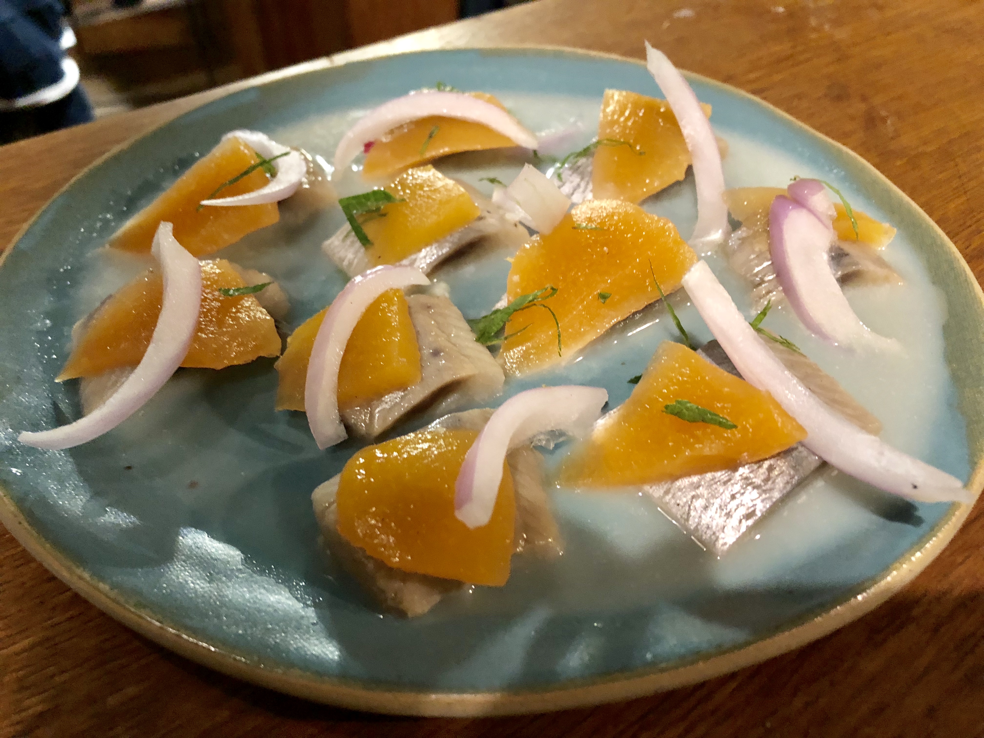 Endroit mignon avec un personnel adorable et une cuisine délicieuse. Les photos sont des aubergines, des carottes, des anchois, du hareng qui était de loin mon préféré et un autre poisson cru comme le thon.