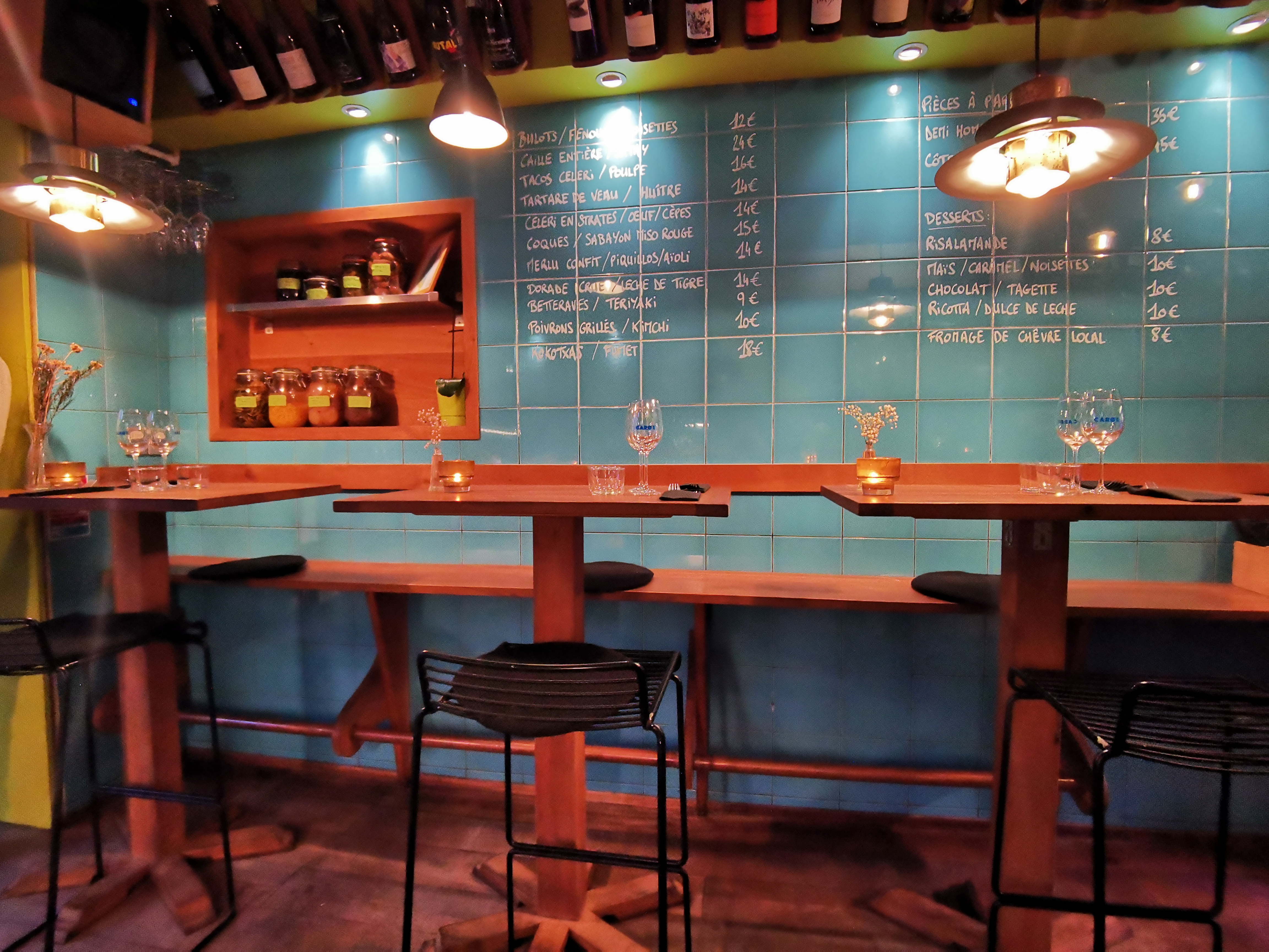 Une cuisine moderne et originale. Le concept du restaurant avec plats à partager est jeune et moderne, les menus sont affichés au mur. Par ailleurs, la cuisine tend sans complexe vers le gastronomique, dans un style fusion scandinave-basque, à faire pâlir des restaurants qui prétendent l'être et qui n'en portent que le nom. Et pour finir le service est aux petits soins et toujours avec le sourire.
