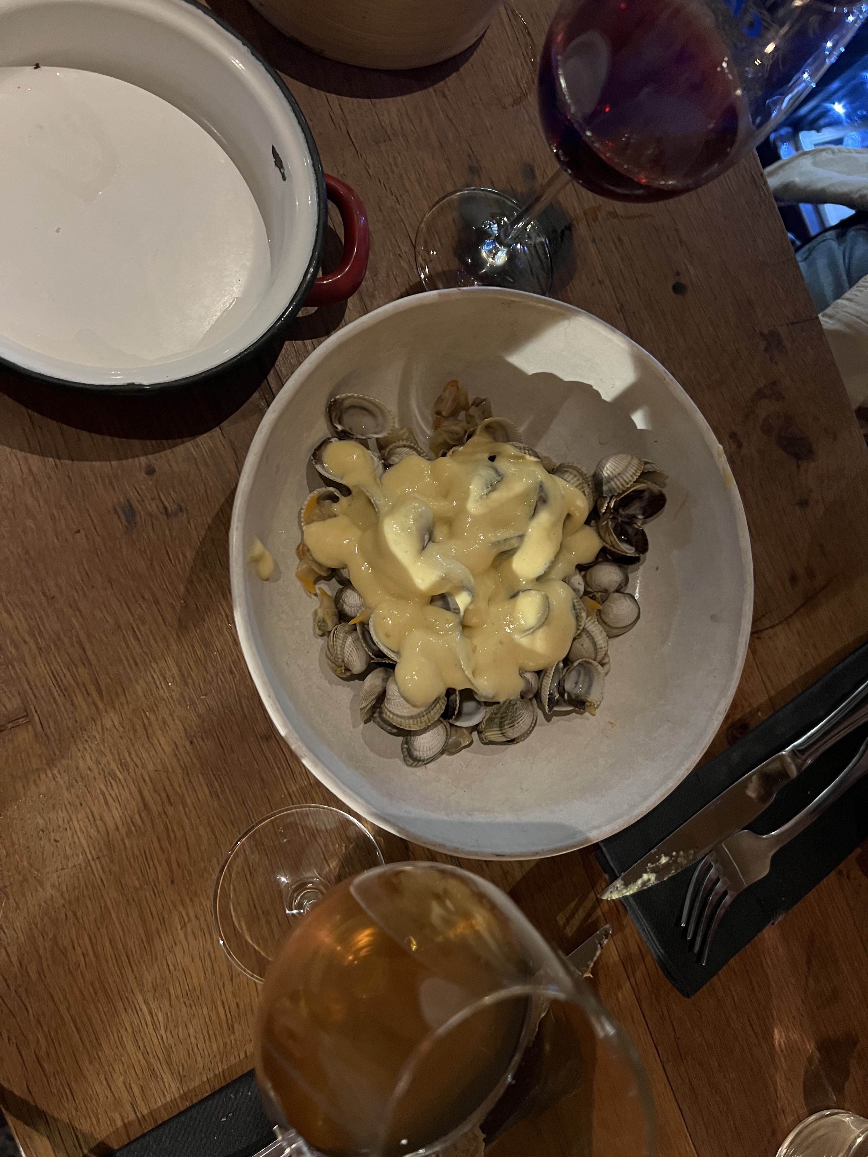 Avis assez mitigé sur les plats, à l’exception des coques qui sont délicieuses. Je n’ai pas apprécié les gros blocs de poisson crus, servis en l’état et très difficile à découper. Pas particulièrement bons. Le service était également moyen. Le vin est top par contre.