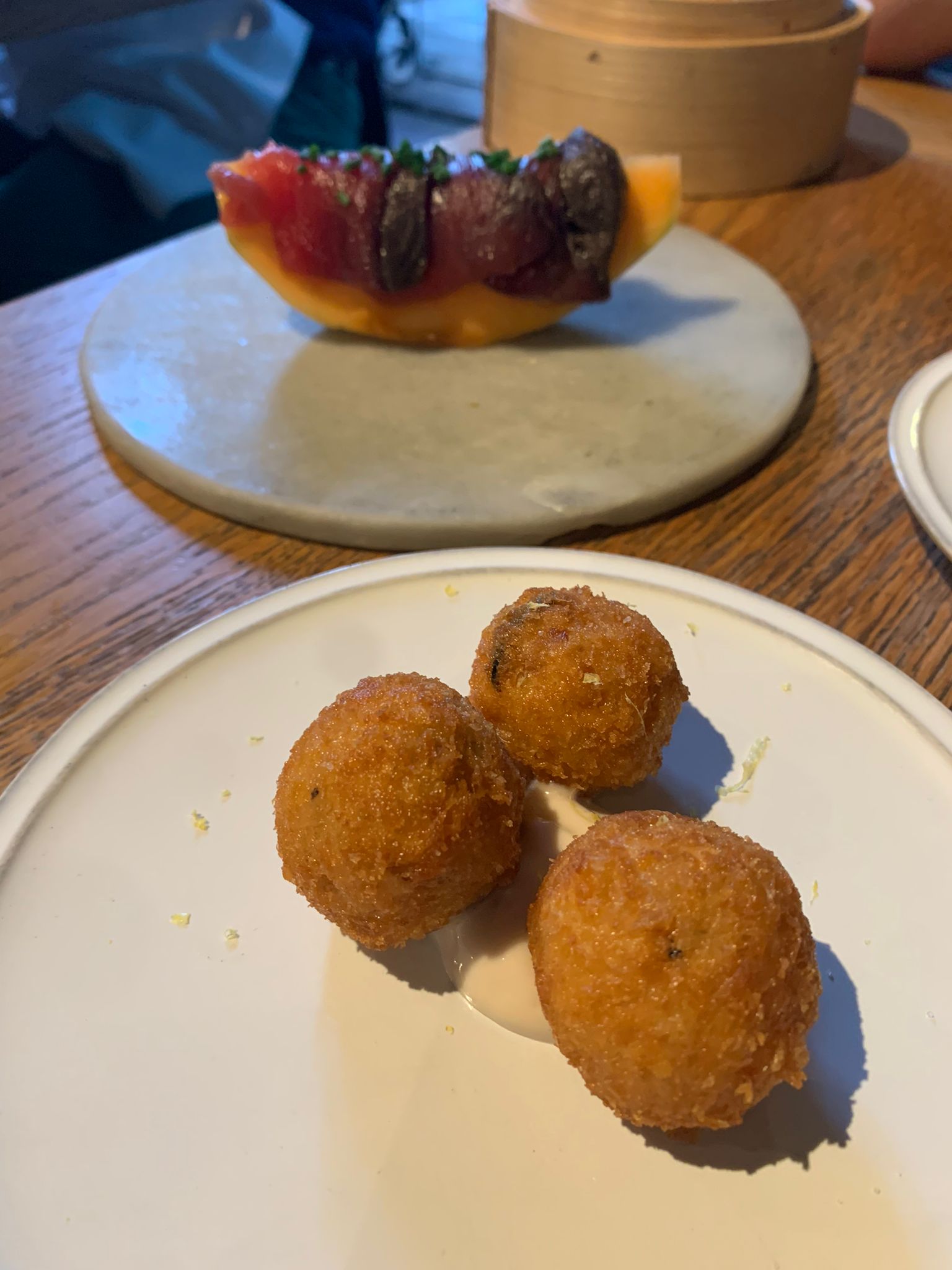 Petite carte d’assiettes à partager (a deux). Sublime! On s’est régalés! Ce soir particulièrement la st jacques et le riz au lait. (on oublie pas le service qui était très sympathique/efficace/généreux/disponible)