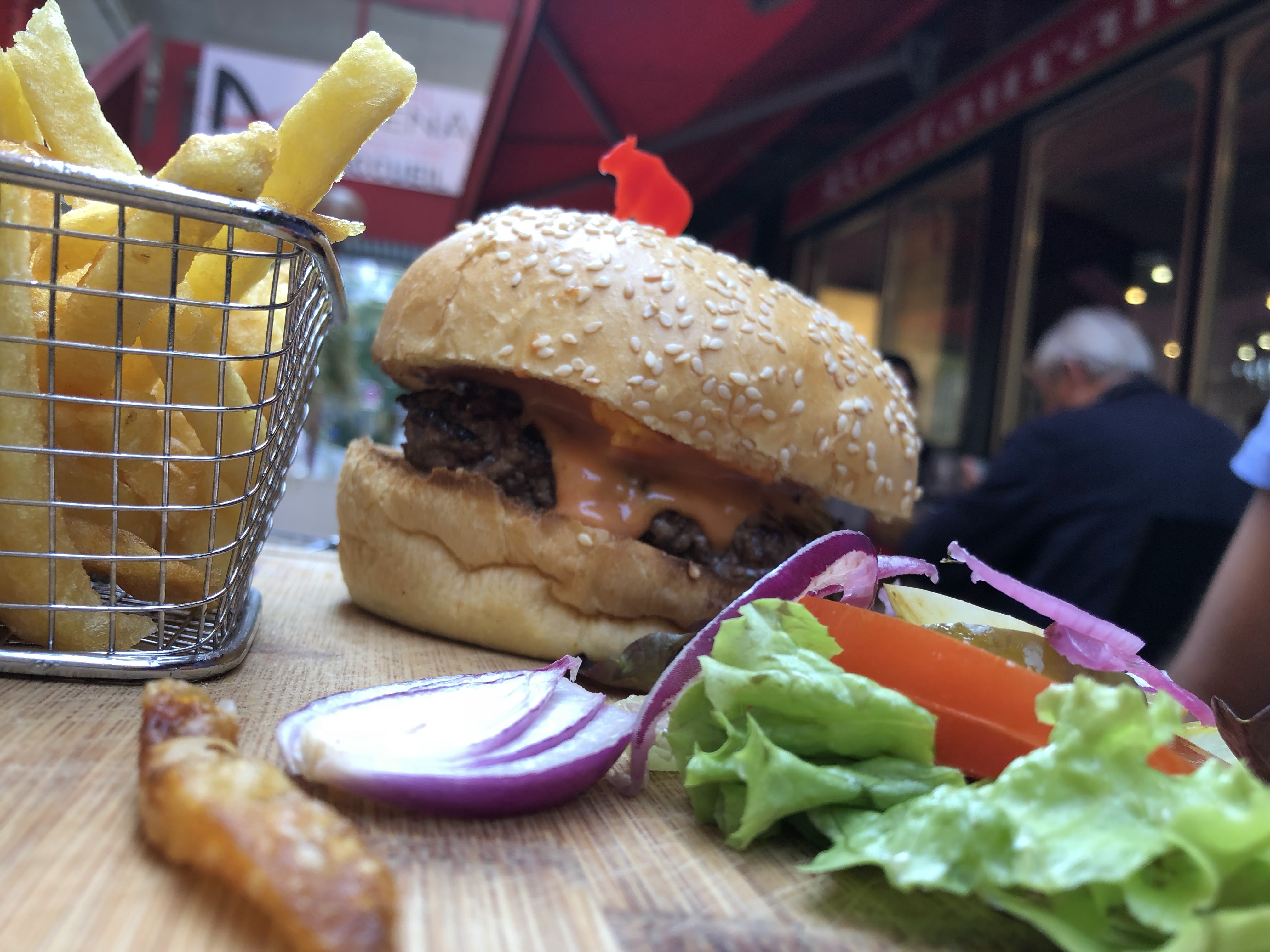Brasserie qui ne paye pas de mine à l’extérieur. Intérieur assez « cheap » J’ai commandé un burger « Carpe Diem » 17,80 € viande excellente mais portion de frites un peu juste pour un bon mangeur. Dessert : café gourmand 8,00 € sans plus, mais café excellent Prix un peu excessif pour 1 burger et un dessert