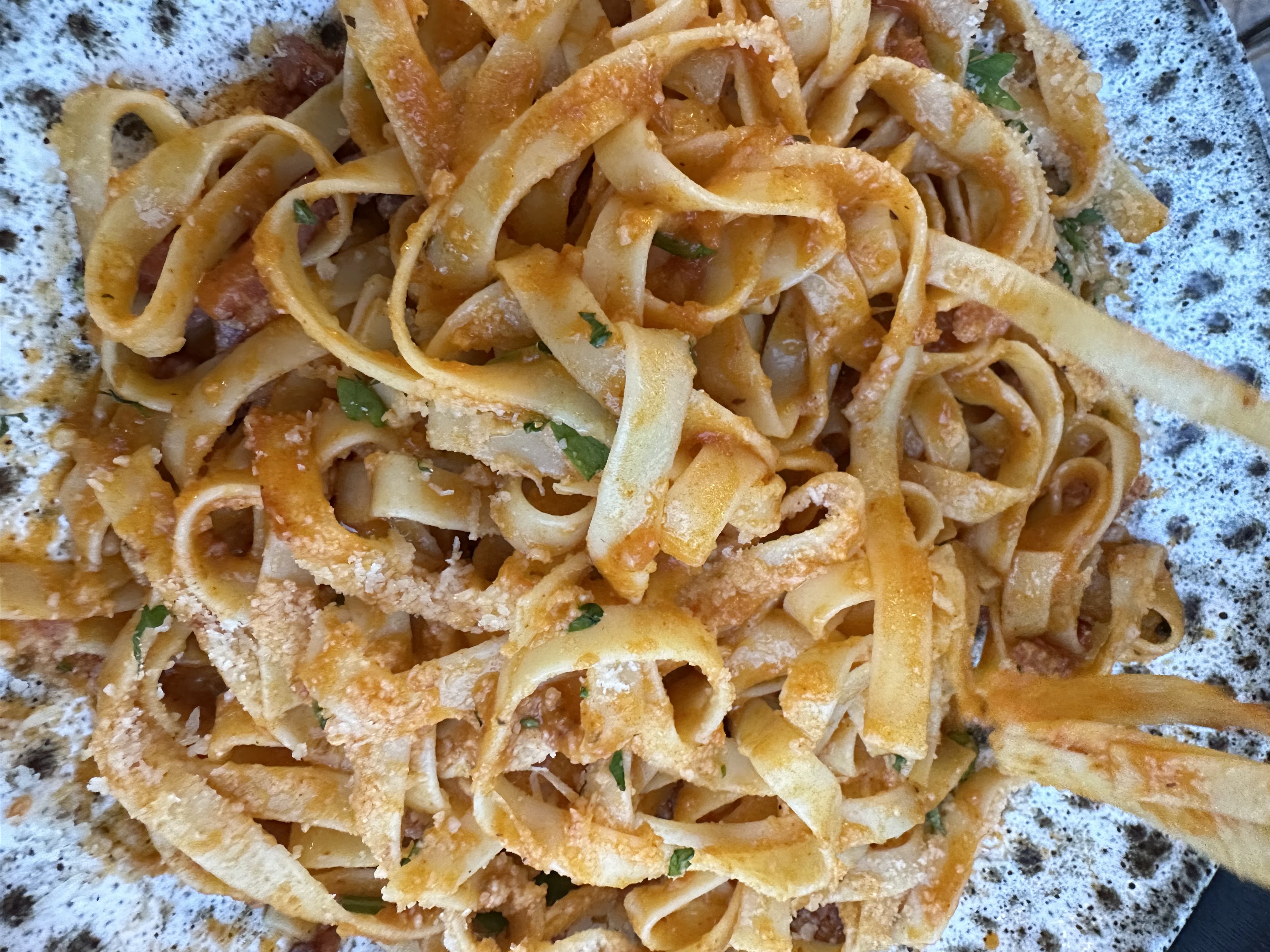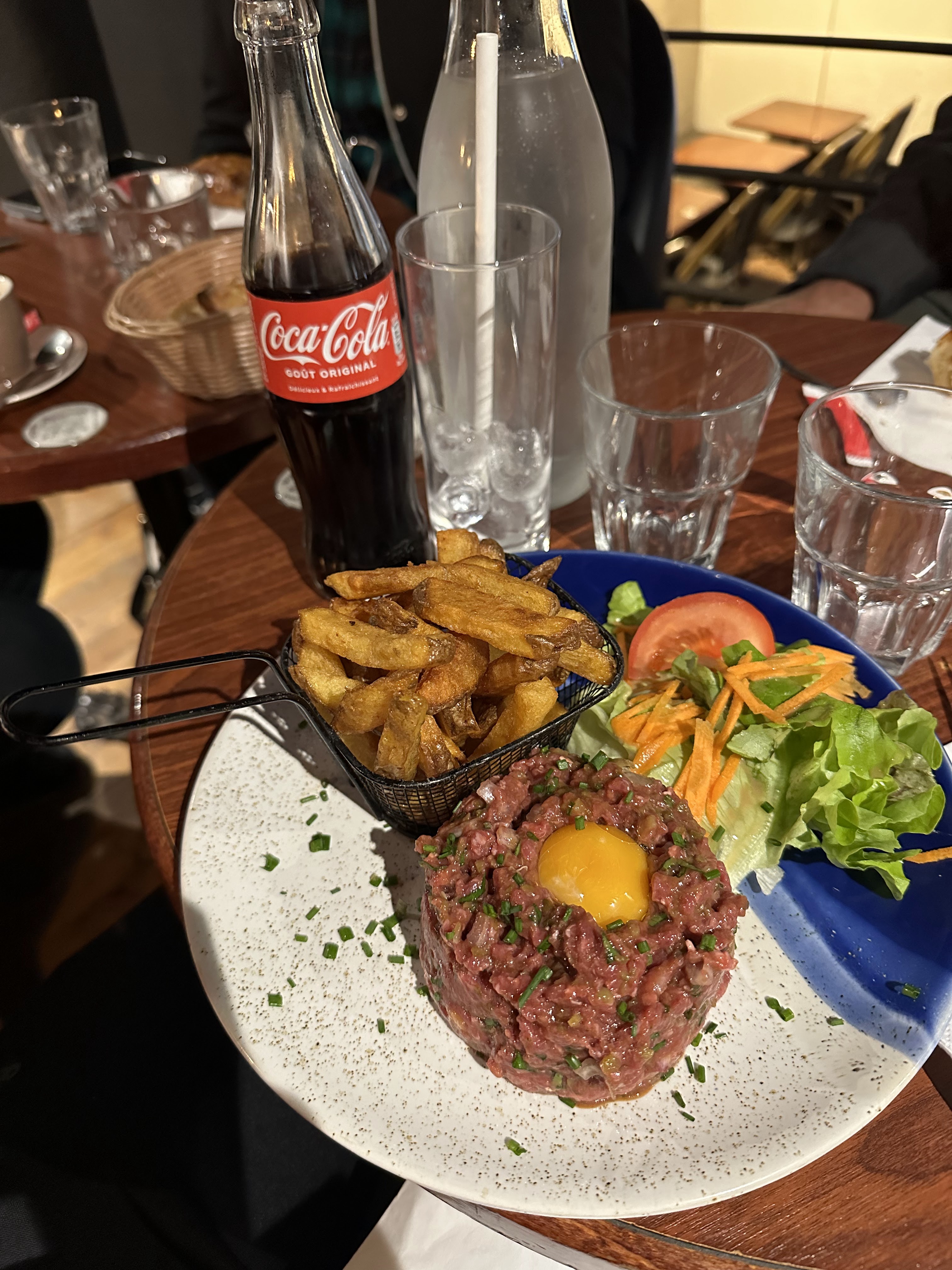 Nous avons commandé le tartare de bœuf et la carbonara. Les deux étaient délicieux et le monsieur qui travaillait était très sympathique.