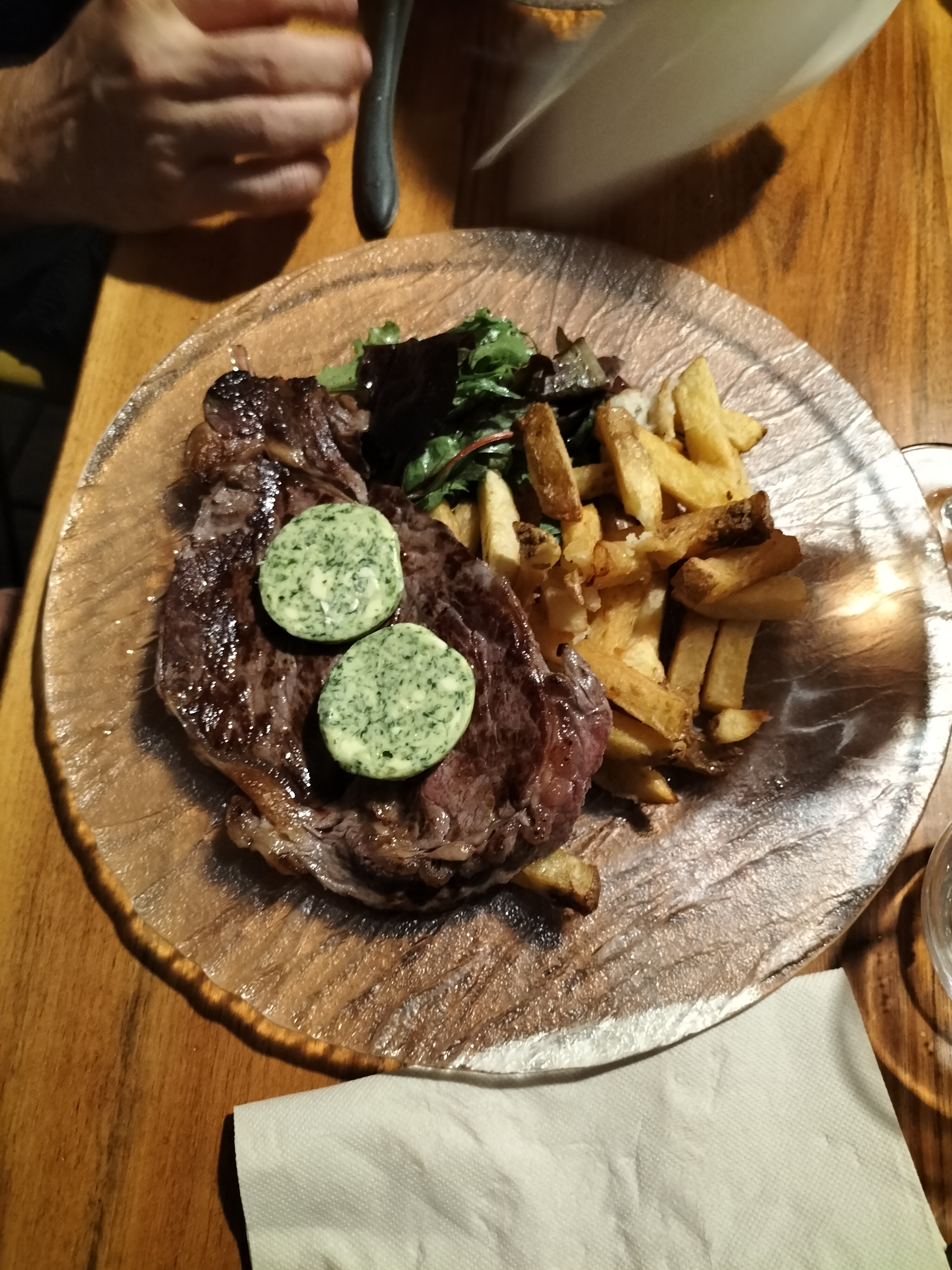 Vraiment très agréable Bon L'entrecôte au beurre maître d'hôtel , très bonne malgrés une cuisson pas adaptée à la demande Mais honnêtement très bon établissement