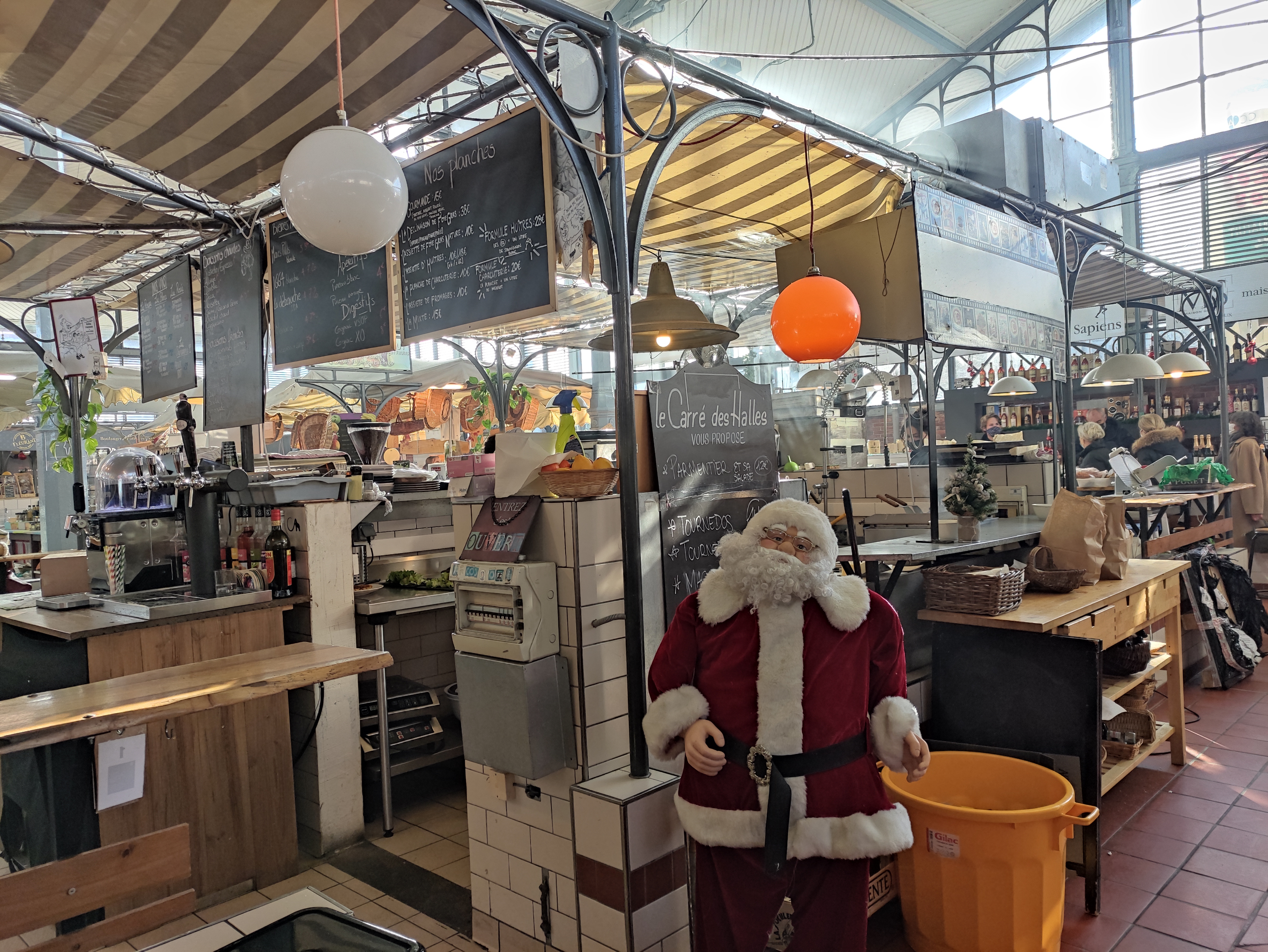 Un étal sans prétention au milieu du marché couvert, le Carré des Halles. Assiete de foie gras de canard entier : quelques-unes des meilleures fois grqs que j'ai jamais goûtées, servies avec du pain et de la salade pour le prix fou de 6€, et un bon verre de rosé pour 3€. Ça vaut le détour (le parking souterrain se trouve juste en dessous du marché).