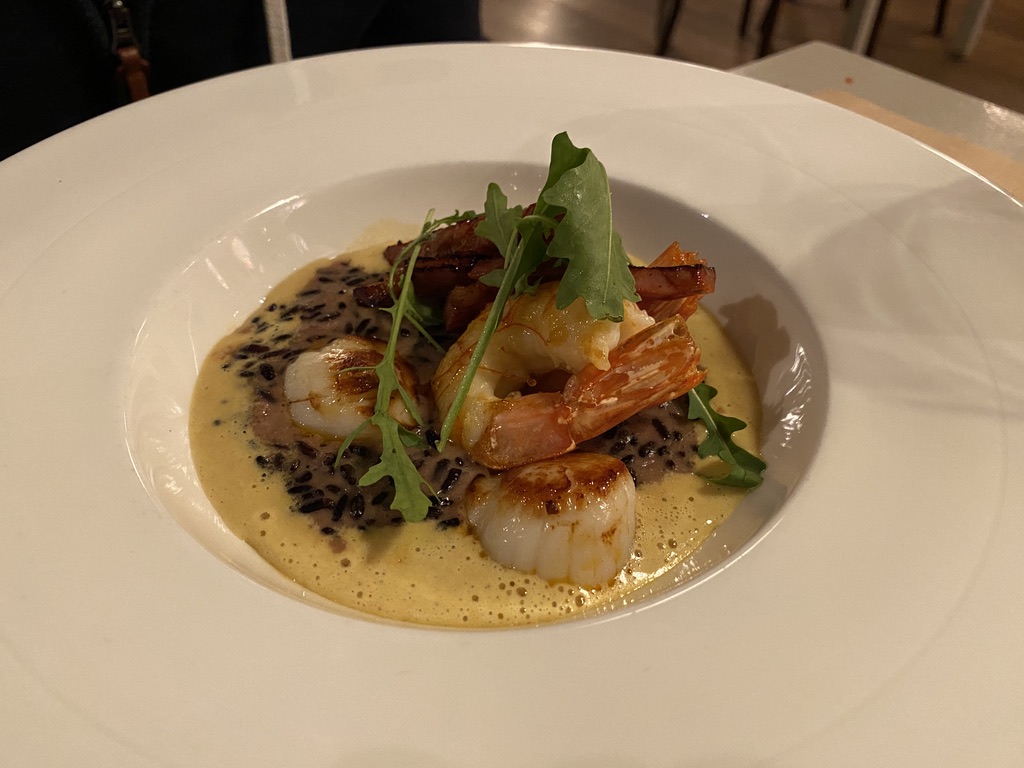 Super restaurant, le service était superbe, sympathique et professionnel. J'ai pu déguster quelques vins avant de décider ce que je souhaitais. Le risotto aux fruits de mer et au riz noir était absolument délicieux. Tout était cuit à la perfection.