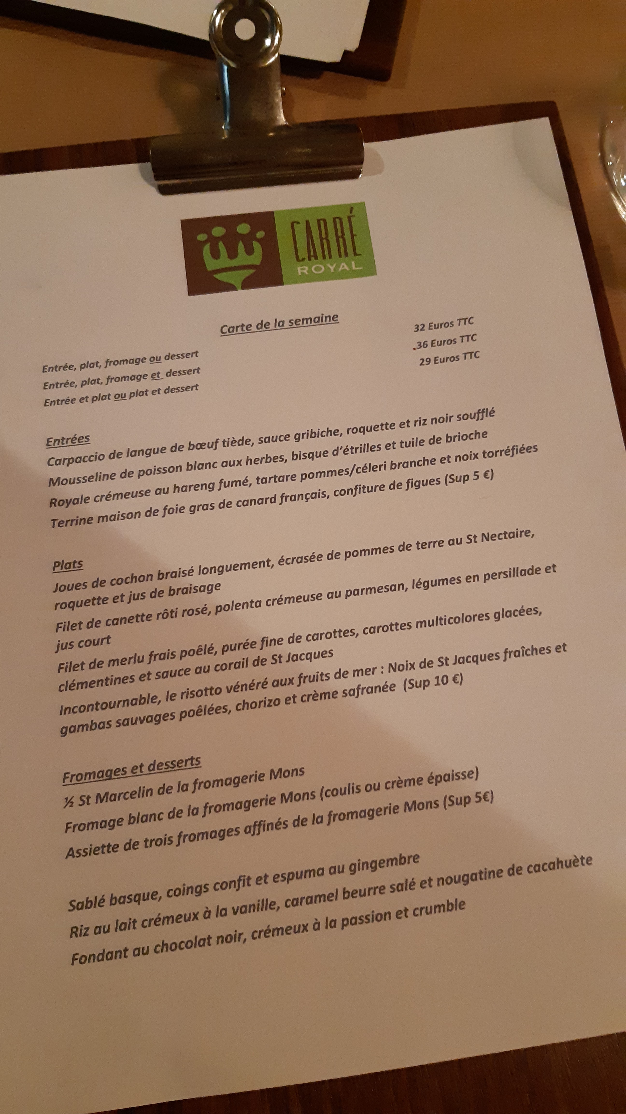 Pensez à réserver au Carré royale car vous risquez de ne pas trouver de place .. un restaurant intimiste avec une cuisine raffinée , des vins de qualité. Une tres bonne adresse