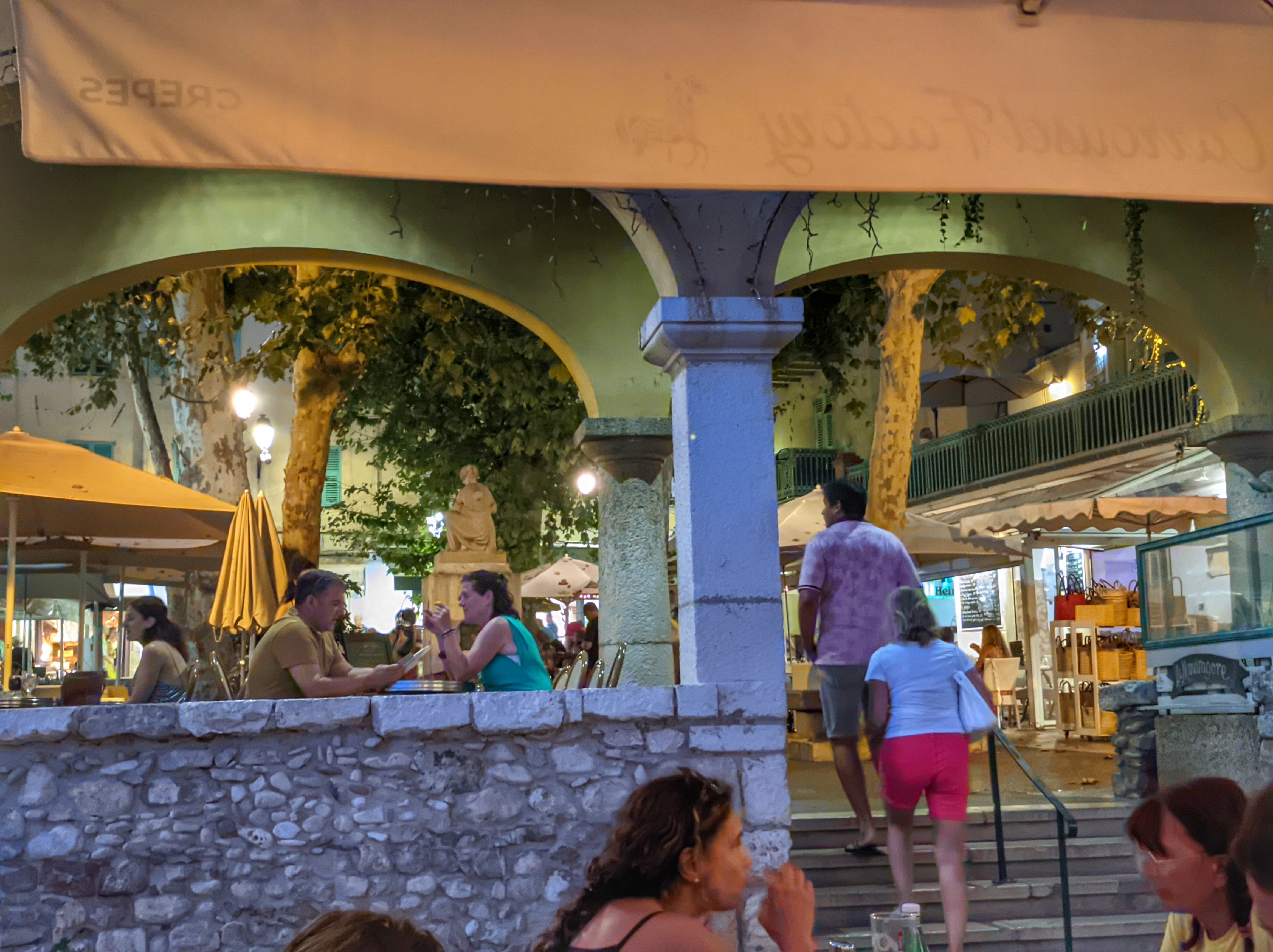 Bien..petits menus sympathiques ...jolies assiettes... Avons déjeuné sur la petite terrasse à l'arrière...a l'ombre.... C'est la 2e fois que nous y allons... Tout proche du Palais... Je précise que c'est a Monaco..