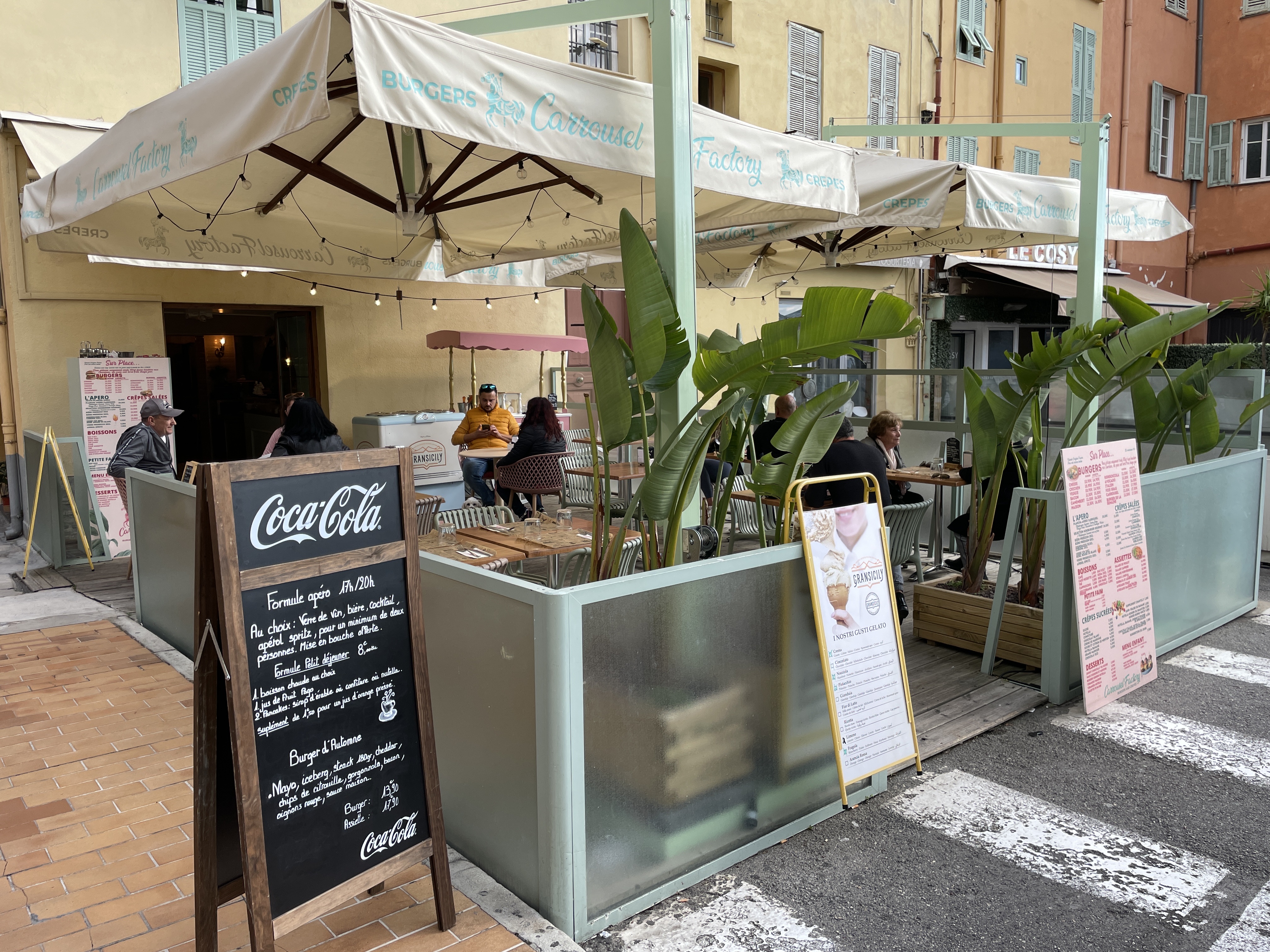 Méga délicieux burger. En plein centre de Menton. Non loin de la promenade de la plage. Certainement une recommandation.