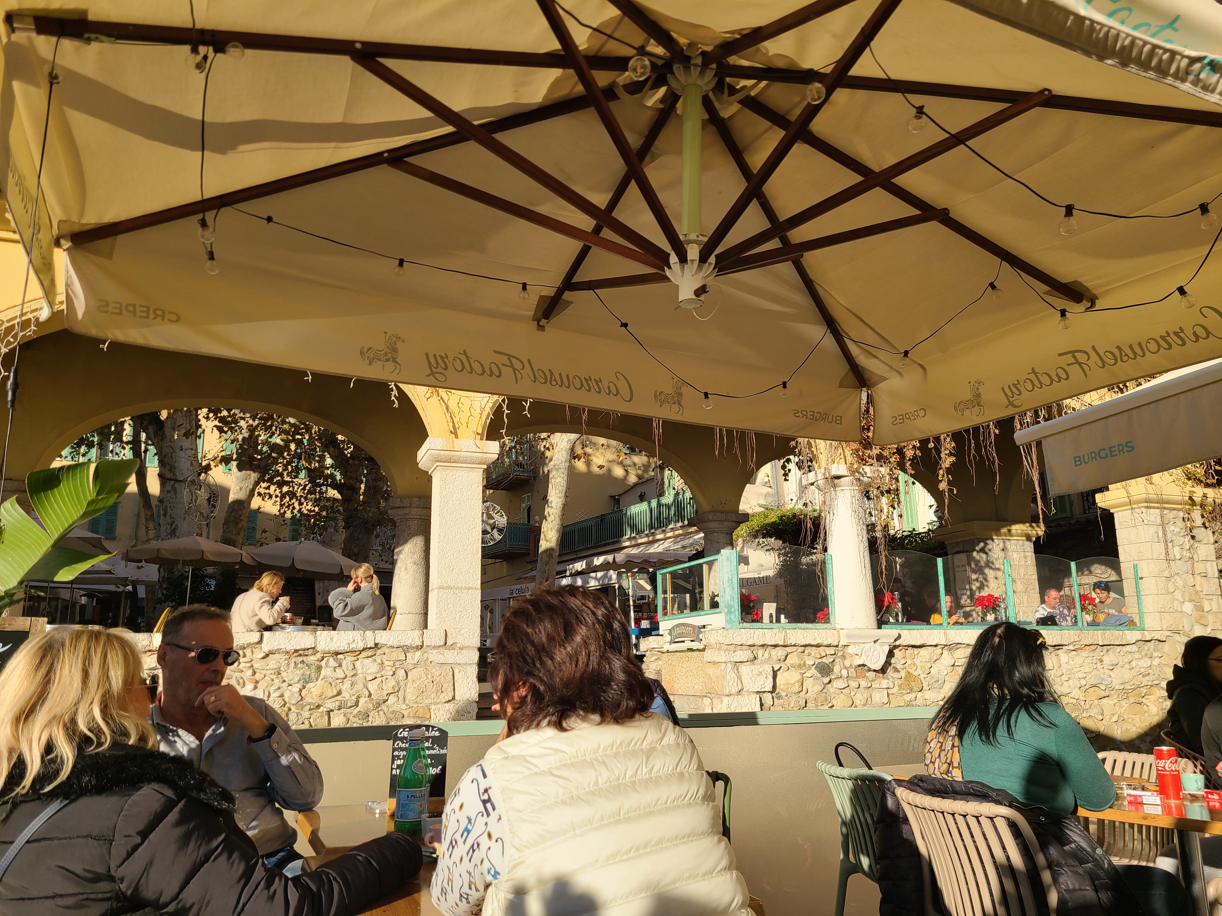 Endroit fantastique et vraiment relaxant dans la rue piétonne de Menton. La jeune femme qui sert les tables est charmante, gentille et toujours souriante. Félicitations, le café était aussi un plaisir.