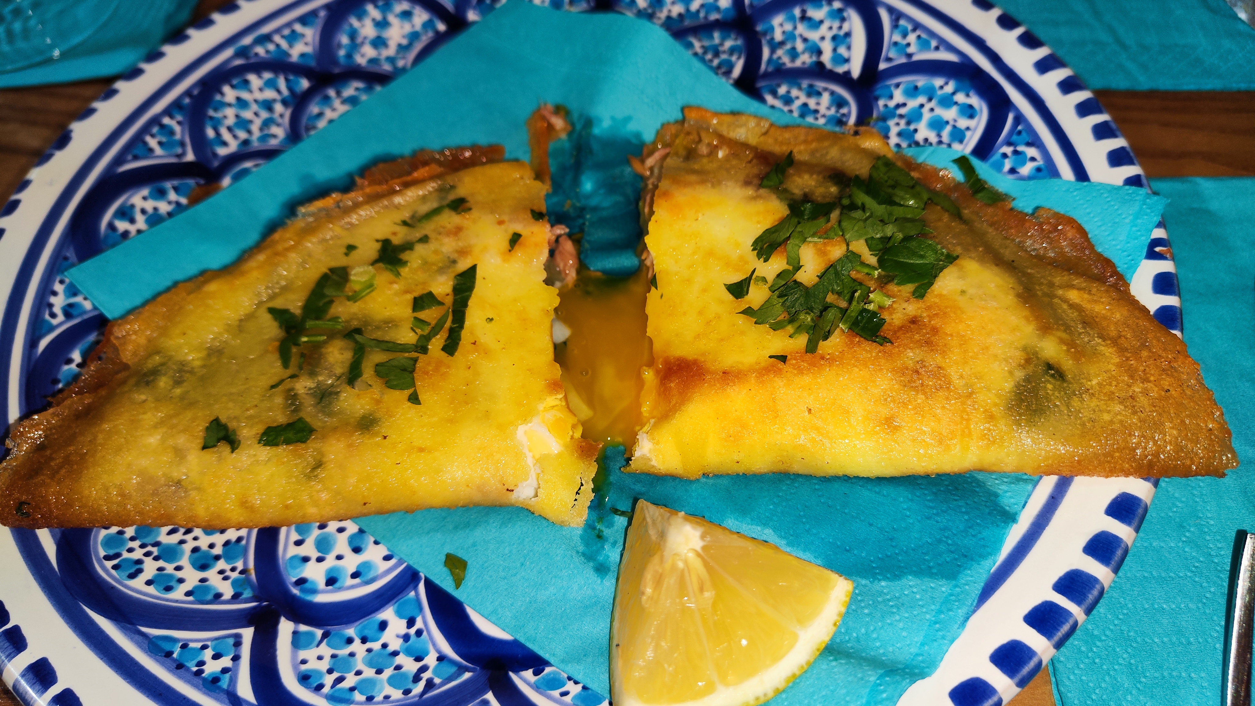 Les plats étaient très bon, seule bémol il manque un peu d'épice pour les bricks. Salade méchouia bonne. Ojja merguez super la sauce est excellente. Chapati escalope qui est mariné super mais une option avec des crudités serait mieux pour satisfaire tout les goût. Enfin leur pâtisseries sont très bien également. Je rejoins le commentaire d'une personne fait aujourd'hui la musique été vraiment trop forte. Pour améliorer votre carte et service, il serait bien de penser à faire une carte pour les boissons (ou la serveuse a oublié de nous la donner) Nous n'hésiterons pas à revenir pour tester d'autre plats.