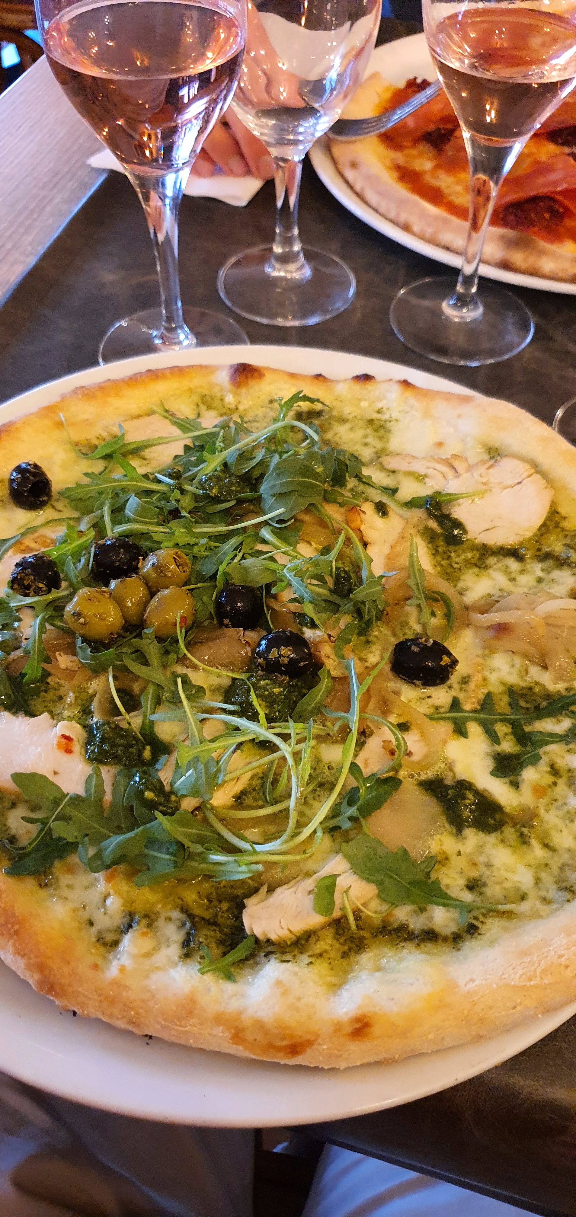 Pizza et un verre de vin. Service amical et serviable et pizza parfaitement cuite. Apprécié.