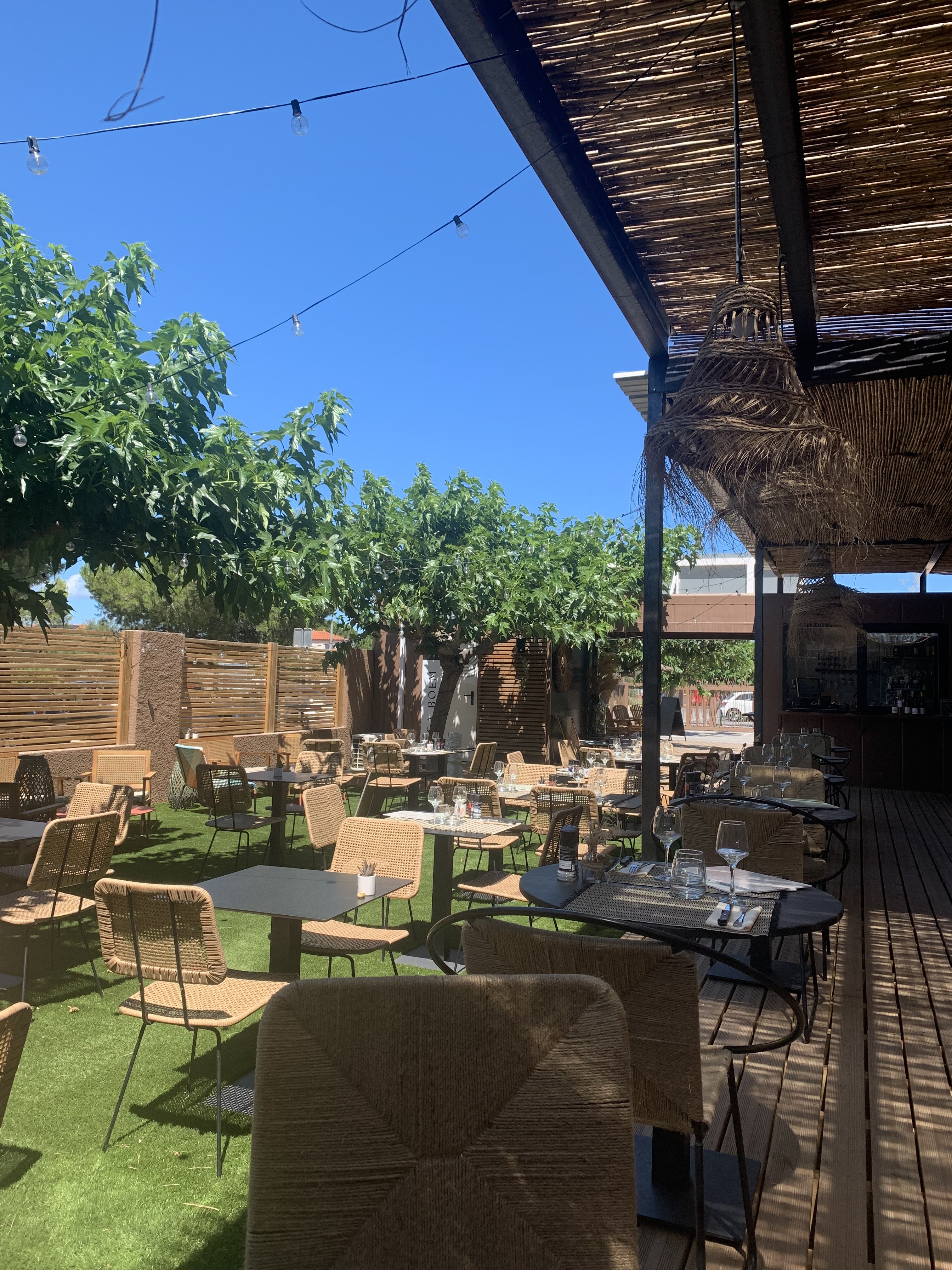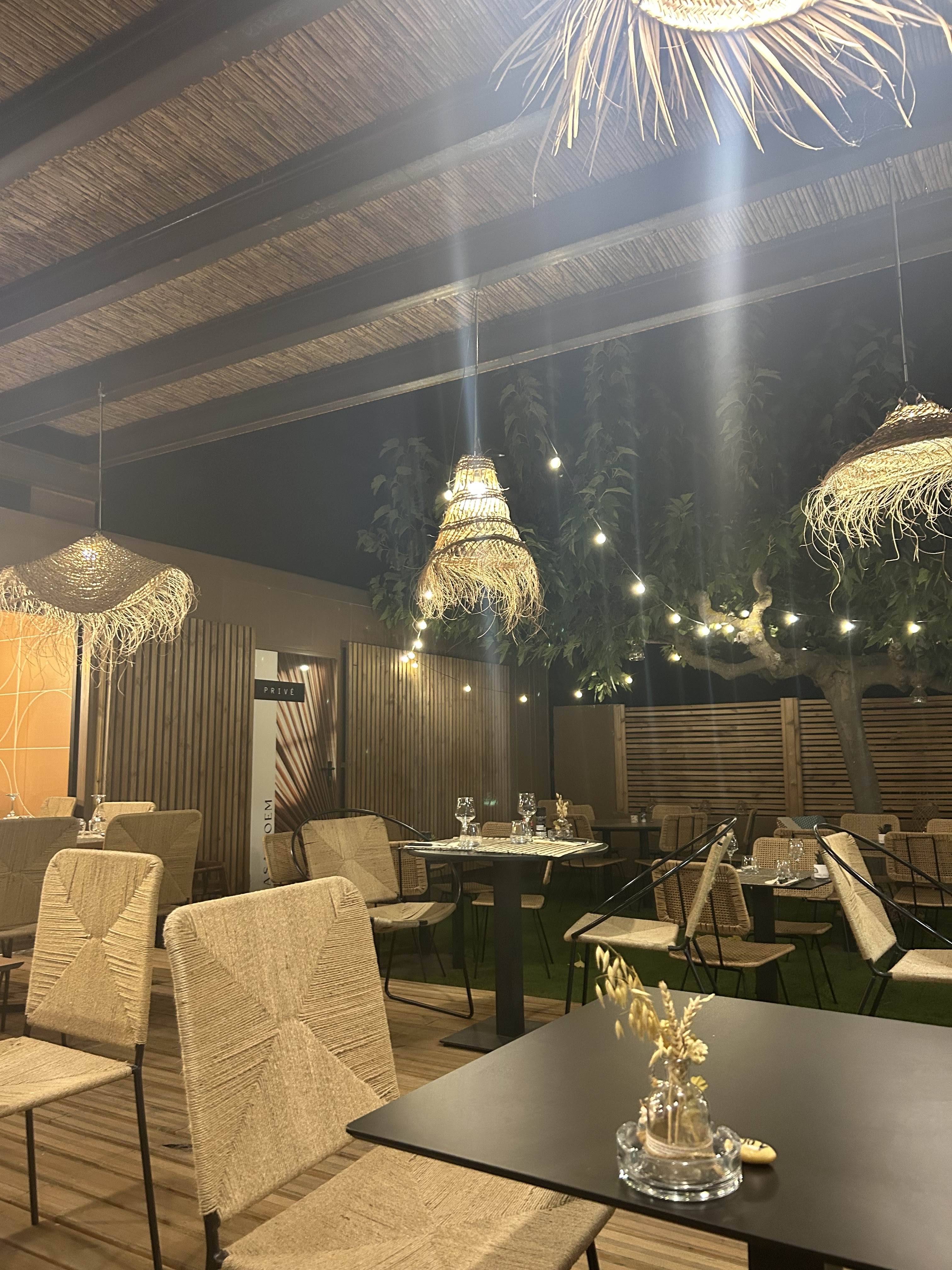 Une cuisine délicieuse, notamment les viandes et poissons cuits au feu de bois. Une ambiance fort sympathique dans un cadre bohème avec jardin. Un nouveau restaurant à découvrir à 2 pas de la plage.