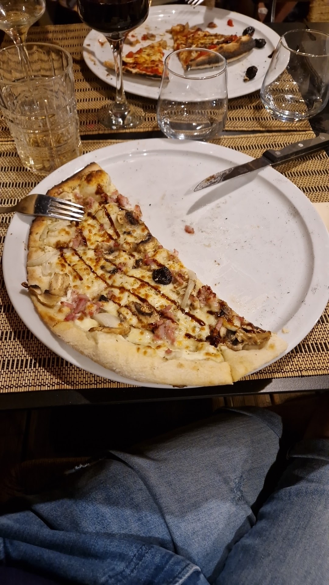 L'endroit est très bien, avec une bonne ambiance. Le personnel est très amical. Il manquait des ingrédients à ma pizza, j'ai dû apporter des magrets et du magret de canard, le magret était rare et je n'en avais pas. La carbonara était à la crème, les pâtes (à notre goût, je comprends que ce n'est pas universel) étaient trop bouillies et sous-assaisonnées, les penne au fromage ne montraient que la crème de noix. Les autres pizzas étaient meilleures, c'est-à-dire. La pâte à pizza n'était pas levée et avait une tache sèche. Je comprends que c'est la version française de la cuisine italienne, et c'est peut-être juste moi qui m'attendais à quelque chose de plus puriste. Dans l'ensemble c'est bon, personnellement je ne pense pas que ce soit près d'un 5 étoiles, mais on peut manger à sa guise.