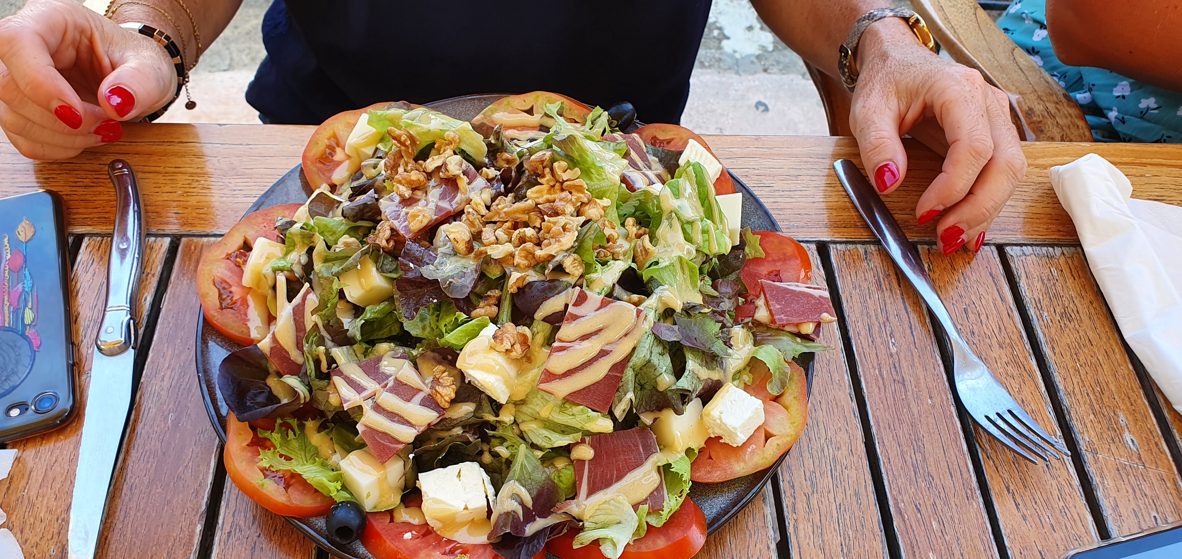 Arrivé tardivement pour manger, c'est toujours agréable d'être accepté dans un restaurant pour manger. Une très bonne salade, avec des produits de bonne qualité (surtout les tomates)