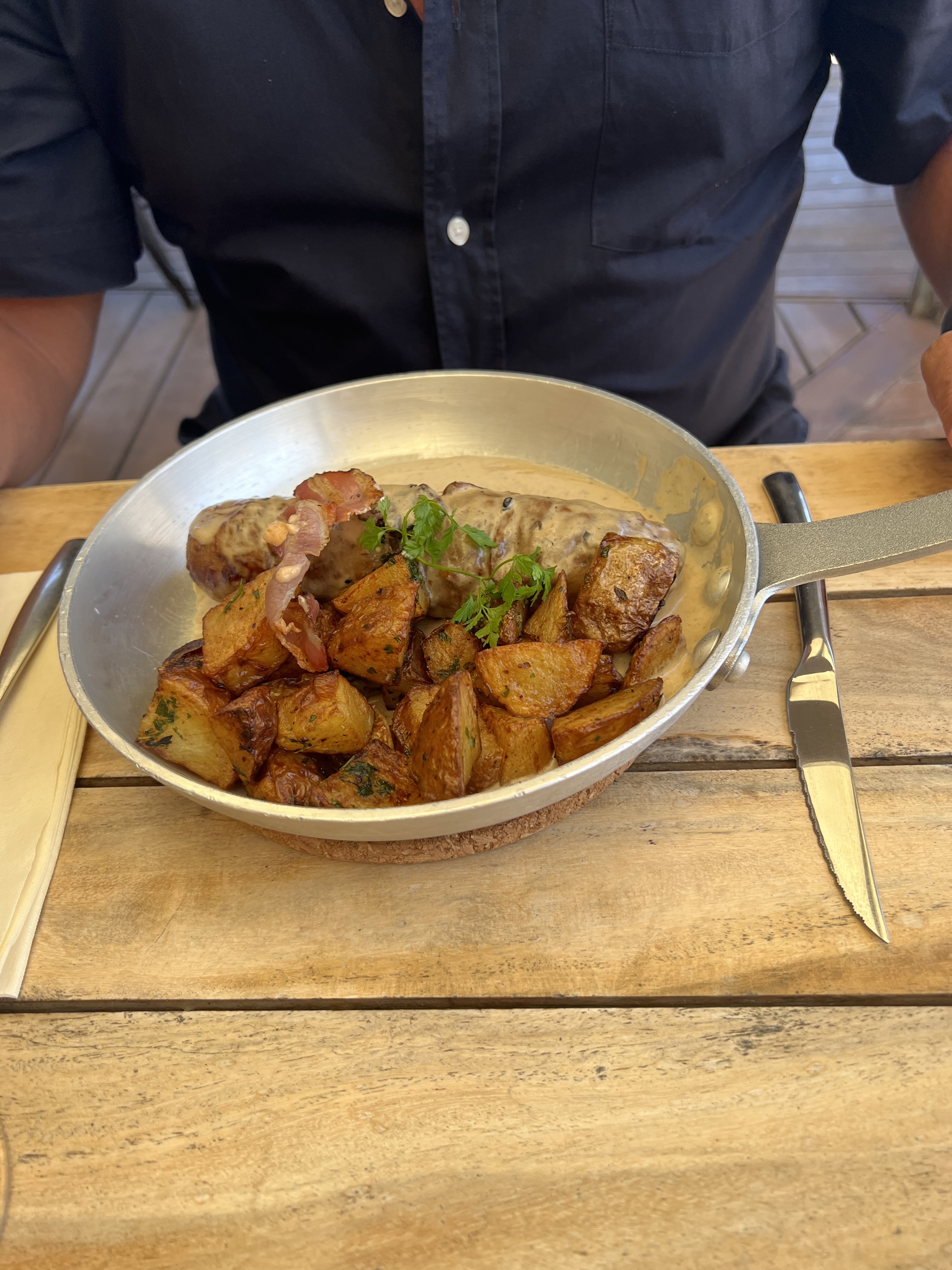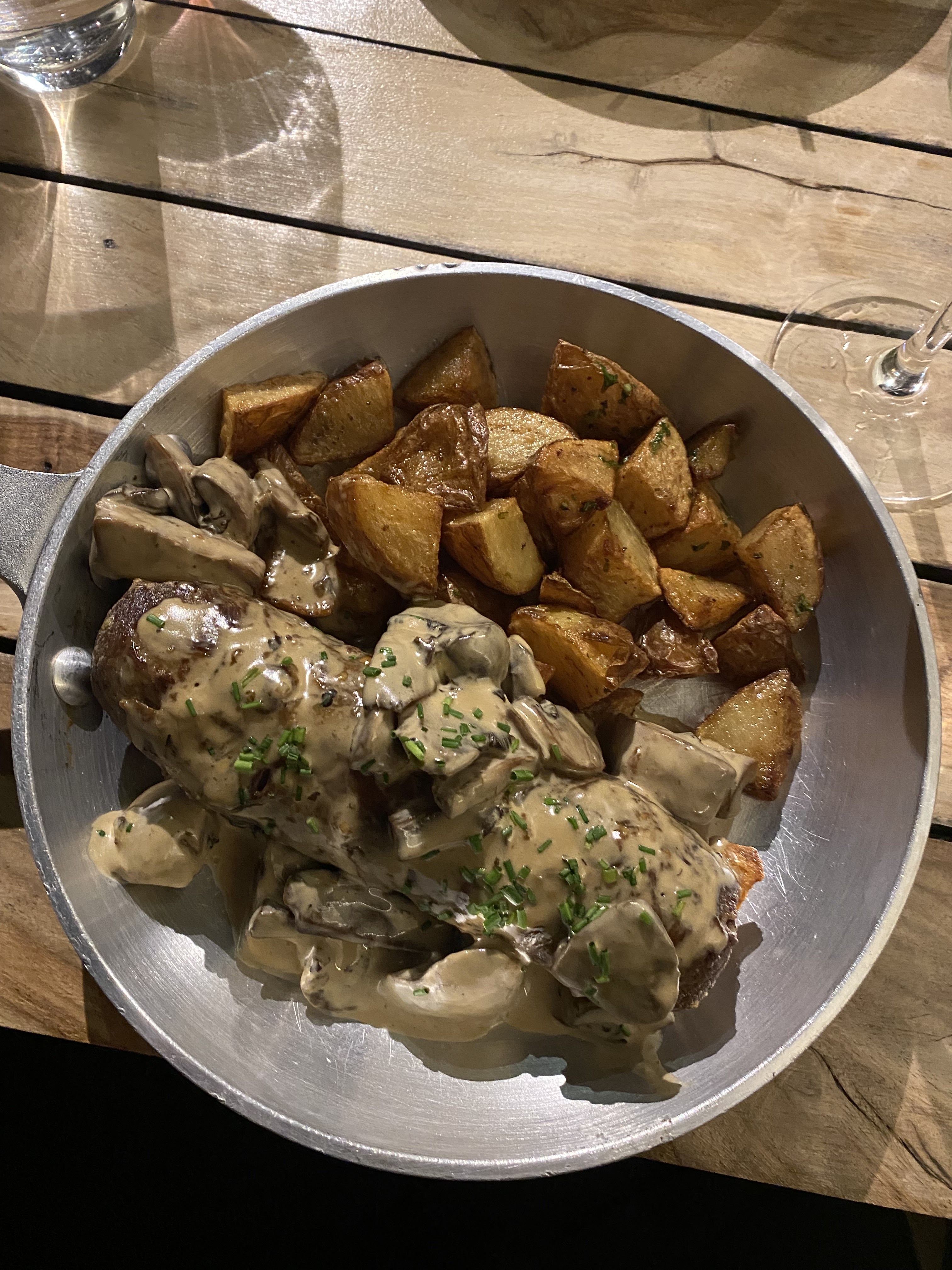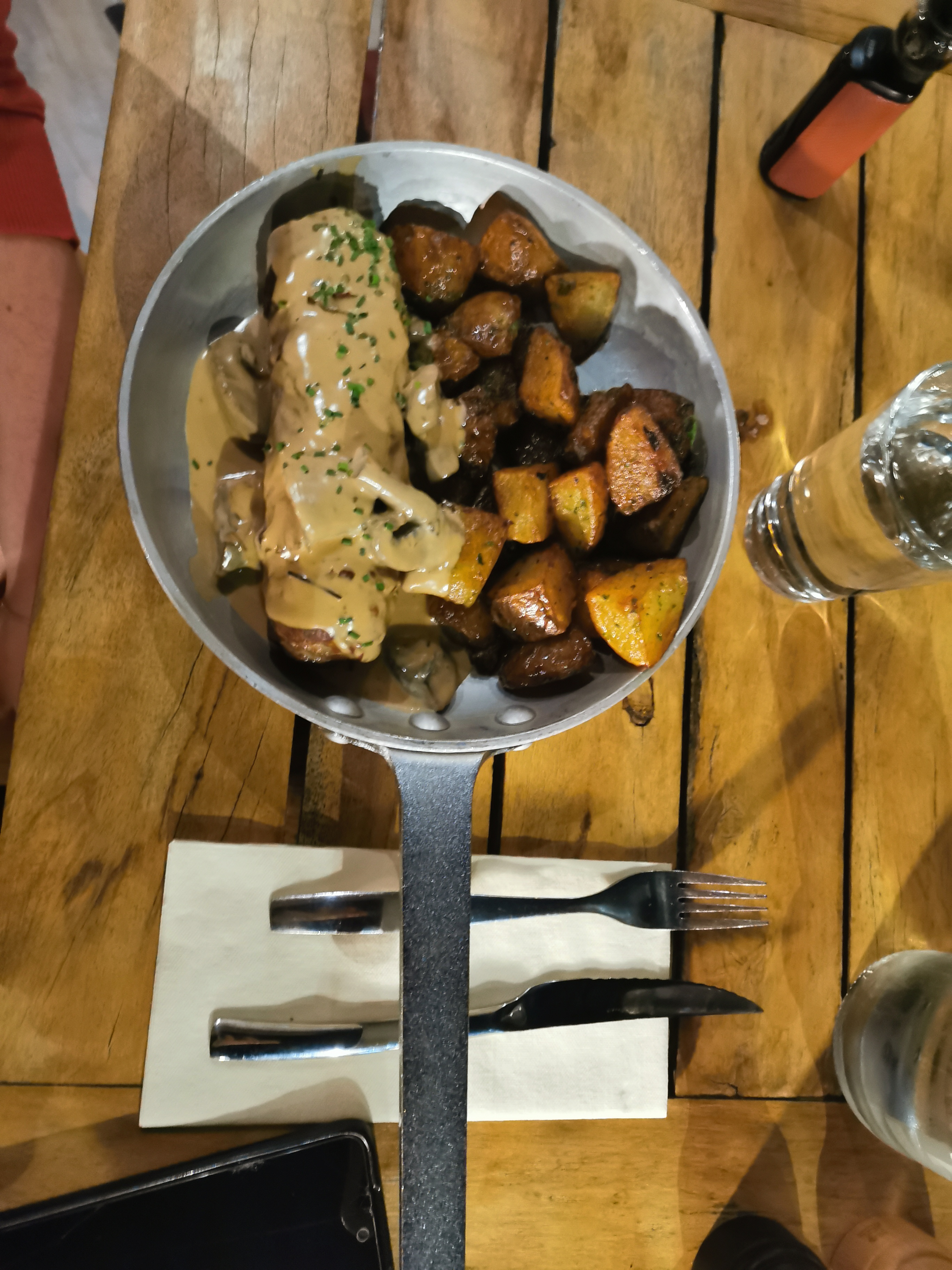 J'ai pris un sanglier à la Corse avec ses frittes de polenta servi dans une poêle, un pur délice!. La viande avait beaucoup de goût, la sauce avait du caractère. Je me suis régalée! Les serveurs sont très accueillants, ils ont chauffé avec gentillesse le petit pot de mon bébé. Le seul point négatif était l'attente du plat mais pour la qualité ça vaut le coup.