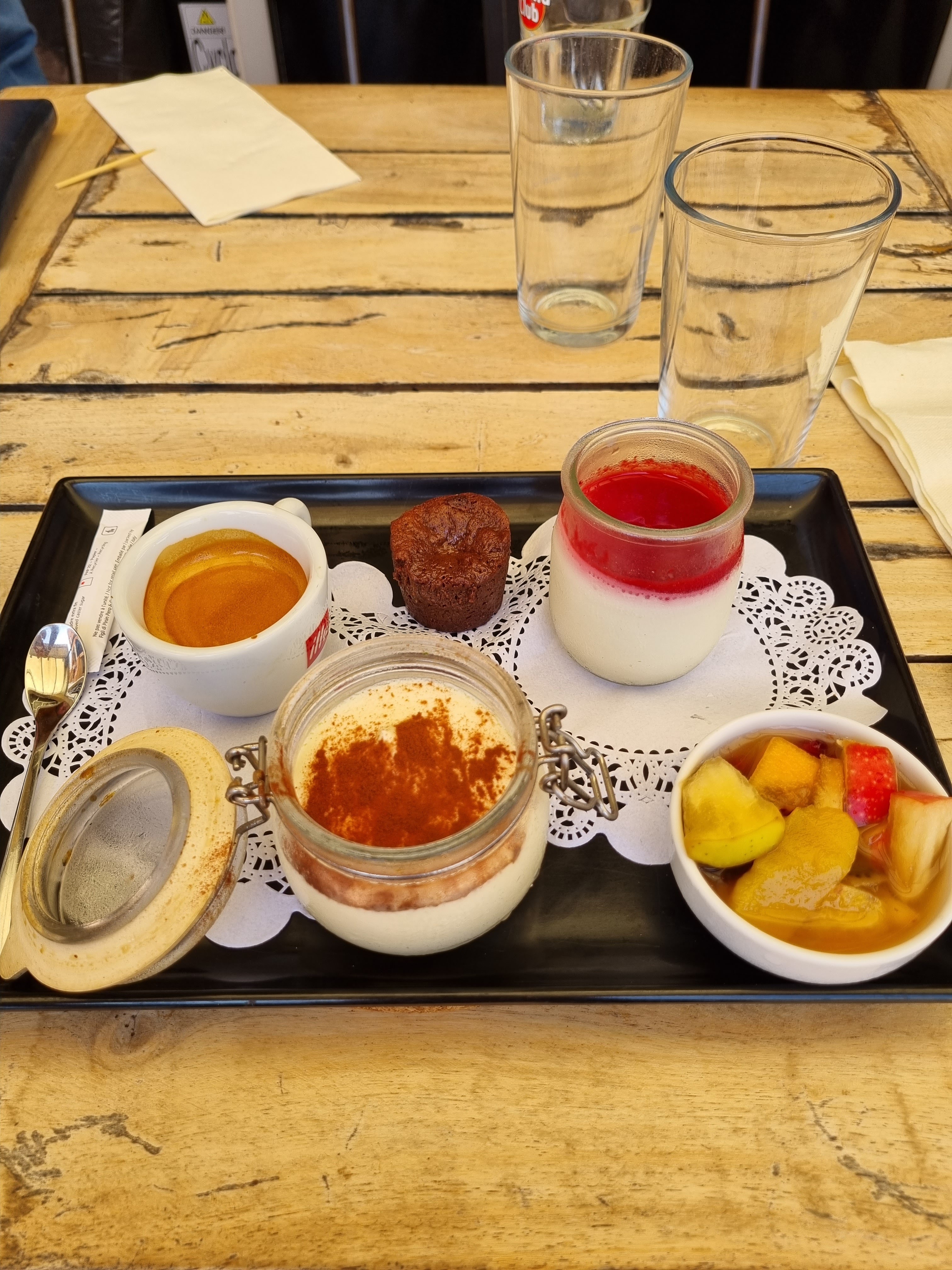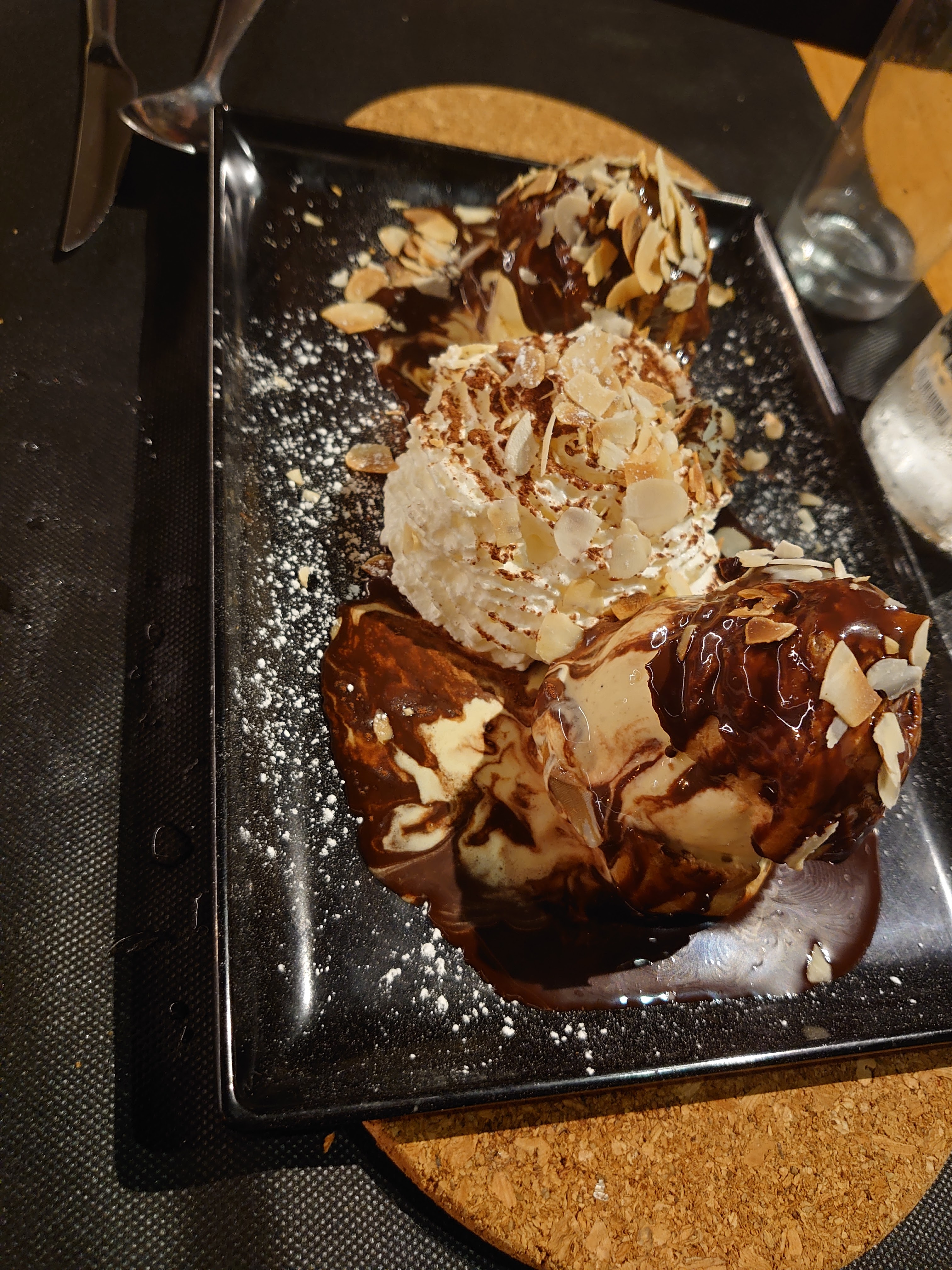 De l accueil à l’assiette tout était parfait ! Les serveurs sont très sympas et que dire des plats servis ! Entrée trio de la mer à partager, très frais et original. En plat nous avons pris agneau au four et broconcini de veau, les portions sont très généreuses et très bien cuisinées ... un régal! Enfin nous avons terminé le repas par un juste cuit au chocolat et profiteroles tout simplement à tomber par terre. Vraiment une superbe expérience dans ce restaurant que nous recommandons vivement !