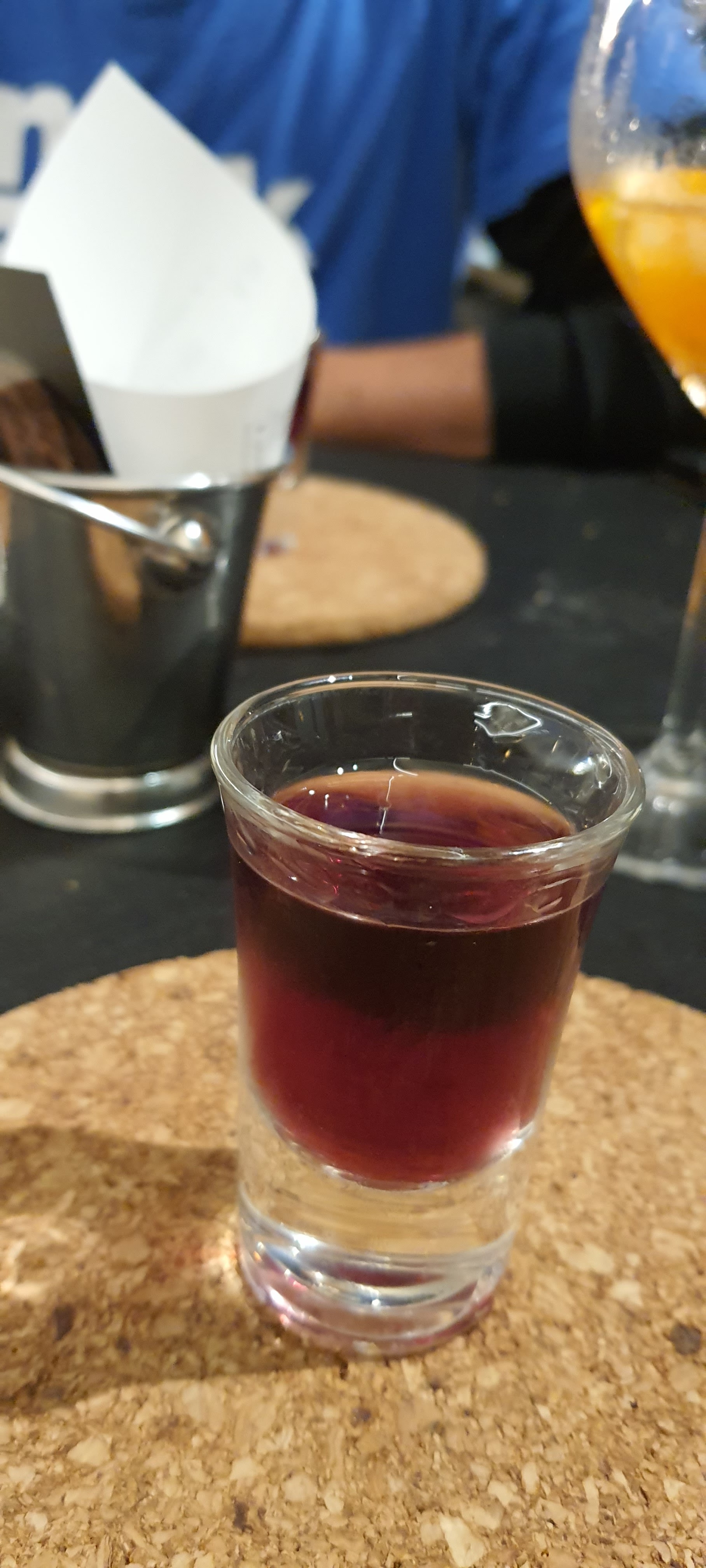 Une super équipe, des plats à tomber. Petit clin d’œil, j’ai deus jolis verres pour la petite myrte locale