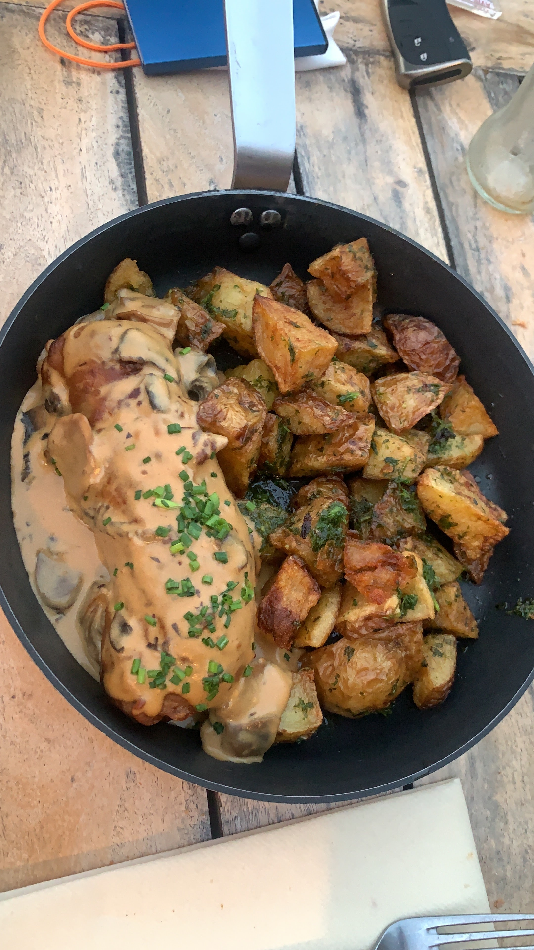 Parfait ! Nous avons appelé pour réserver. Les réservations étaient possibles pour 19h/19h30, passé 20h c'est sans réservation. Nous sommes arrivés pour 19h30, peu importe l'emplacement sur la terrasse, on parvient à avoir une vue sur le port. A peine arrivés le serveur très sympathique, et joyeux a pris notre commande et nous a servis très rapidement. Les plats étaient très savoureux, et c'est agréable d'avoir de belles assiettes pleines, ou plutôt des poêles. Un peu plus compliqué d'avoir le serveur à la fin du repas car la terrasse se remplissait rapidement. Je recommande vivement ce restaurant !