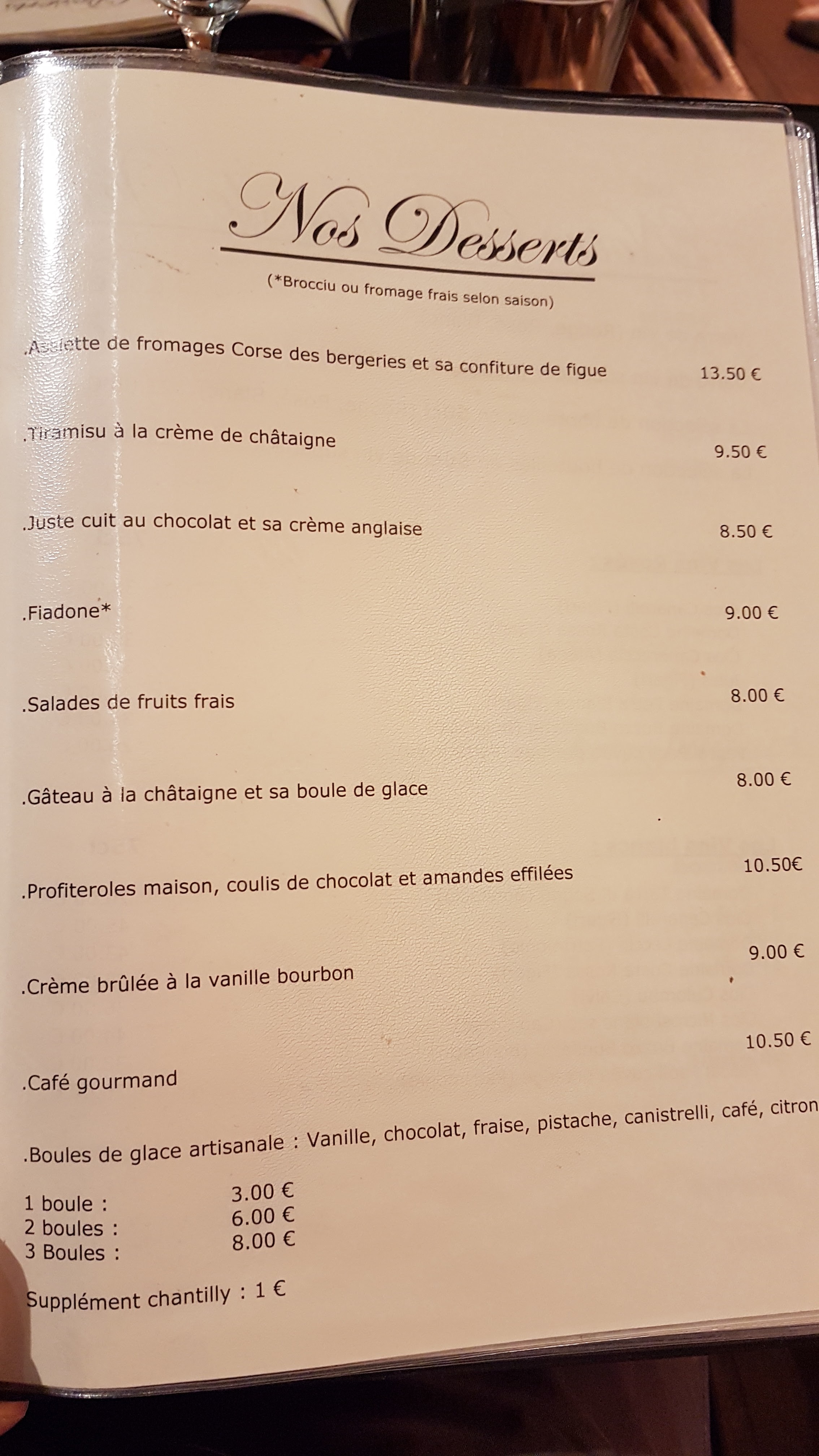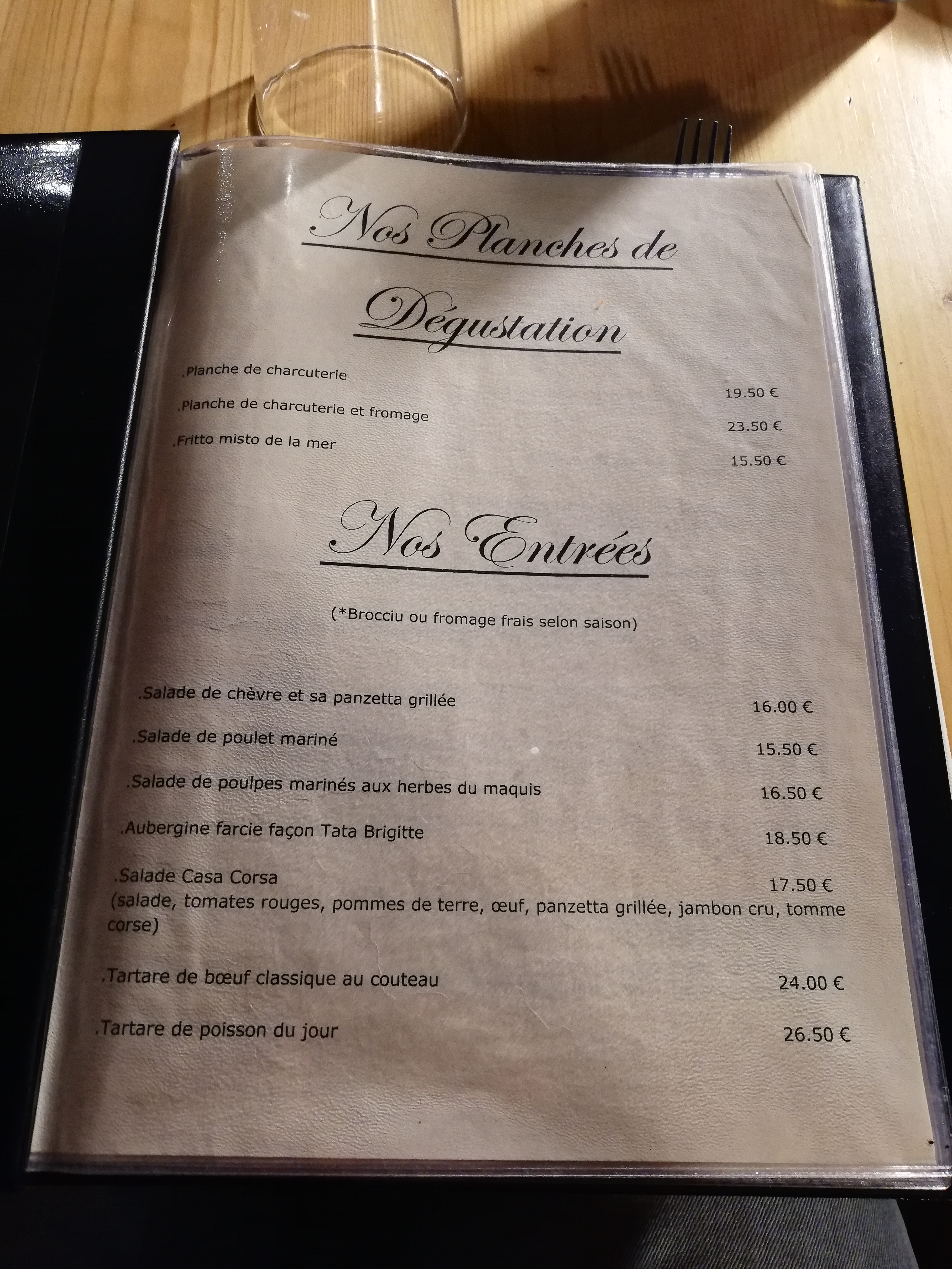 Nous nous sommes régalés dans ce restaurant en goûtant des spécialités corse. Une équipe accueillante et avec une touche d'humour. Digestif offert. Je recommande fortement cette adresse