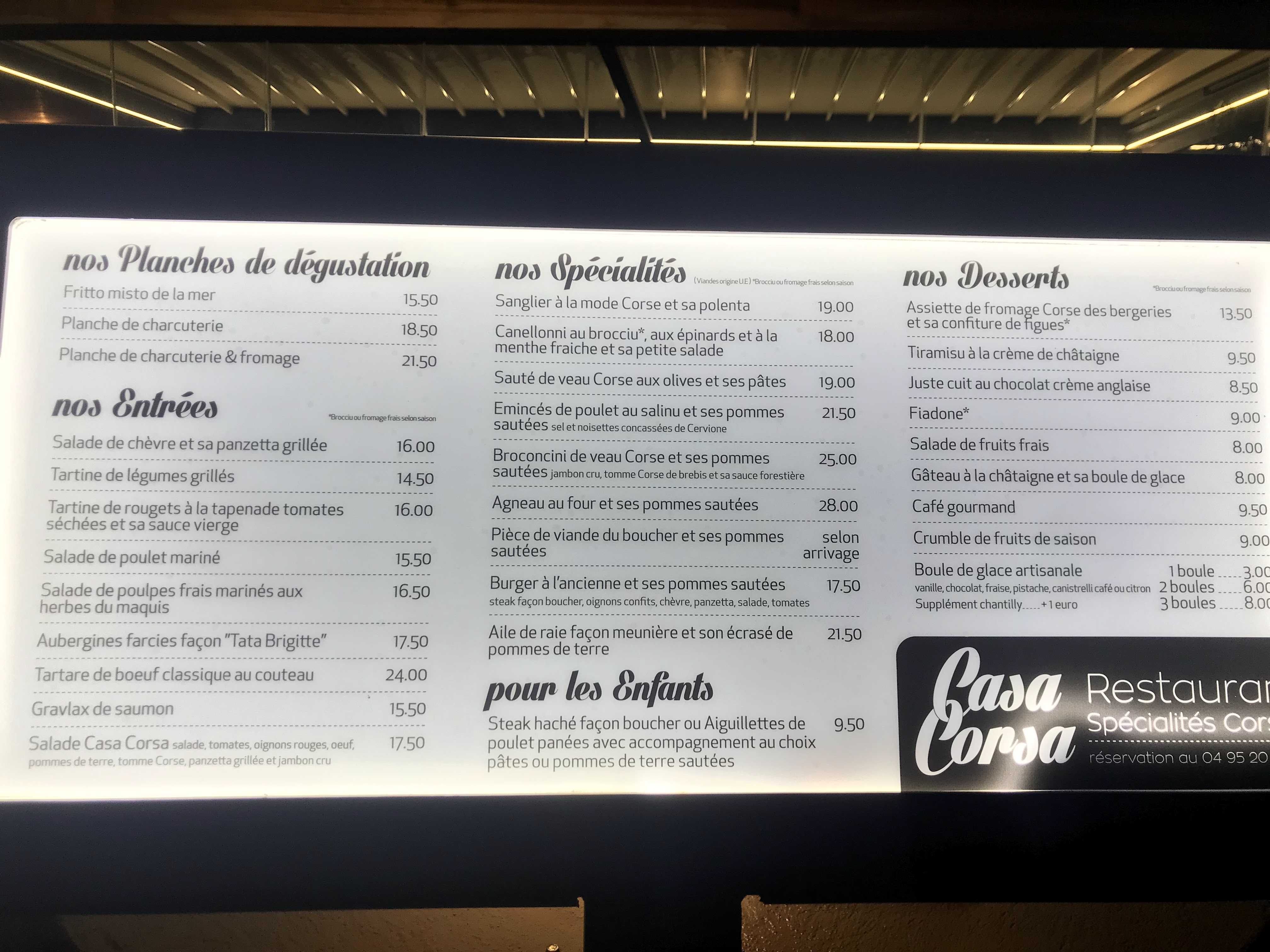 En recherche d'un resto pour dîner nous sommes tombé sur Casa Corsa un resto au top entre le service exceptionnel (sourire, efficacité et rapidité) et les plats une vrai tuerie, les plats sont d'une qualité et fraîcheur et les goûts. Un vrai coup de cœur une adresse sûr pour manger la vrai gastronomie Corse mais aussi pour passer un excellent moment.