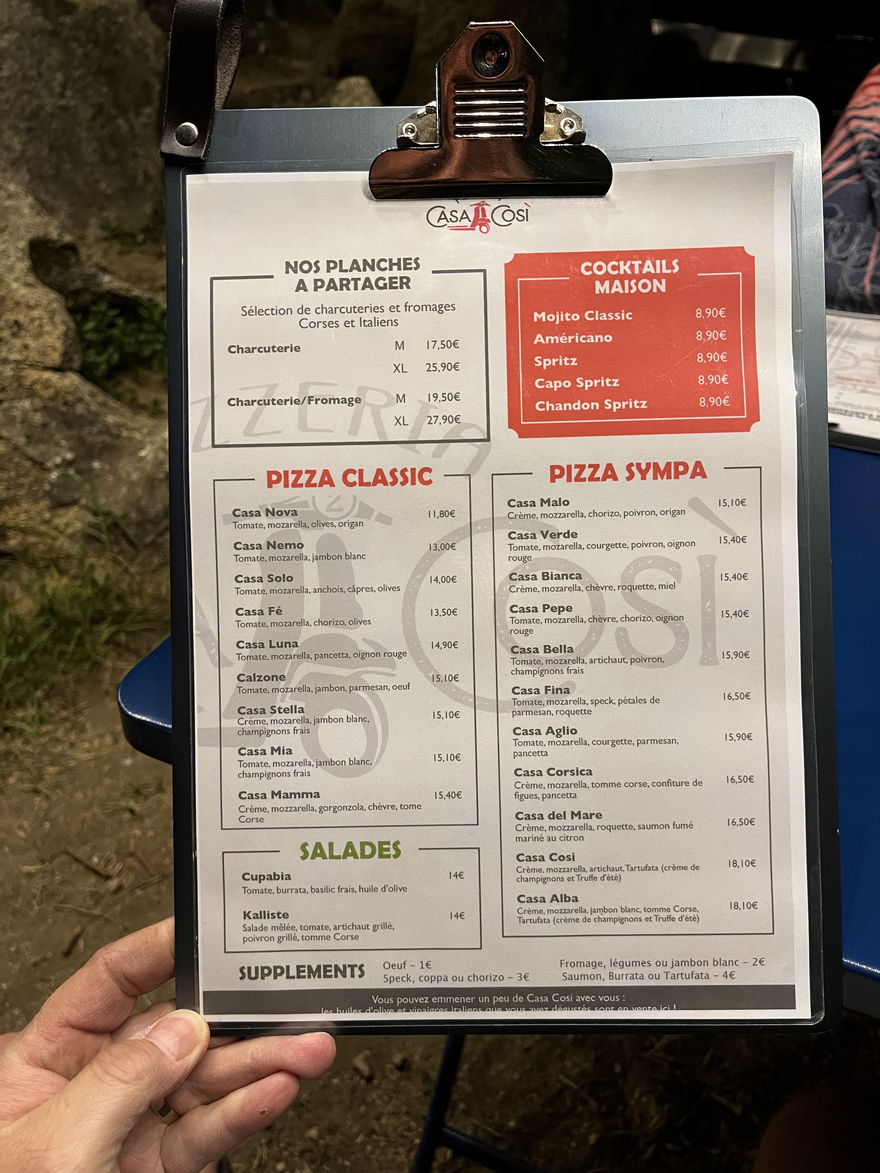 Hyper bien accueillis, nous avons passé un excellent moment : le vin était délicieux et je pense sans conteste avoir mangé la meilleure pizza de ma vie (la Casa Corsica). Encore merci 🙏