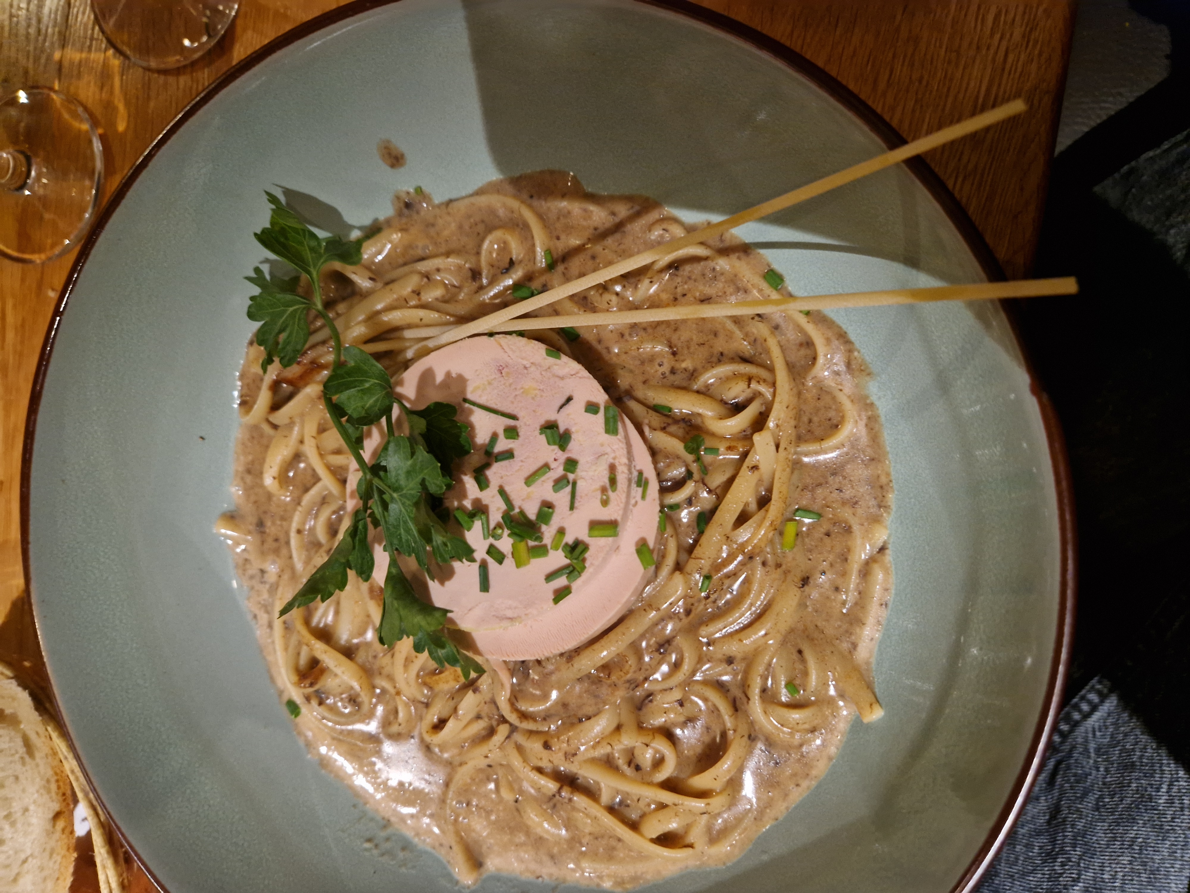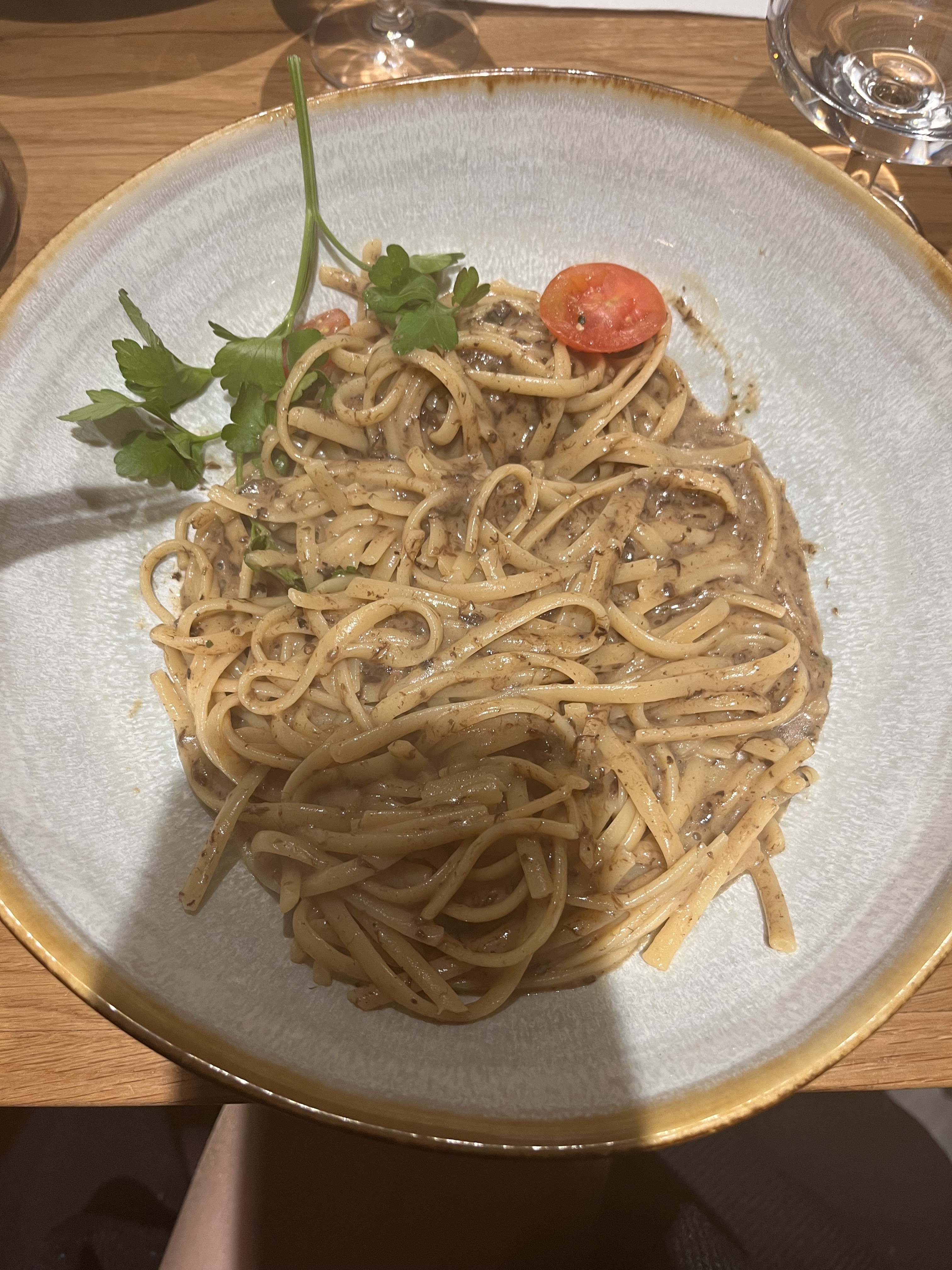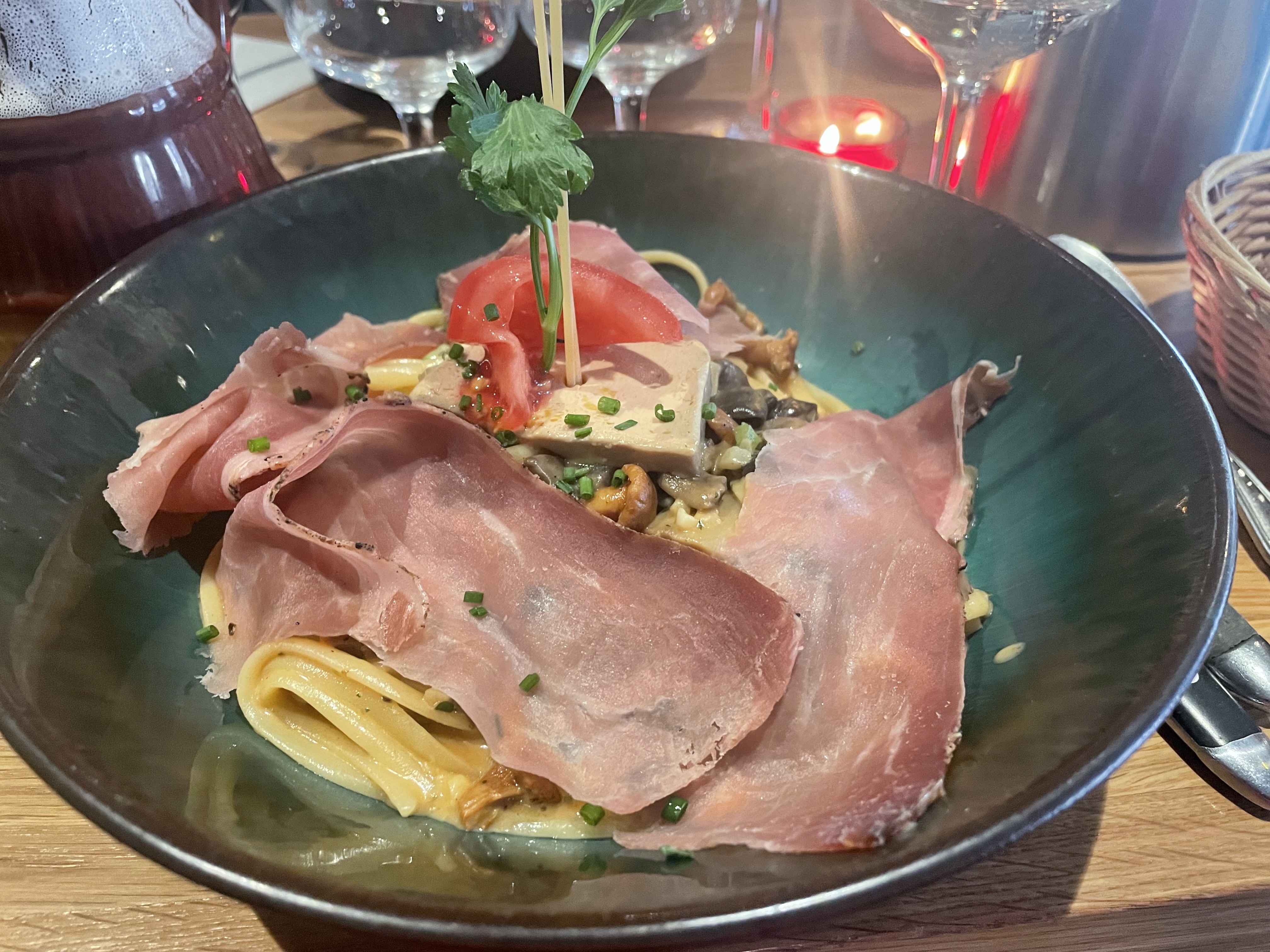 Lieu chaleureux et accueillant, les tables un peu trop serrées mais sinon la déco est sympa. Je choisis un plats de pâtes à la truffe et au foie gras, très prometteur mais je suis un peu déçu, pas mauvais mais rien d’extraordinaire non plus ! En revanche le risotto aux girolles était plutôt bon ! En dessert le café gourmand, la pana cota très bonne et le tiramisu maison également mais on ne me précise pas le parfum de la boule de glace et je me retrouve avec de la mangue... bon chacun ses goûts mais je repars un peu déçu... les prix sont quand même élevés (15€ pour un plat de pâtes) mais les produits on l’air de qualité ! Mitigé mais j’y retournerai pour goûter autre chose !