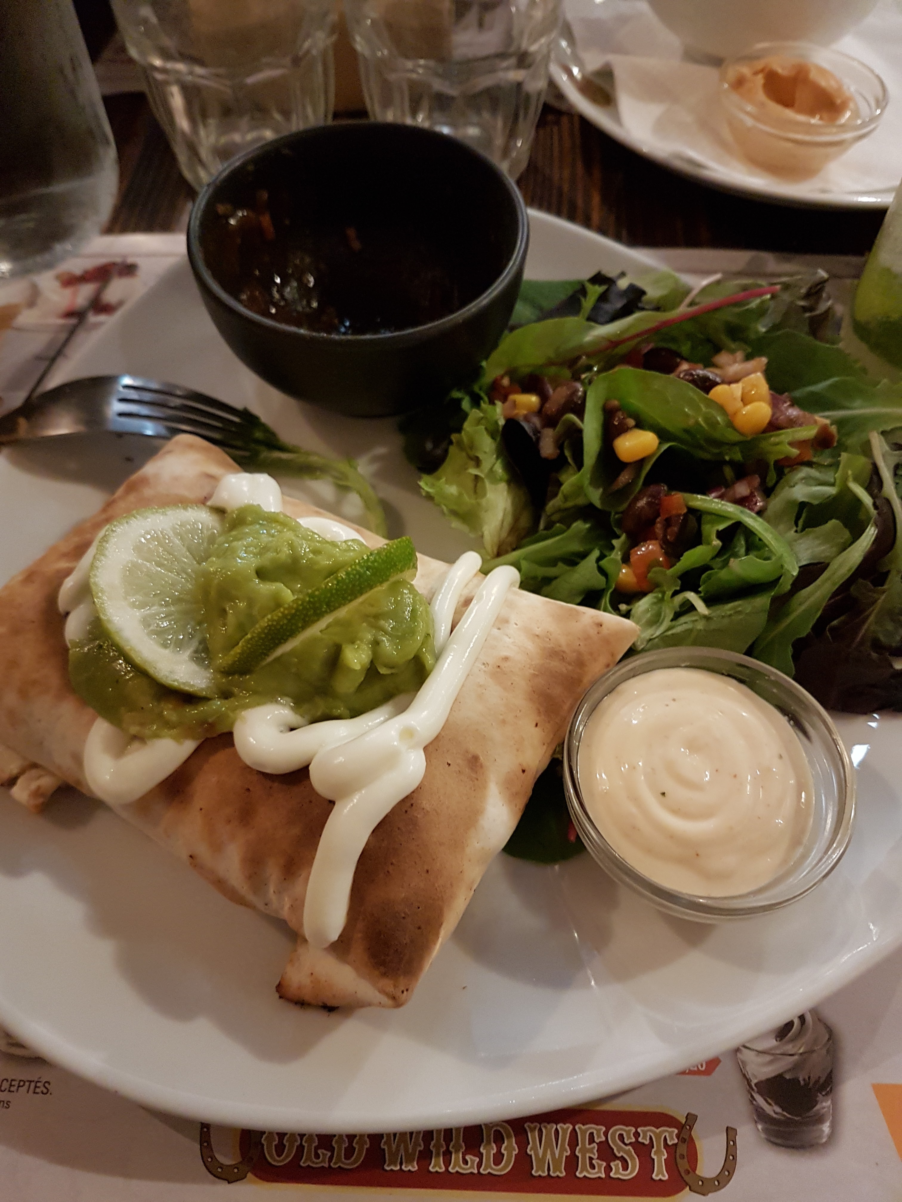 Le burrito était bon mais la tarification Disney est juste risible : 12€ le burrito sans rien d'autre, pas de menu, rien. J'ai encore énormément de mal à m'asseoir mais ce n'est pas lié à la nourriture épicée...