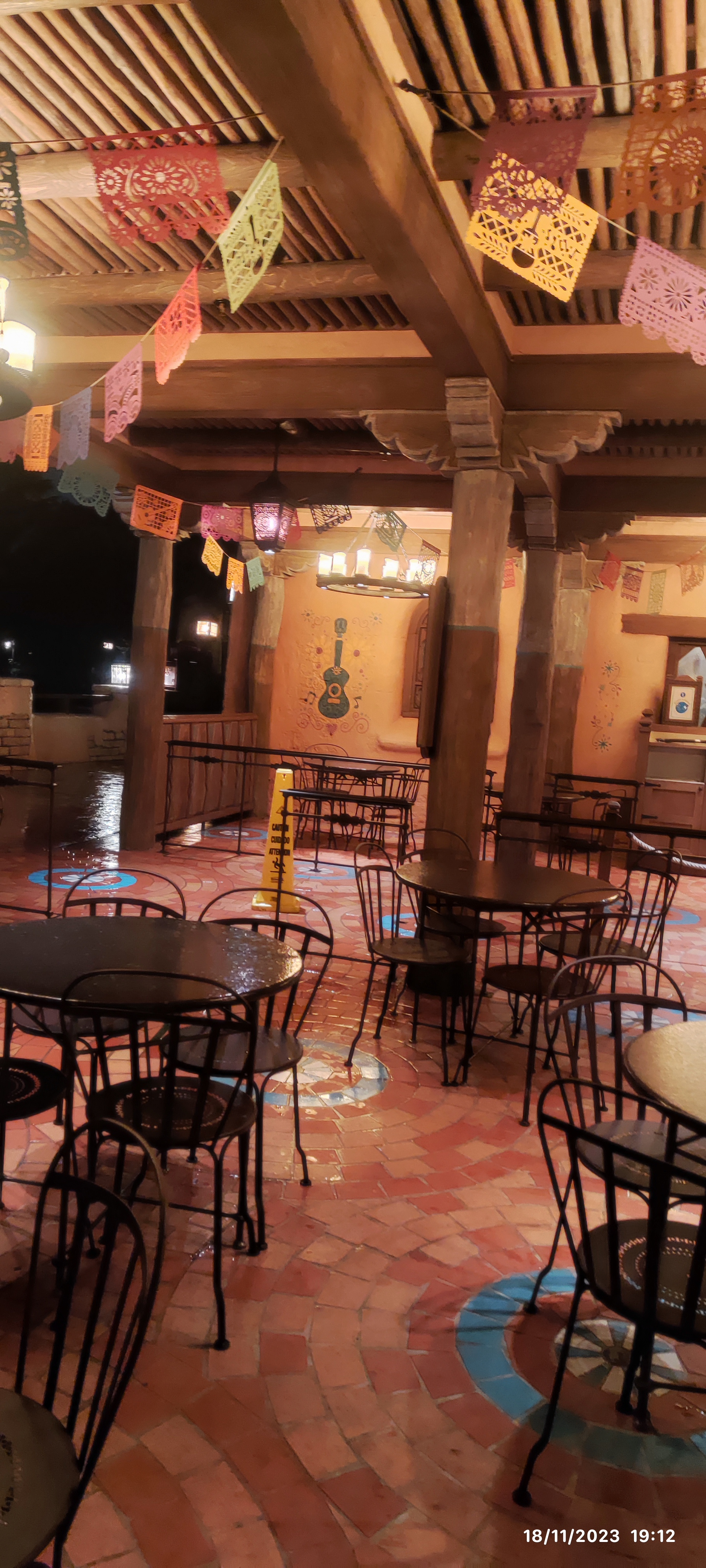 Restaurant fast-food style mexicain. Le midi assez bondé, le soir souvent calme. Comprend 2 salles de part et d'autre du comptoir de commande. On y trouve fajitas, enchiladas, ainsi que quelques plats végétarien et de la bière à la pression. Un décor avec énormément de petits objets décoratifs sur les murs. Personnellement ce n'est pas le restaurant que je préfère chez Disney, mais on y mange bien.