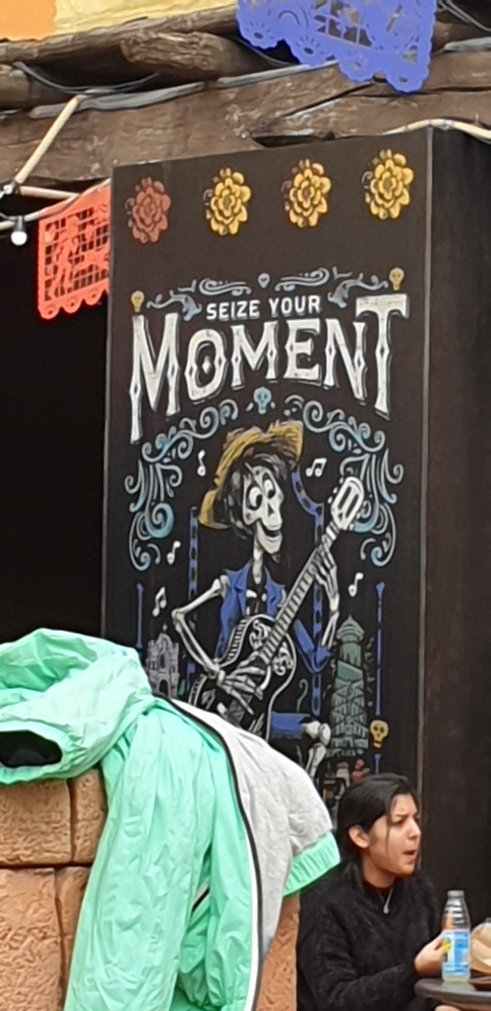 Jolie thématisation sur le thème du film d'animation Coco, surtout de nuit ! Sinon côté locaux, entrée en face des caisses assez mal pensée : en cas de forte affluence, il devient rapidement difficile de circuler. Côté cuisine, j'ai pris le menu 3 : burrito au boeuf accompagné de riz mexicain assez bon, mais dont le prix reste excessif (14€99 le 20/10/18) par rapport à la qualité. Mais quitte à manger quelque part à Disney, ce restaurant est un peu plus original que les autres (burgers +++)