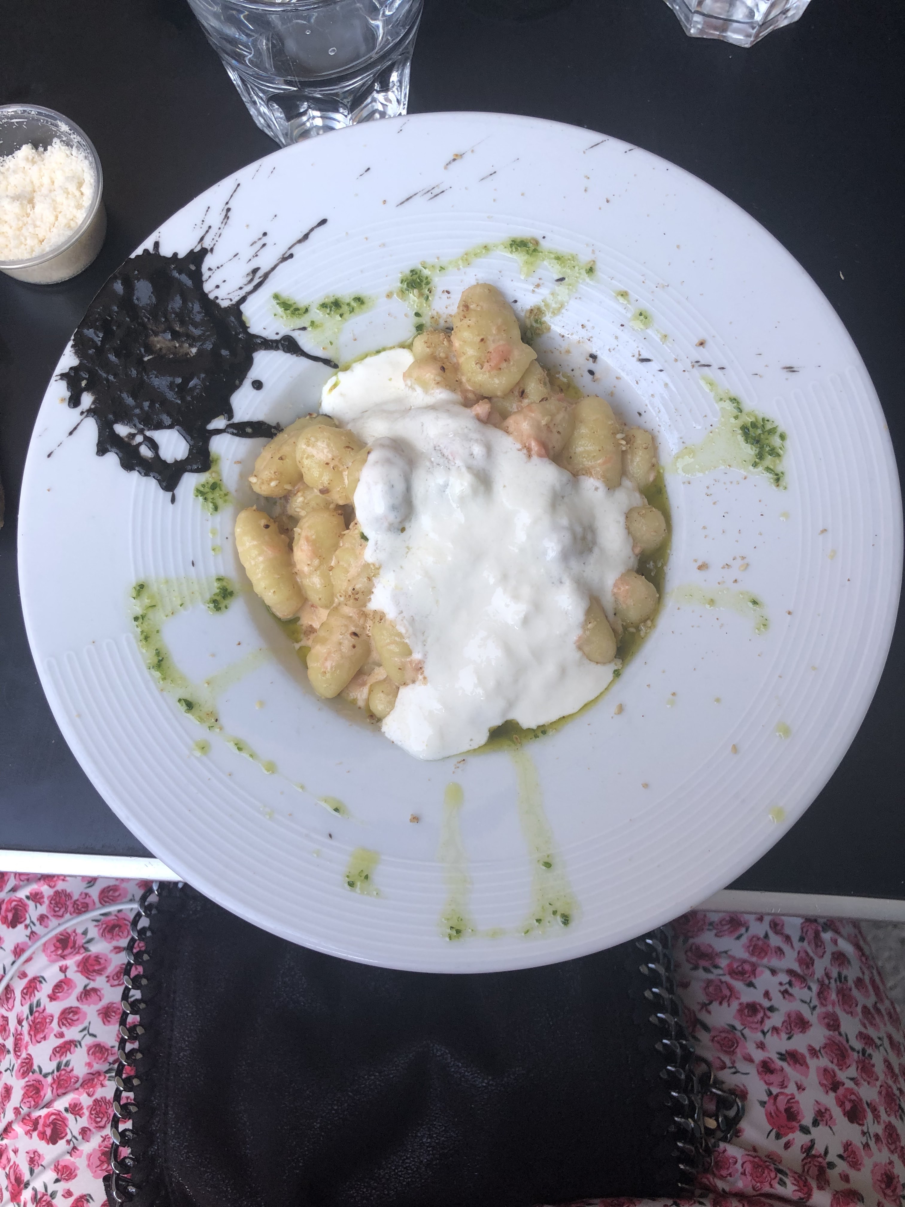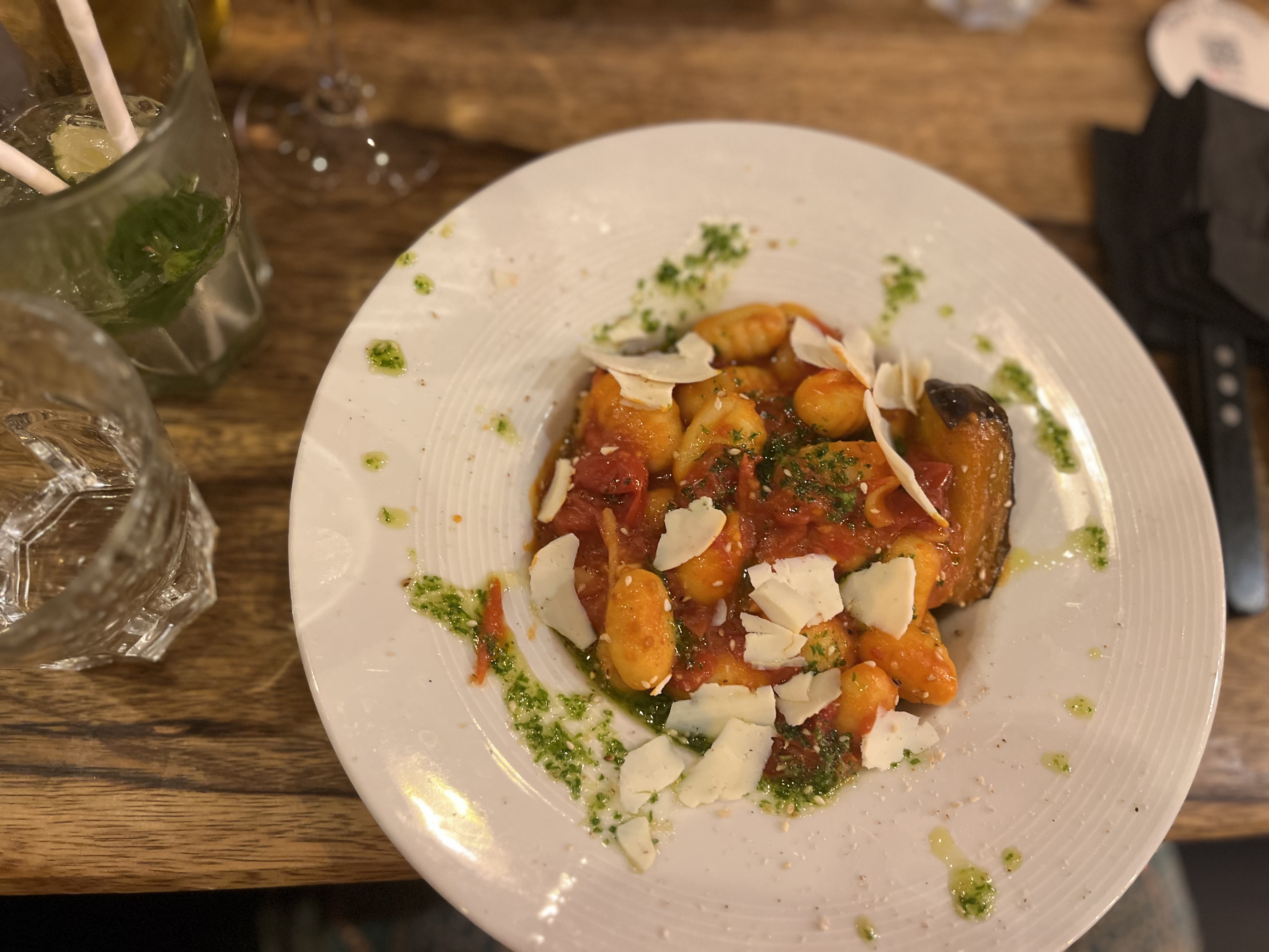 Première fois dans ce restaurant, les gnocchi était très bien assaisonner, j'ai peu aimer le fromage froid qui était au dessus mais c'est selon les goûts. Le personnel sympa. L'ambiance du restaurant était très cosy. Enfin le dessert était très consistant avec Nutella banane (je ne me rappelle plus du nom 😅) mais il était assez bon. C'était cool de découvrir des spécialités italiennes.