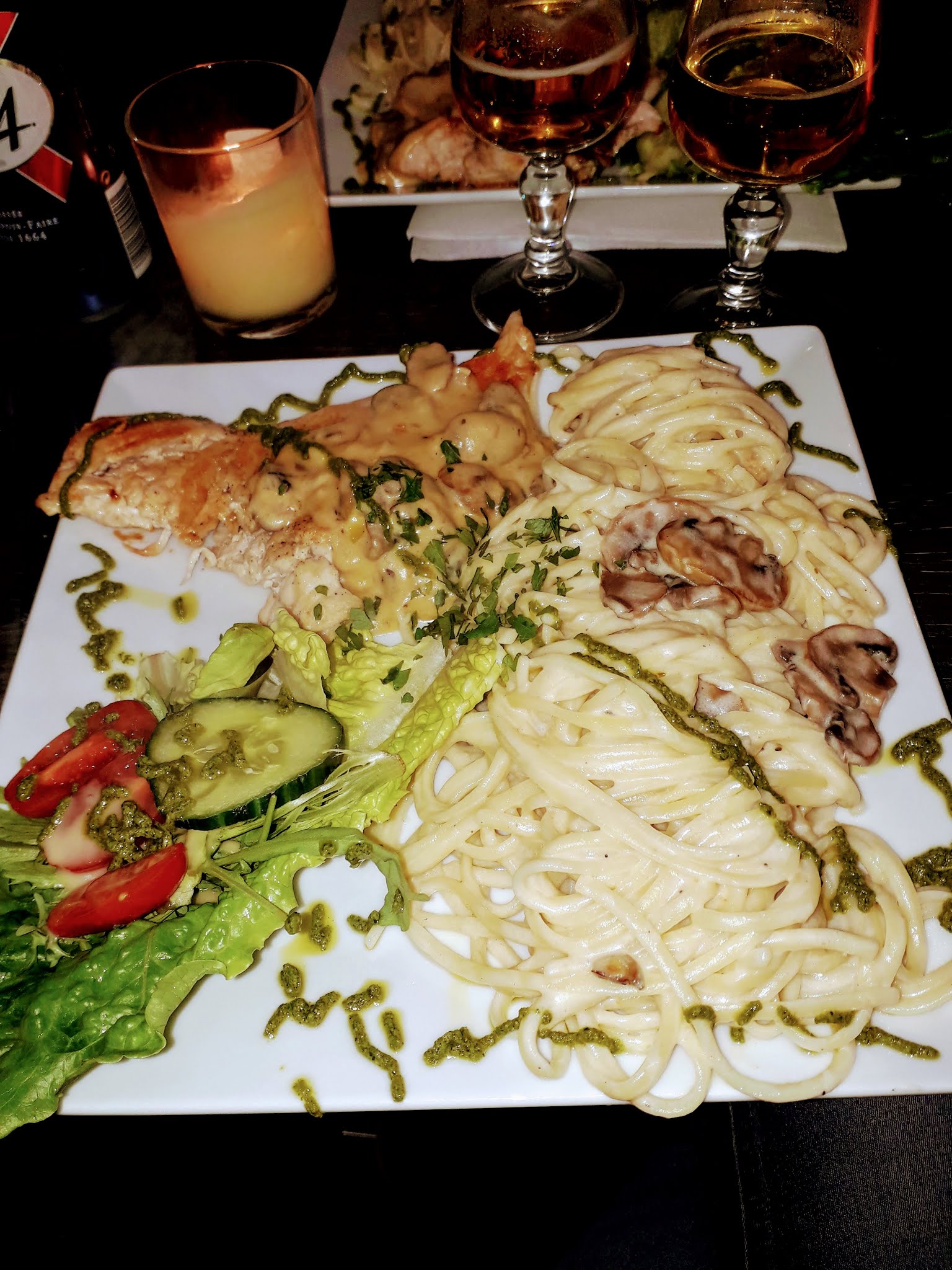 Great pre-match spaghetti aux champignons et escalope!!